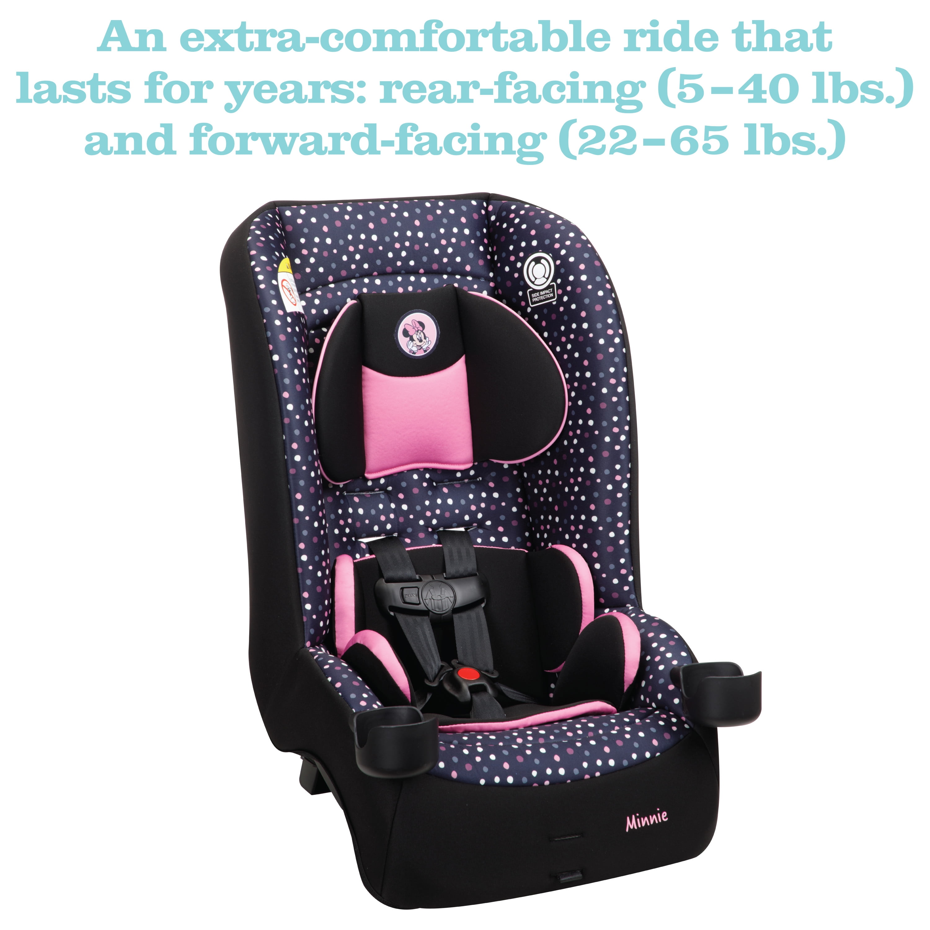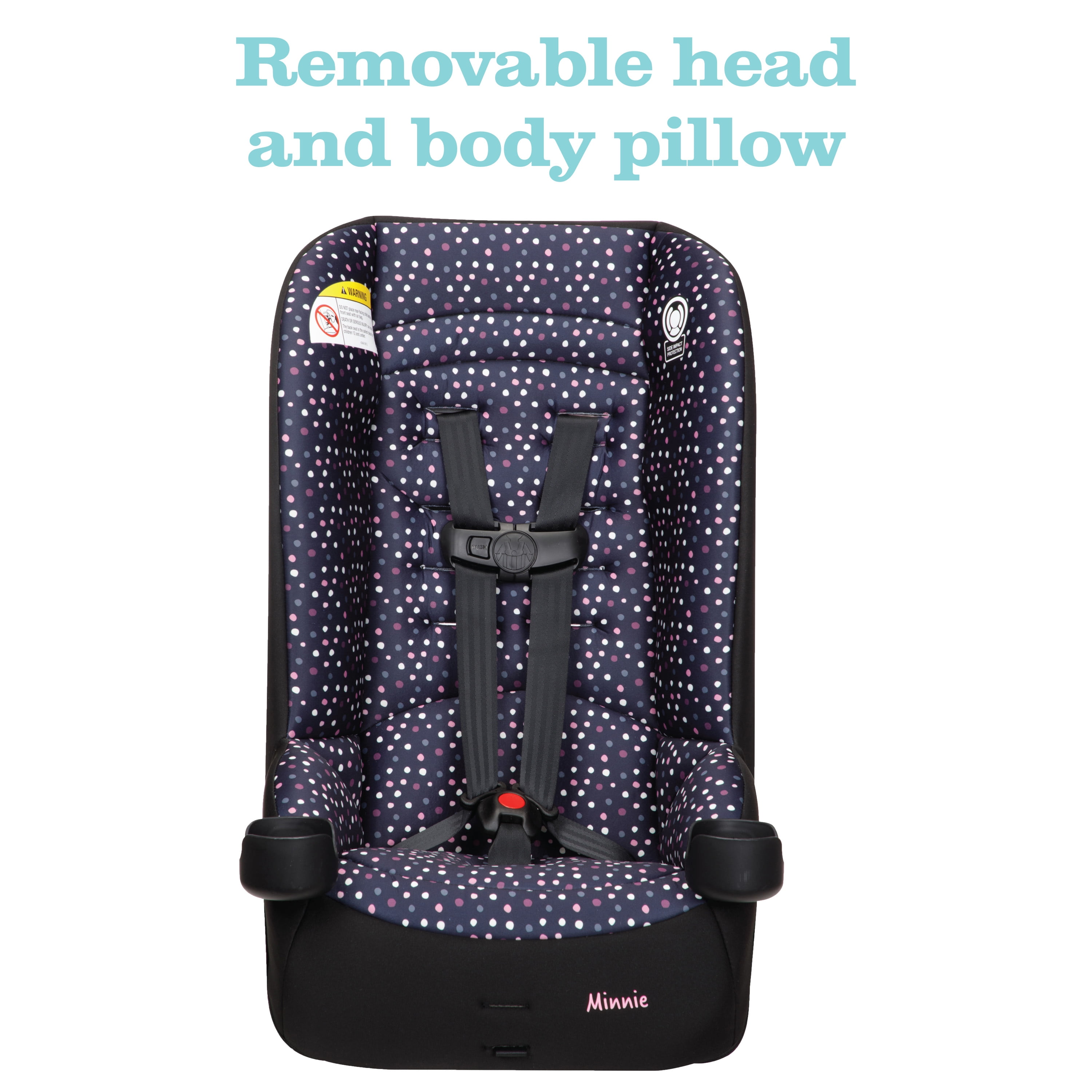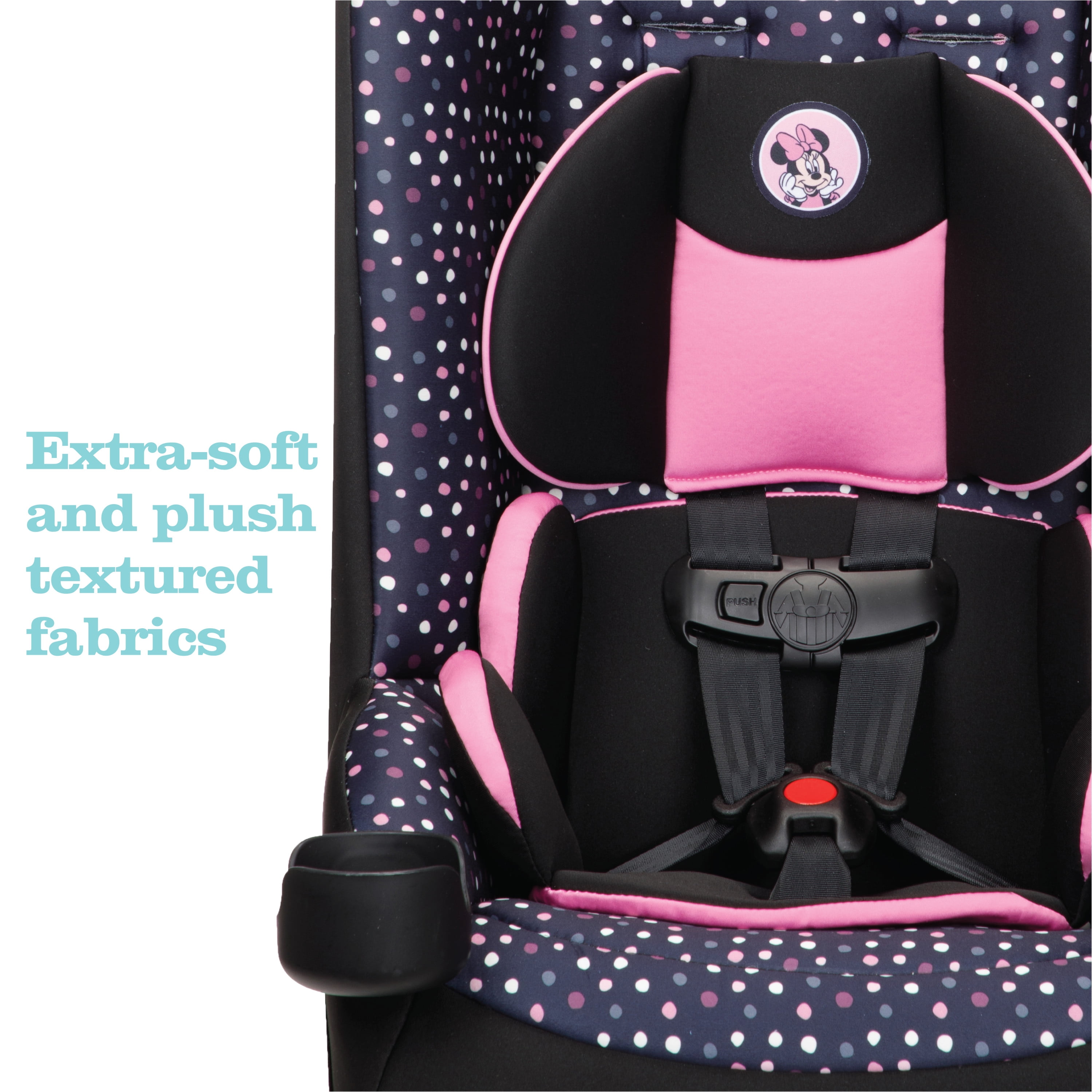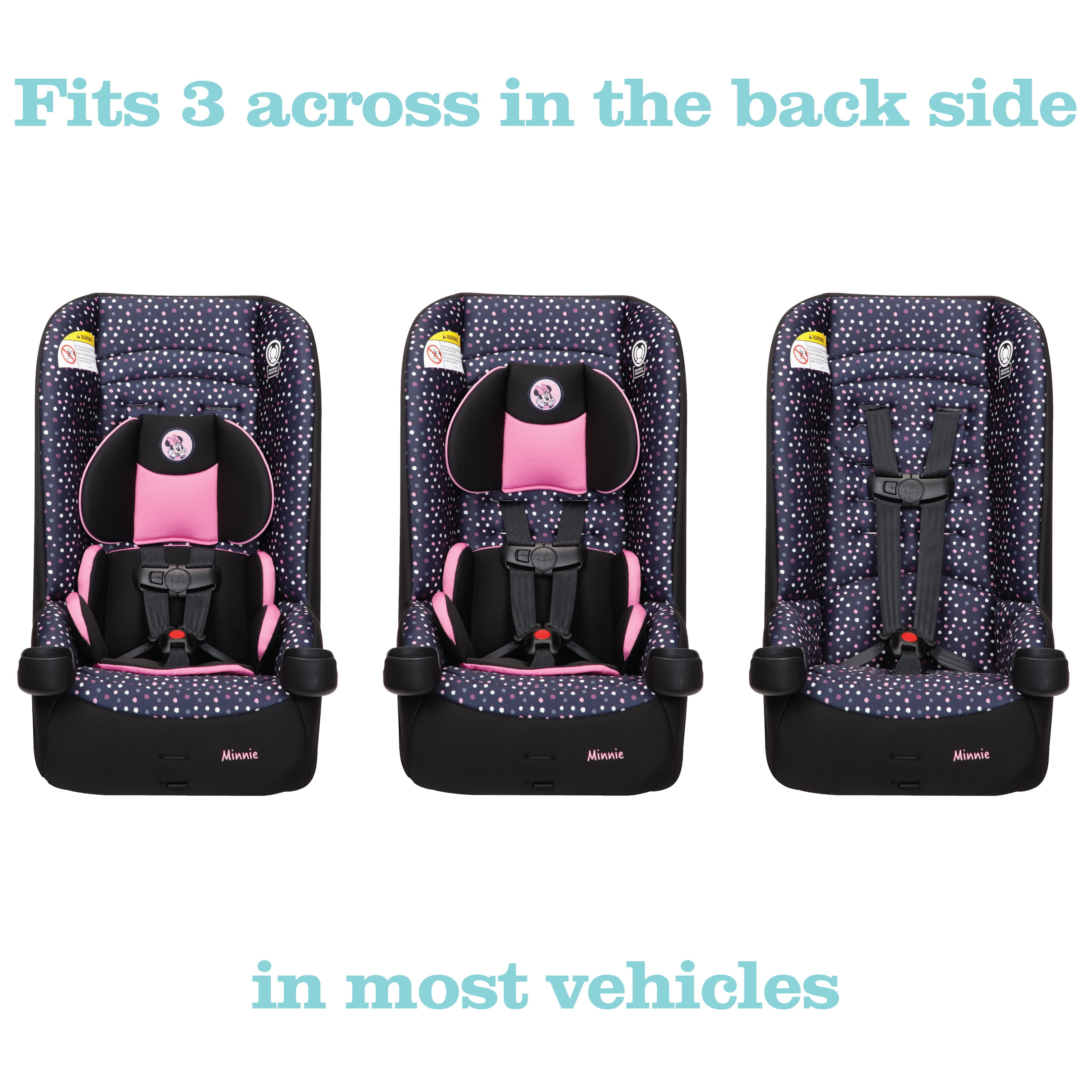 Perfect for Disney fans––baby to big kid 2-in-1 car seat fits children rear-facing (5-40 lbs., 19”–40”) and forward-facing (30–65 lbs., 34.4”–49”) Fits 3 across in the back seat of most vehicles 5-point harness with easy up-front adjustment Removable infant head pillow and body pillow Extra soft and plush textured fabrics Machine washable and dryer safe fabrics Machine washable and dryer safe fabrics 2 removable, dishwasher-safe cup holders LATCH equipped Certified for use on an aircraft Exceeds federal safety standards