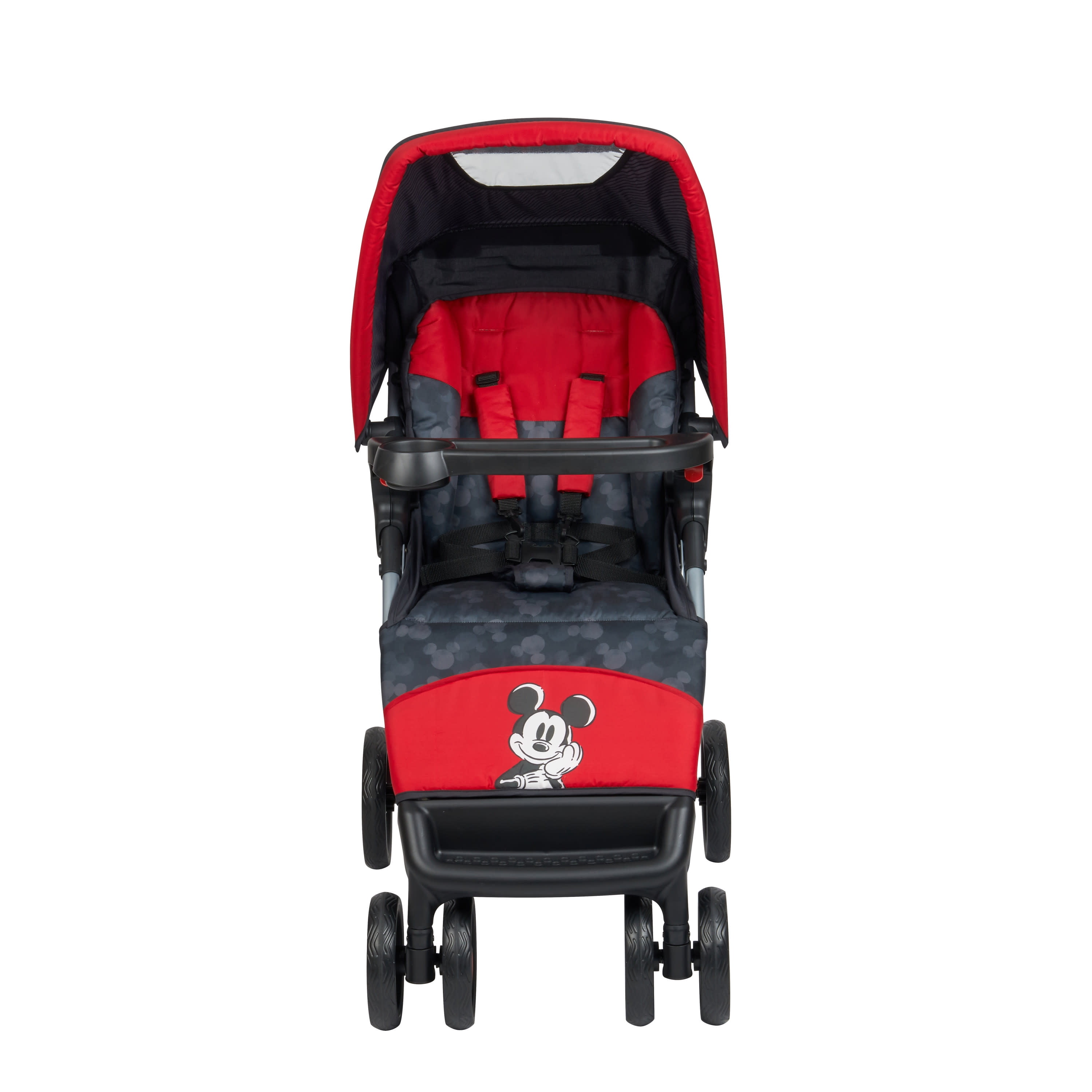 Bring the fun of Disney along for the ride with the Disney BabySimple Fold™ LX Travel System. The stroller lifts to fold with just 1 hand and a quick pull upward in less than a second. It’s lightweight and stands when folded, making it simple to store or pop into the car. The large wheels provide better maneuverability and the flip-flop friendly brakes make it simple when you need to lock the stroller. And the harness covers provide additional comfort for your little one on every stroll. The handy parent tray is close at hand with two cup holders and a storage tray that lets you keep your phone and other small items easily within reach. The larger basket underneath is great for the bigger items you want to bring along for the ride. Featuring QuickClick®, the included infant seat attaches to the stroller in 1 quick step for a complete travel system. Rear-facing from 4–30 lbs., the car seat features 4 harness heights for both a secure ride and a better fit as baby grows. The adorable infant insert has ears for fun and provides a bit of extra padding for baby’s comfort. And to make things easier for you as baby gets bigger, this is extra-light car seat is simple to move from the car to wherever you need to go. Disney Baby offers today’s parents like you everything you need to bond with baby at every stage. The Disney Baby line includes essentials for Apparel, Nursery, On the Go, Bathtime, Feeding, Discovery and Celebration. We work with the best brands in the infant industry to bring you products to make your time with baby magical.