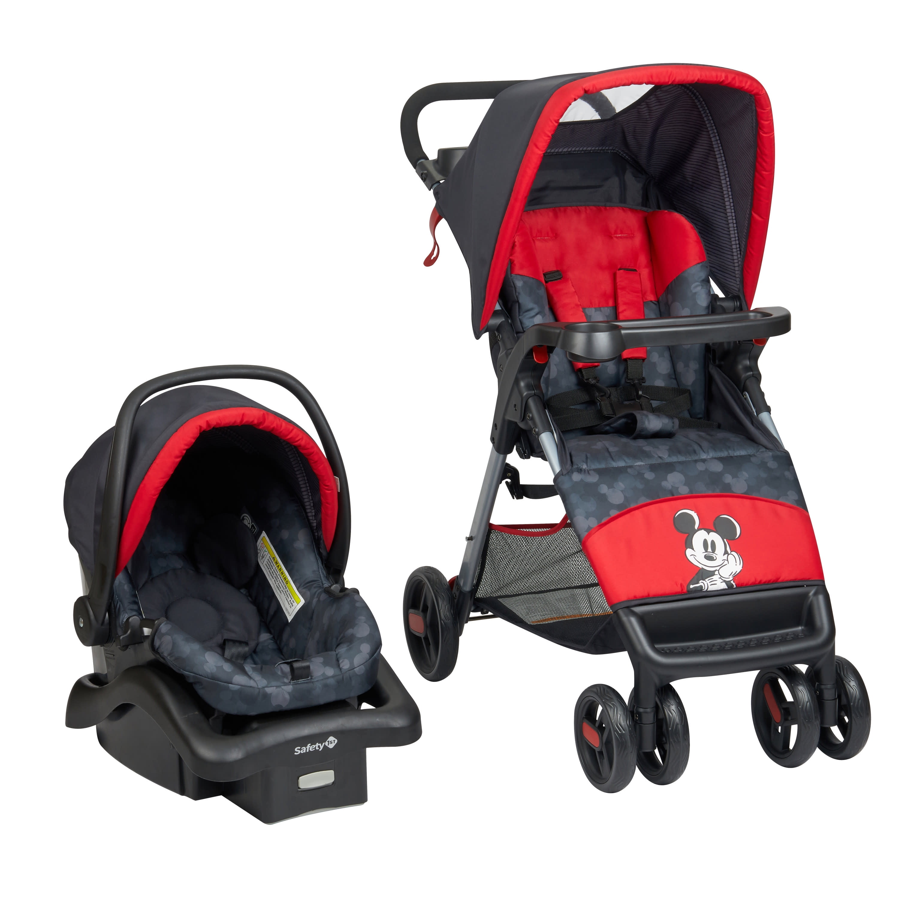 Stroller has 1-hand Lift-to-Fold™, & stands when folded Stroller has multi-panel sun canopy with peekaboo window Stroller has large wheels for easy maneuverability and flip-flop-friendly brakes Car seat is rear-facing from 4–30 lbs. and 32″ or less Parent tray with 2 cup holders and storage area Child snack tray with cup holder Stroller seat has multi-position recline Car seat is extra lightweight for easy transport Stroller has large, easy-access storage basket Stroller and car seat have 5-point harness Stroller holds child up to 50 lbs. QuickClick® ensures car seat attaches securely to stroller with 1 simple click Car seat has machine-washable seat pad Car seat has infant insert for proper fit of babies as small as 4 lbs. Car seat has a retractable canopy Adjustable, stay-in-car base for car seat LATCH equipped with convenient LATCH storage Car seat is airplane ready Car seat exceeds Federal and ASTM Safety Standards Stroller meets Disney size requirements