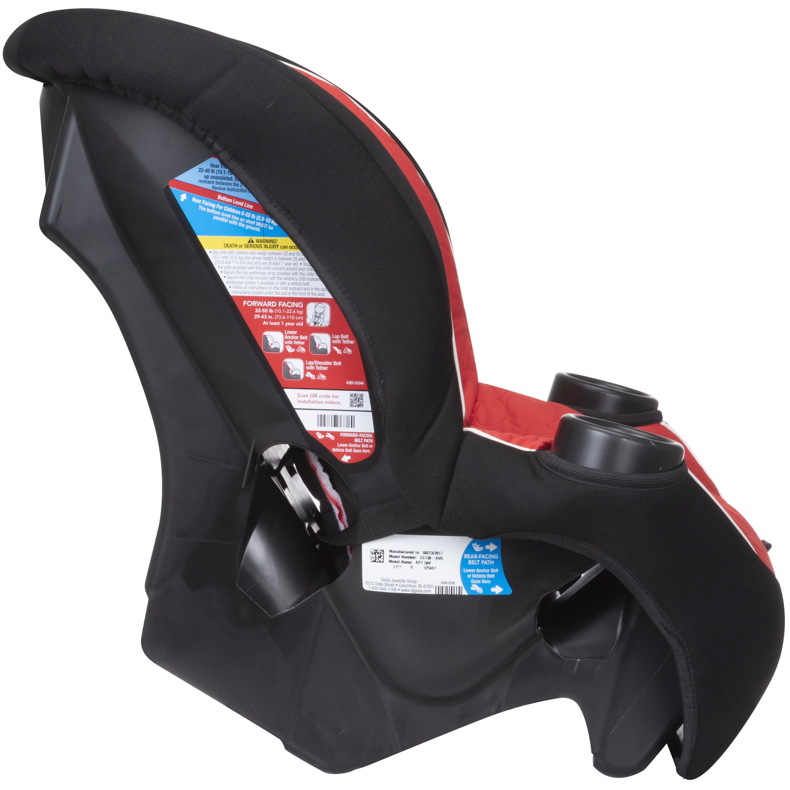 With two modes of use, this LATCH-equipped Cosco car seat Rear-facing 5-40 lbs. (19″–40″) and Forward-facing 30-40 lbs. (34.4″–43″) Side Impact Protection Seat pad is machine washable and dryer safe 5-point harness with up-front adjustment 6 harness heights and 3 buckle locations allow for the best fit for growing children 2 integrated cup holders Certified for use on aircraft LATCH equipped Meets or exceeds Federal and ASTM Safety Standards