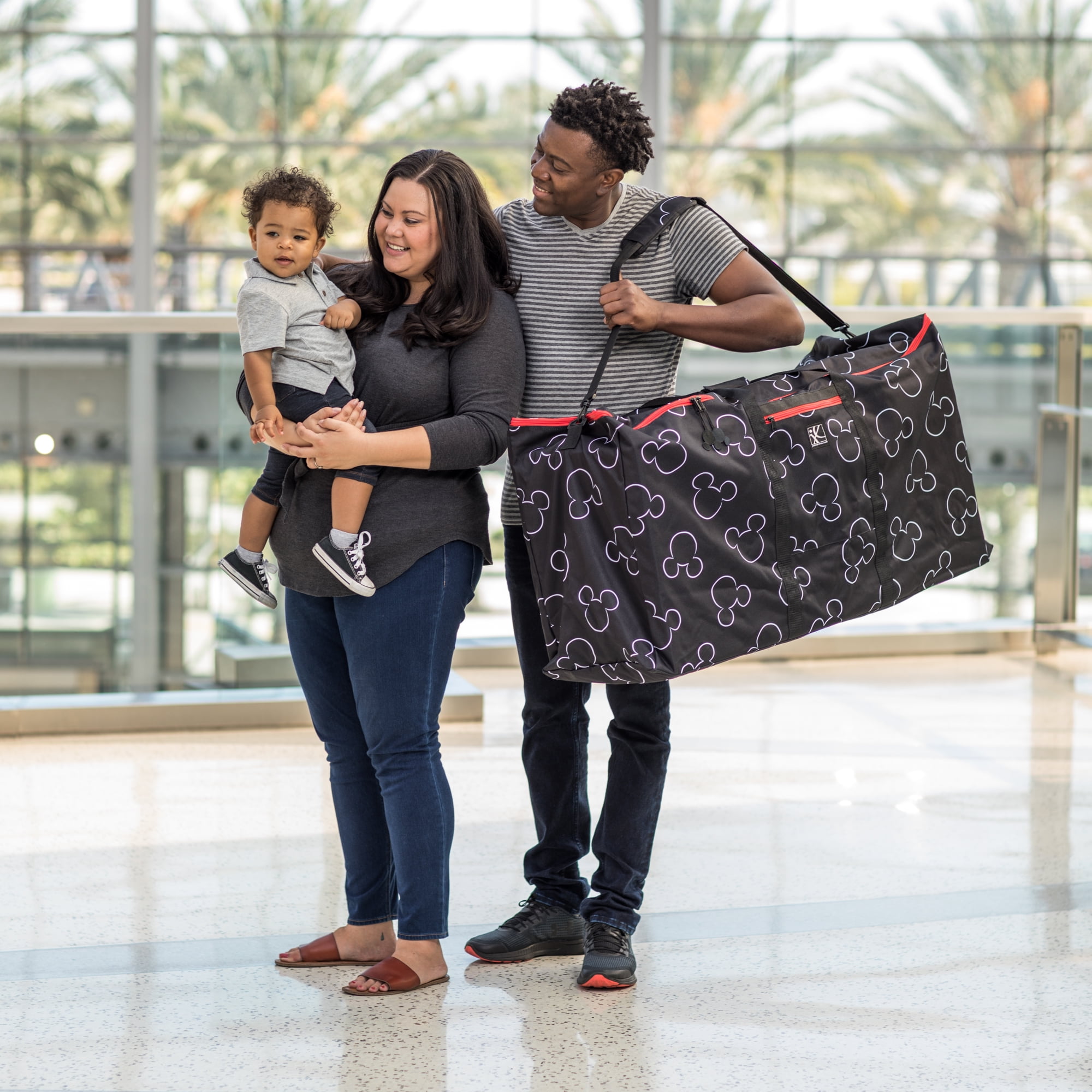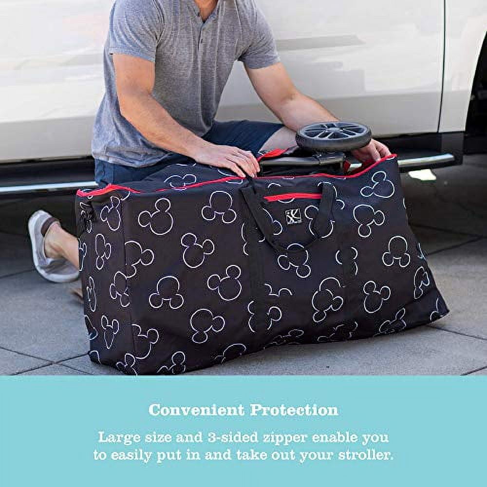 Best-selling stroller travel bags by J.L. Childress, now feature an adorable touch of Disney! Made of heavy-duty, easy-care, water-resistant fabric Features carry handles and adjustable and detachable shoulder strap with shoulder pad Features a three-sided, dual zipper top opening Zippered exterior pocket to hold the shoulder strap (we recommend removing strap before checking as luggage) ID pocket with an ID card for easy identification Compatible with most strollers, contact J.L. Childress to confirm . From our family to yours, Travel Happy!