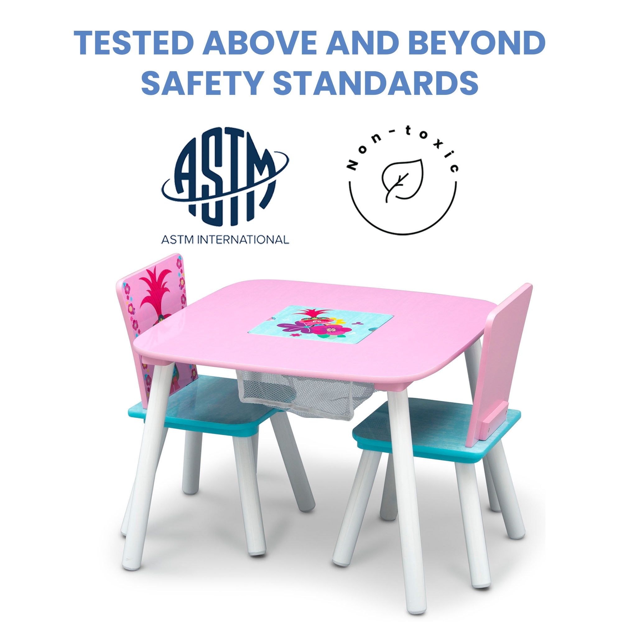 What’s Included: Set includes one table and two chairs Age Range: Recommended for toddlers and kids ages 3+ | Each chair holds up to 50 lbs For the Frozen II Fan: This kids table and chair set features colorful graphics of Anna and Elsa Tons of Storage: Table features handy toy keep in the center for easy storage of makers, crayons and more Durable Construction: Made of engineered wood and solid wood | Scratch-resistant finish protects the table’s colorful graphics | Easy assembly We Put Your Child’s Safety First: Meets or exceeds all safety standards set by the CPSC Size: Assembled dimensions: 24″L x 24″W x 17.72″H