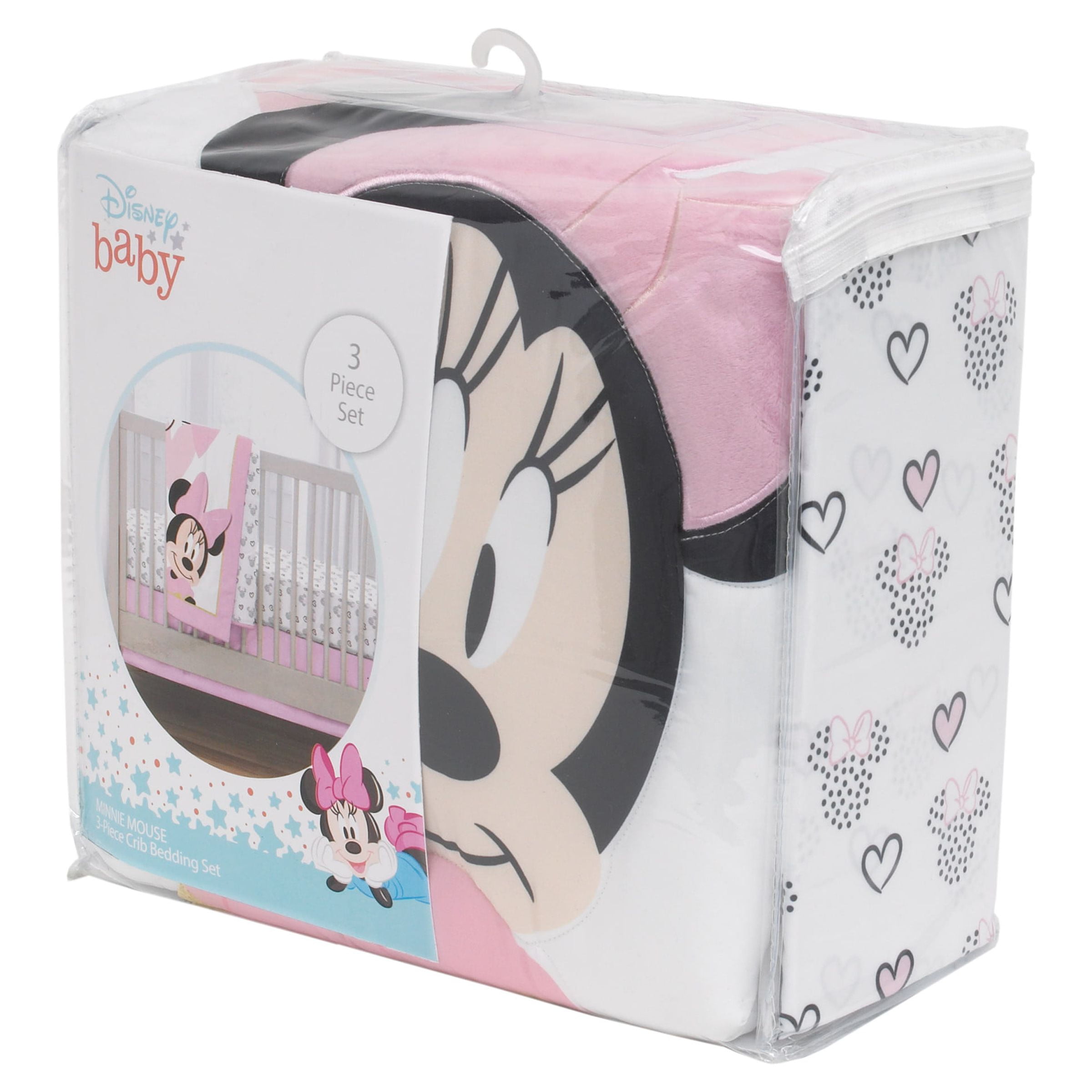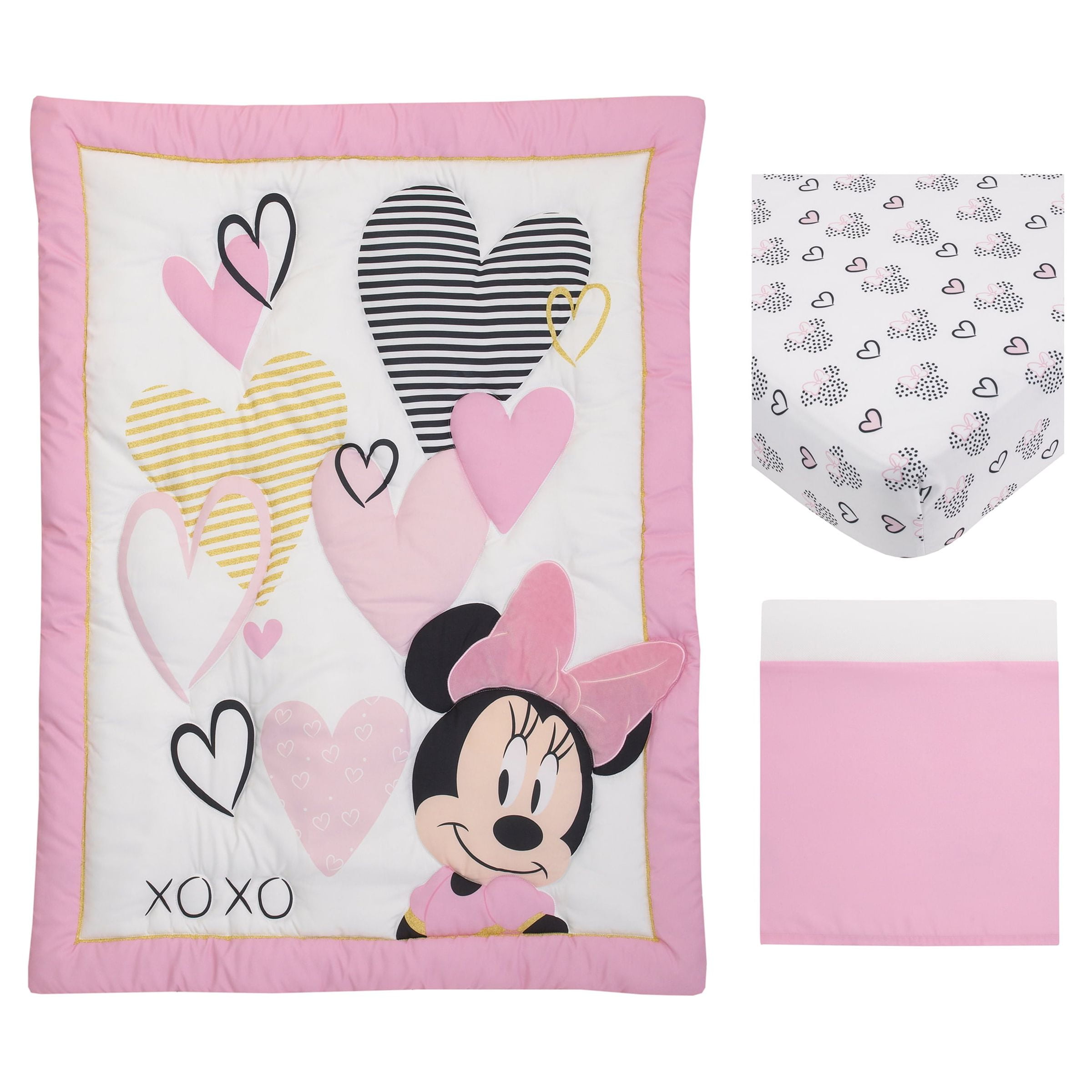 Disney Minnie Mouse Hearts 3-Piece Crib Bedding Set, Crib, Pink, Playful Hearts, Infant Girl