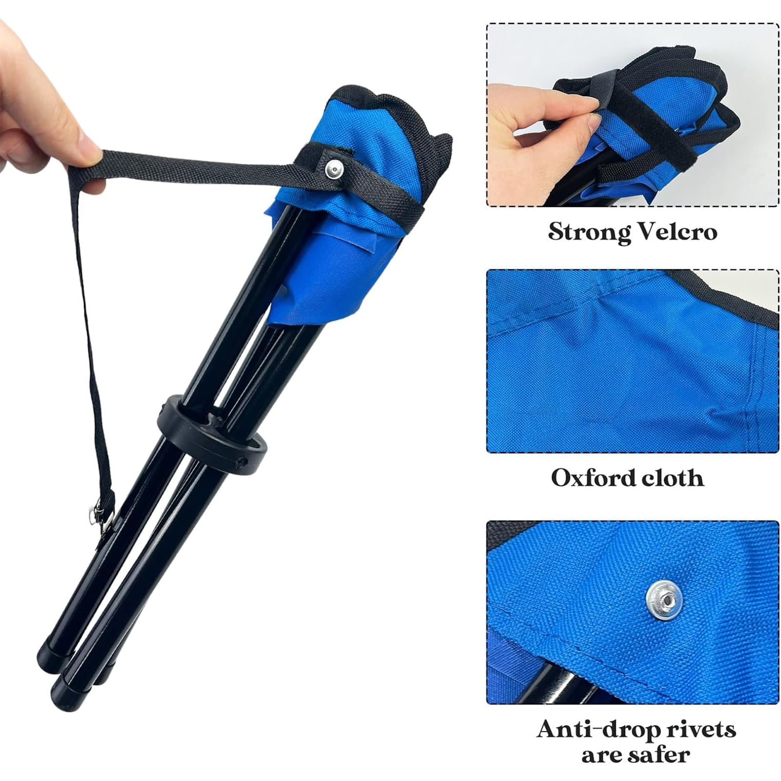 Features: Enjoy and relax: Whether you are relaxing on the beach, fishing by the river, listening to music, or camping outdoors, camping benches will make you feel relaxed. Easy to install and carry The lightweight folding stool has a design that is easy to fold. Therefore, you can set it up and pack it away in a few seconds, and the shoulder bag allows you to easily carry other camping equipment. Durable and sturdy The portable stool is composed of 600D breathable Oxford cloth and a high-strength metal rod with a diameter of 26 mm. The load-bearing capacity of the frame support is up to 120 pounds. About size: Shrinking size: 50*7*7cm/19.69*2.78*2.75 inches Expanded size: 38*31*31 cm/14.96*12.21*12.216 inches Specification: Color: blue Product Name: Folding Mountaineering Stool/Portable Folding Chair Product material: 600D Oxford cloth + 16mm strength steel Product Weight: 300 g