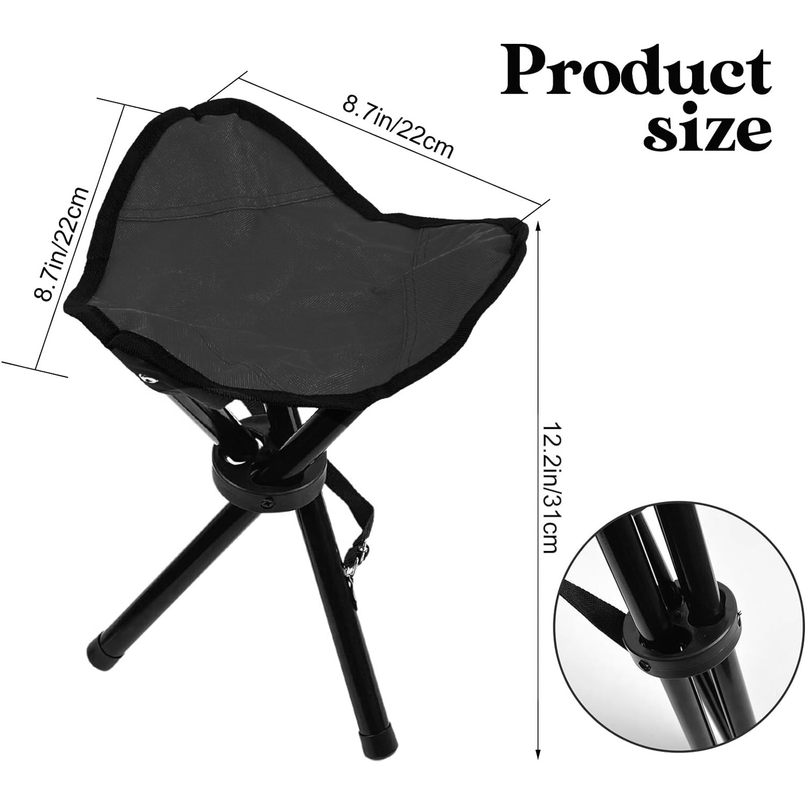 Features: Enjoy and relax: Whether you are relaxing on the beach, fishing by the river, listening to music, or camping outdoors, camping benches will make you feel relaxed. Easy to install and carry The lightweight folding stool has a design that is easy to fold. Therefore, you can set it up and pack it away in a few seconds, and the shoulder bag allows you to easily carry other camping equipment. Durable and sturdy The portable stool is composed of 600D breathable Oxford cloth and a high-strength metal rod with a diameter of 26 mm. The load-bearing capacity of the frame support is up to 120 pounds. About size: Shrinking size: 50*7*7cm/19.69*2.78*2.75 inches Expanded size: 38*31*31 cm/14.96*12.21*12.216 inches Specification: Color: black Product Name: Folding Mountaineering Stool/Portable Folding Chair Product material: 600D Oxford cloth + 16mm strength steel Product Weight: 300 g