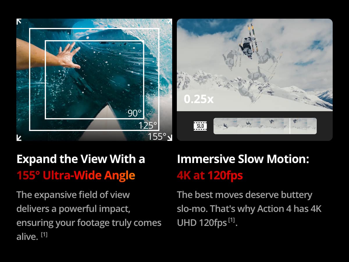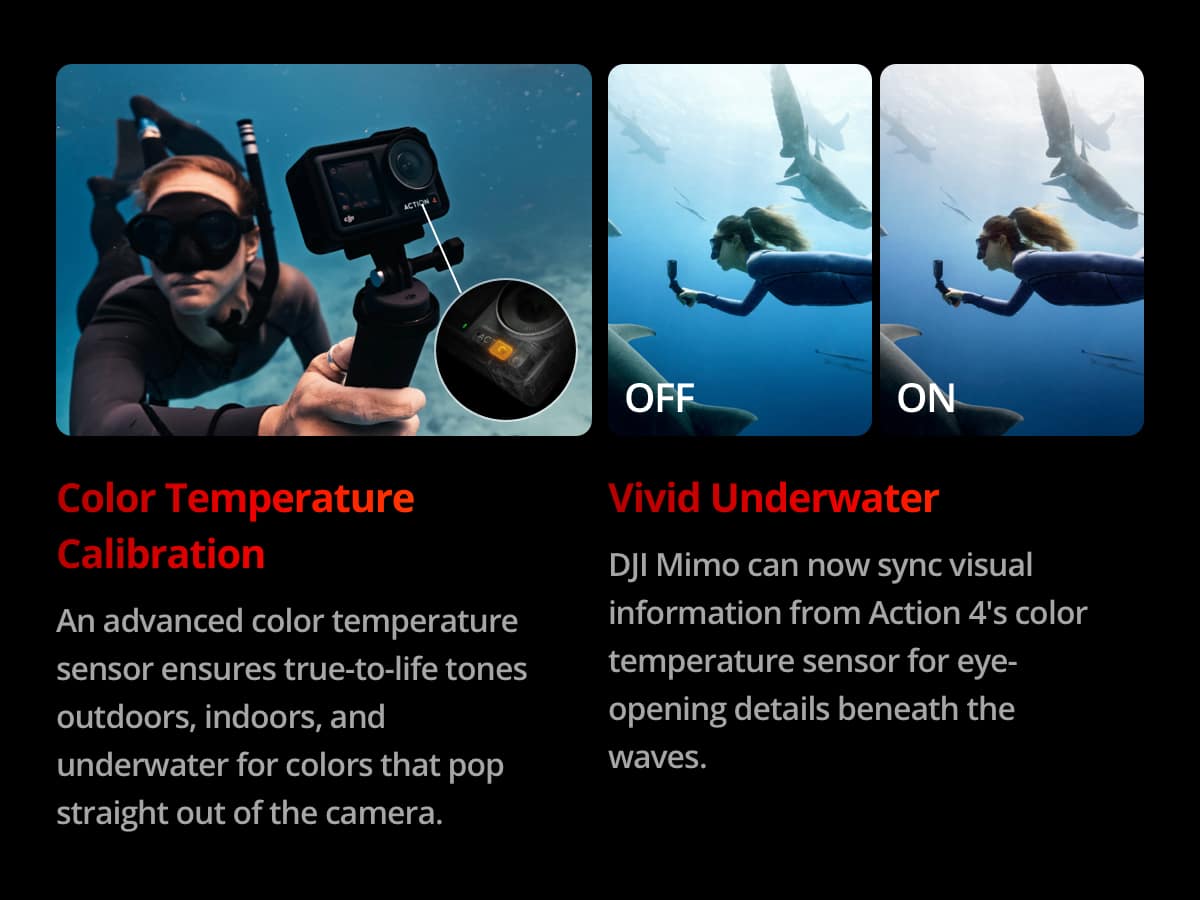 Capture the raw exhilaration of any moment with striking image quality and unmatched flexibility, even when the lights dim. Osmo Action 4 empowers thrill-seekers to record it all, share the rush, and set the tone.