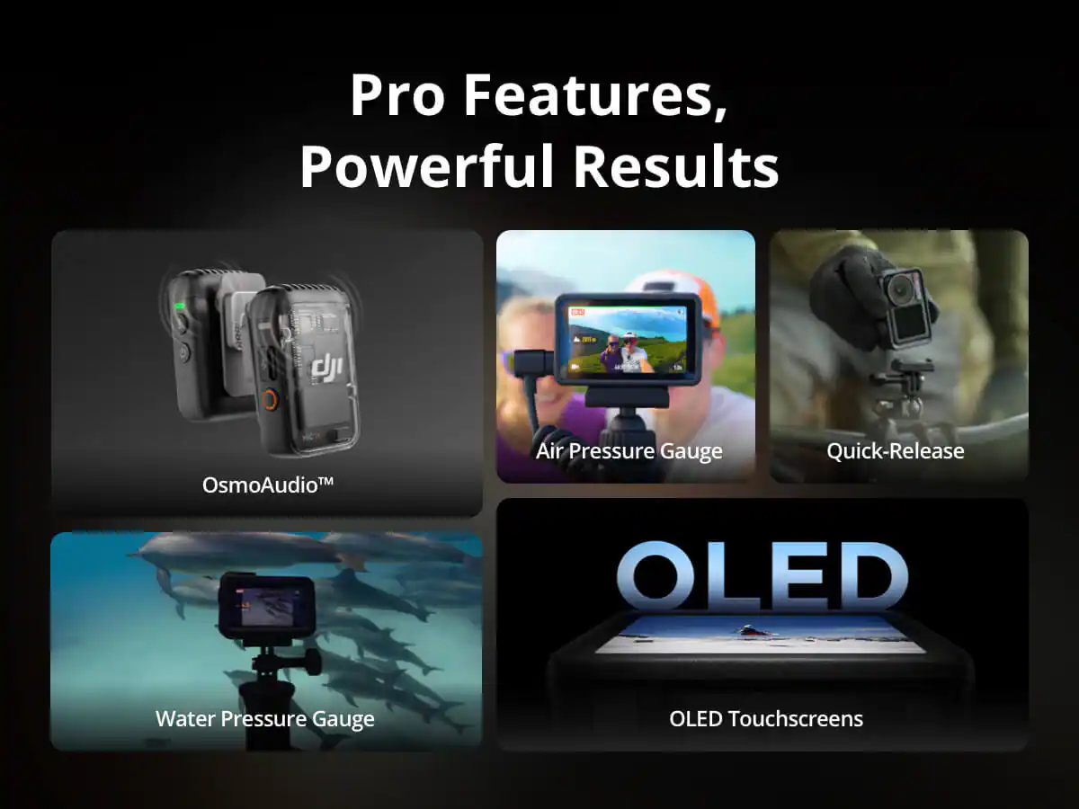 Capture every moment with revolutionary image quality using the DJI Osmo Action 5 Pro. Featuring a next-gen 1/1.3-inch sensor, subject centering, up to 4 hours of battery life, and real-time diving depth and altitude displays. Dive into your next adventure with the Action 5 Pro.