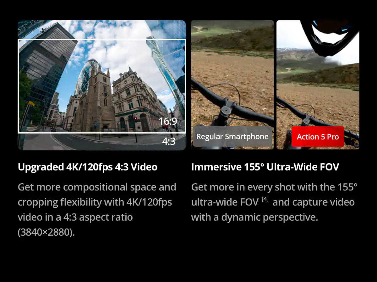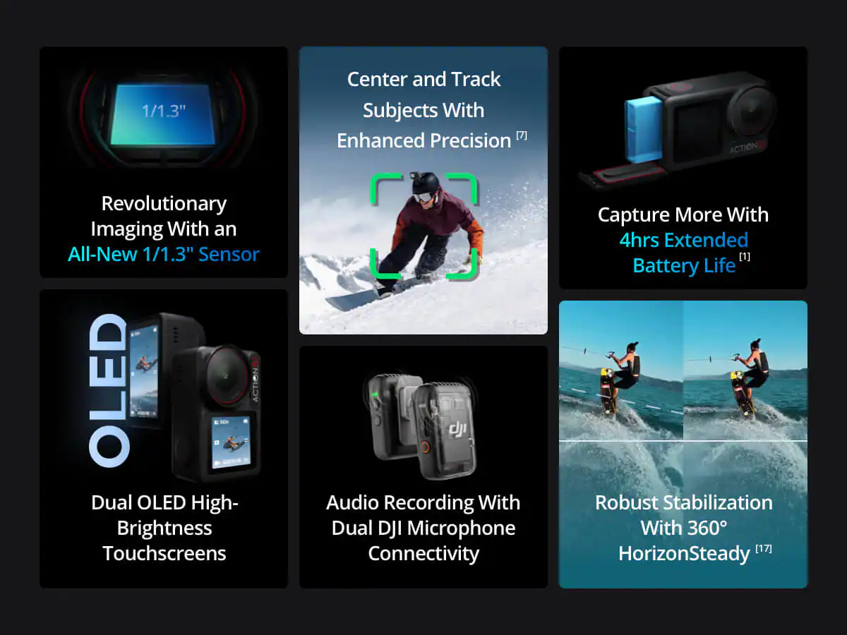 Capture every moment with revolutionary image quality using the DJI Osmo Action 5 Pro. Featuring a next-gen 1/1.3-inch sensor, subject centering, up to 4 hours of battery life, and real-time diving depth and altitude displays. Dive into your next adventure with the Action 5 Pro.