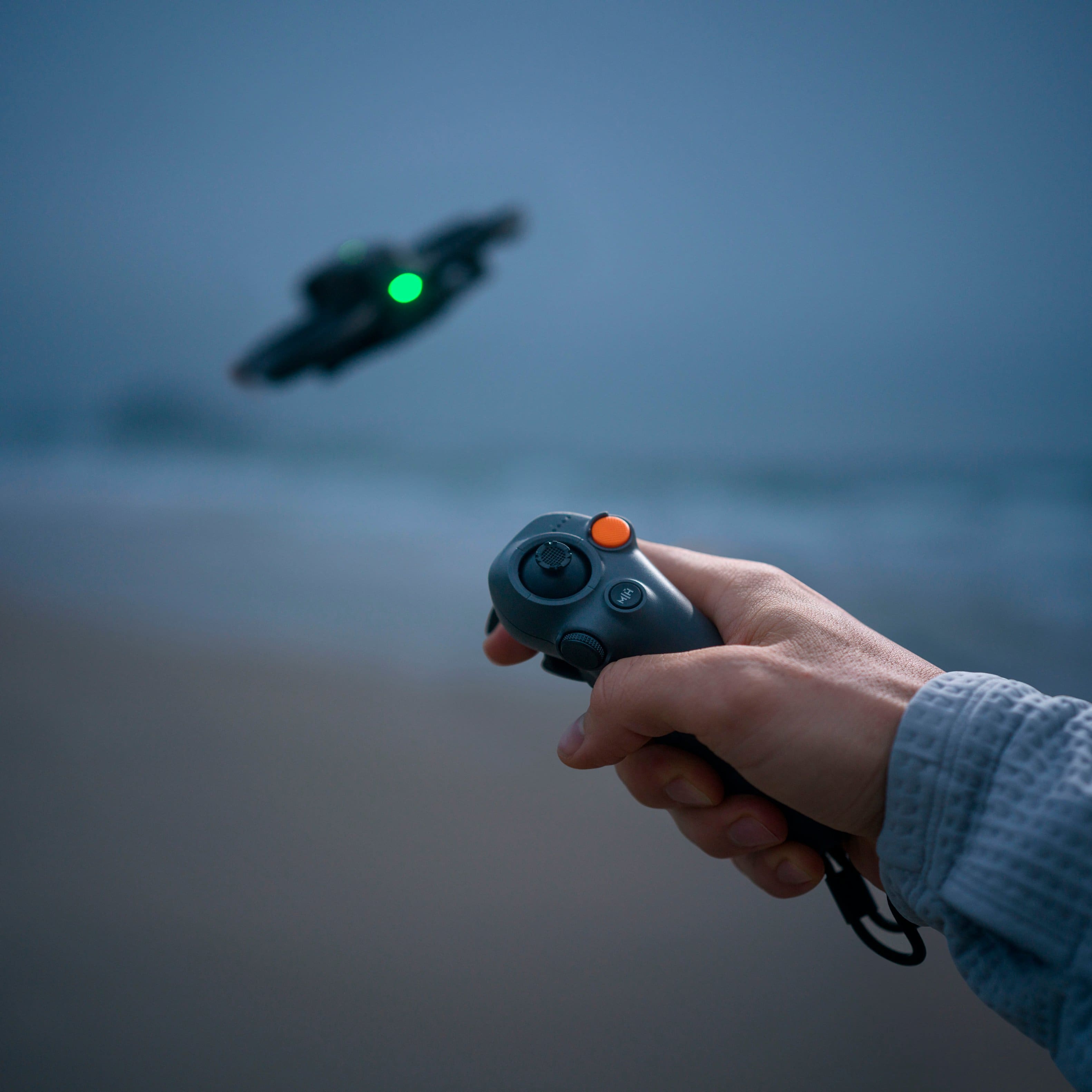 Light and portable, DJI RC Motion 3 features a streamlined design for a comfortable grip. A natural layout of various function buttons on its compact body enables you to perform takeoffs, stops, and mode switches with just a ‘push’ of your finger.