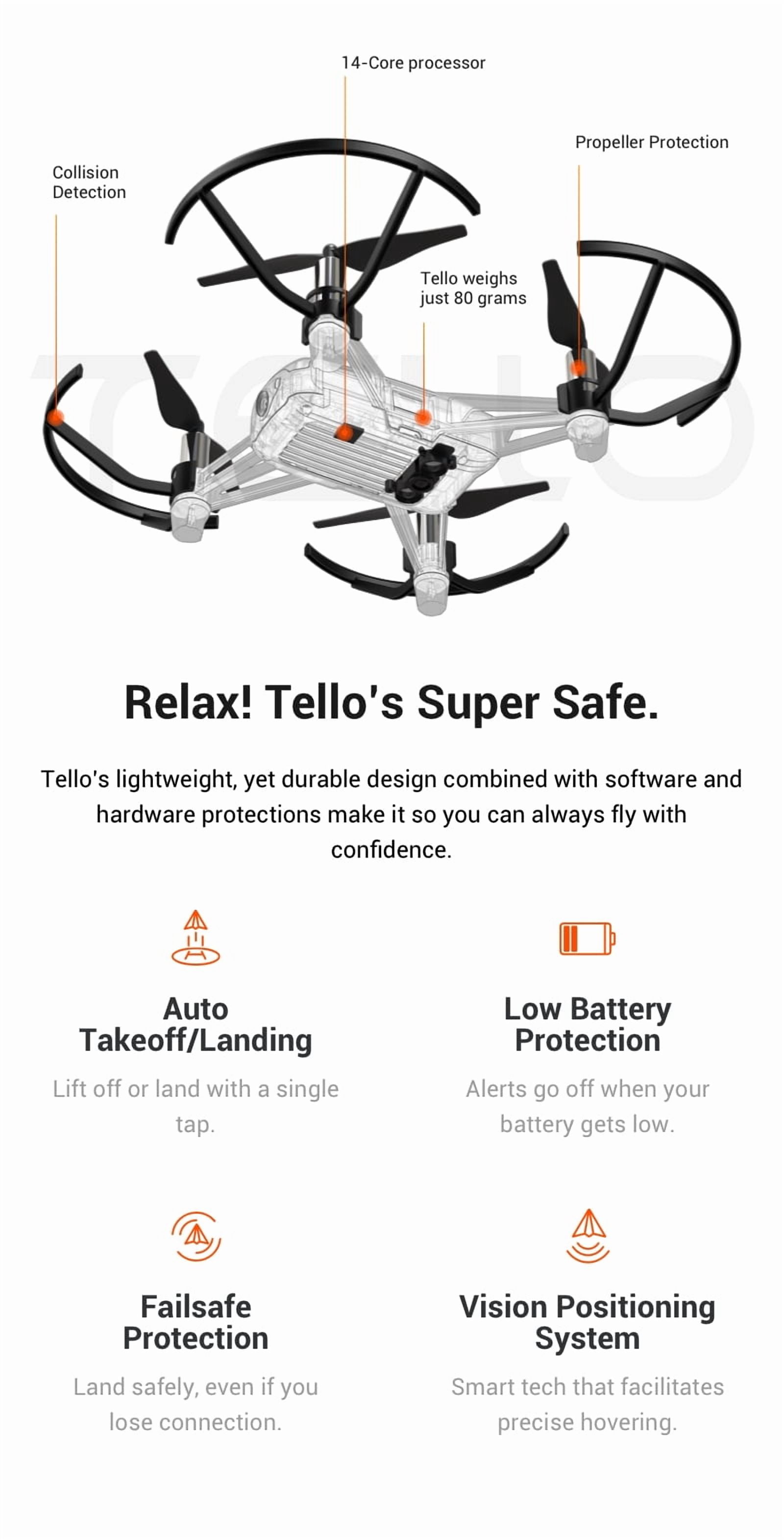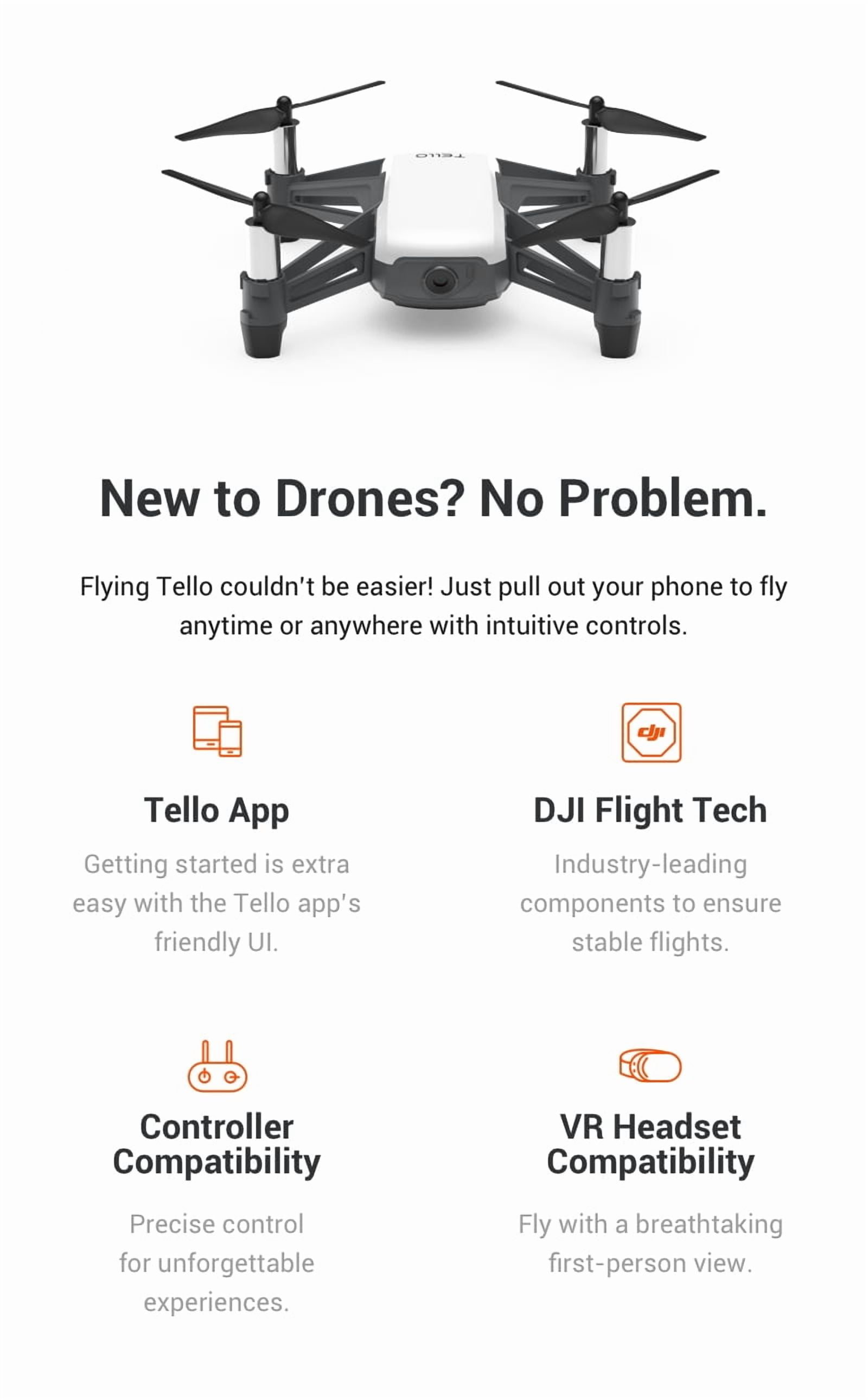 DJI Tello Quadcopter Beginner Drone VR HD Video – CP.PT.00000252.01