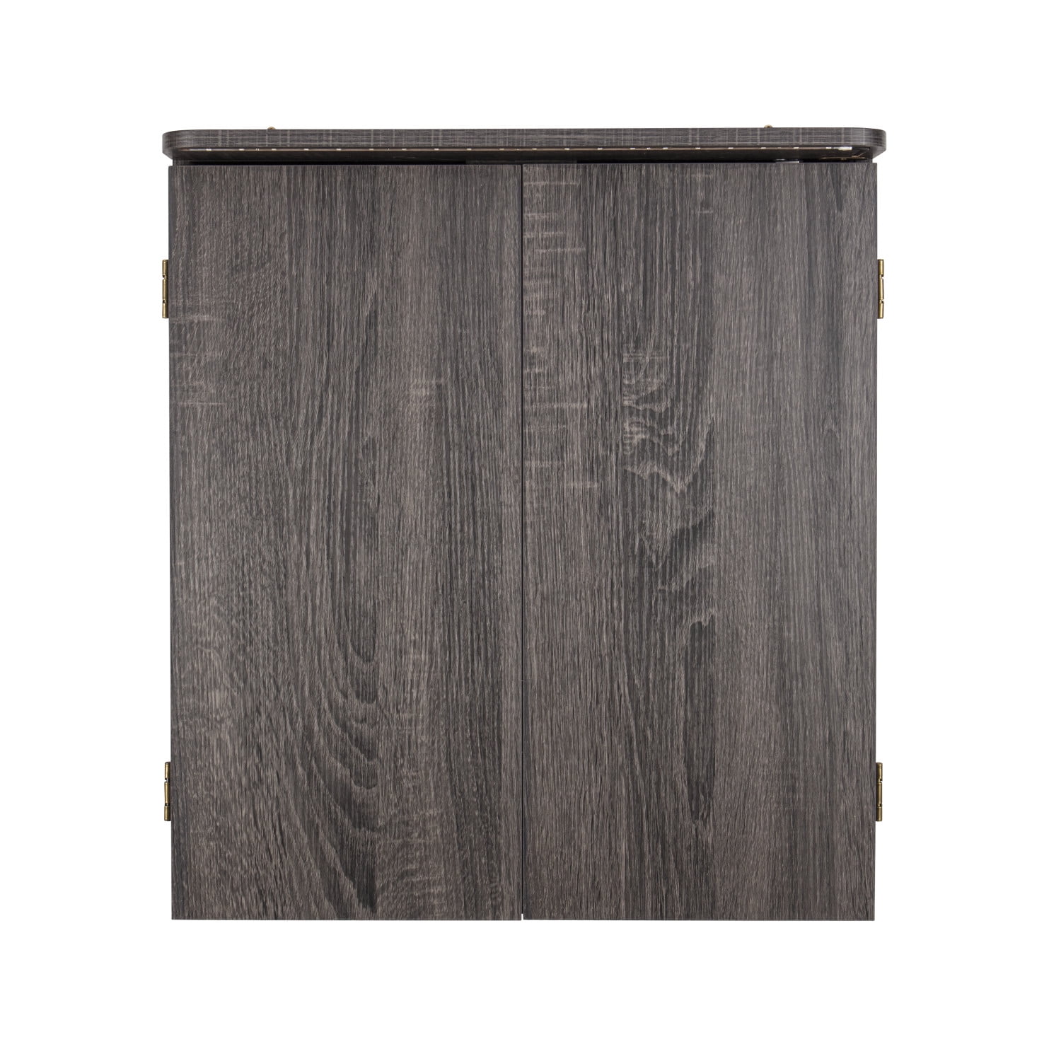 The Paris “cabinet of lights” features a unique built in LED lighting system that automatically turns on when you open the doors and shuts off when you close the cabinet doors. The top mounted LED light system is a nice finishing touch for game play in dim lighting that resembles authentic pub style play. The cabinet is finished off with a burnt grey wood laminate that will fit right in with today’s homes décor. The included dartboard is an official size 18in x 1.5in. Bristle sisal dartboard with self-healing properties. The board includes a rotatable number ring so that the heavy traffic areas of the board can be changed to prolong the life of your dartboard. The set includes 6 steel tip darts, so the board is ready to play on when you get it home.