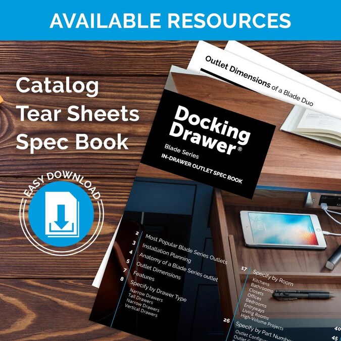 - Create clutter free and organized spaces with safe in-drawer electrical outlets.