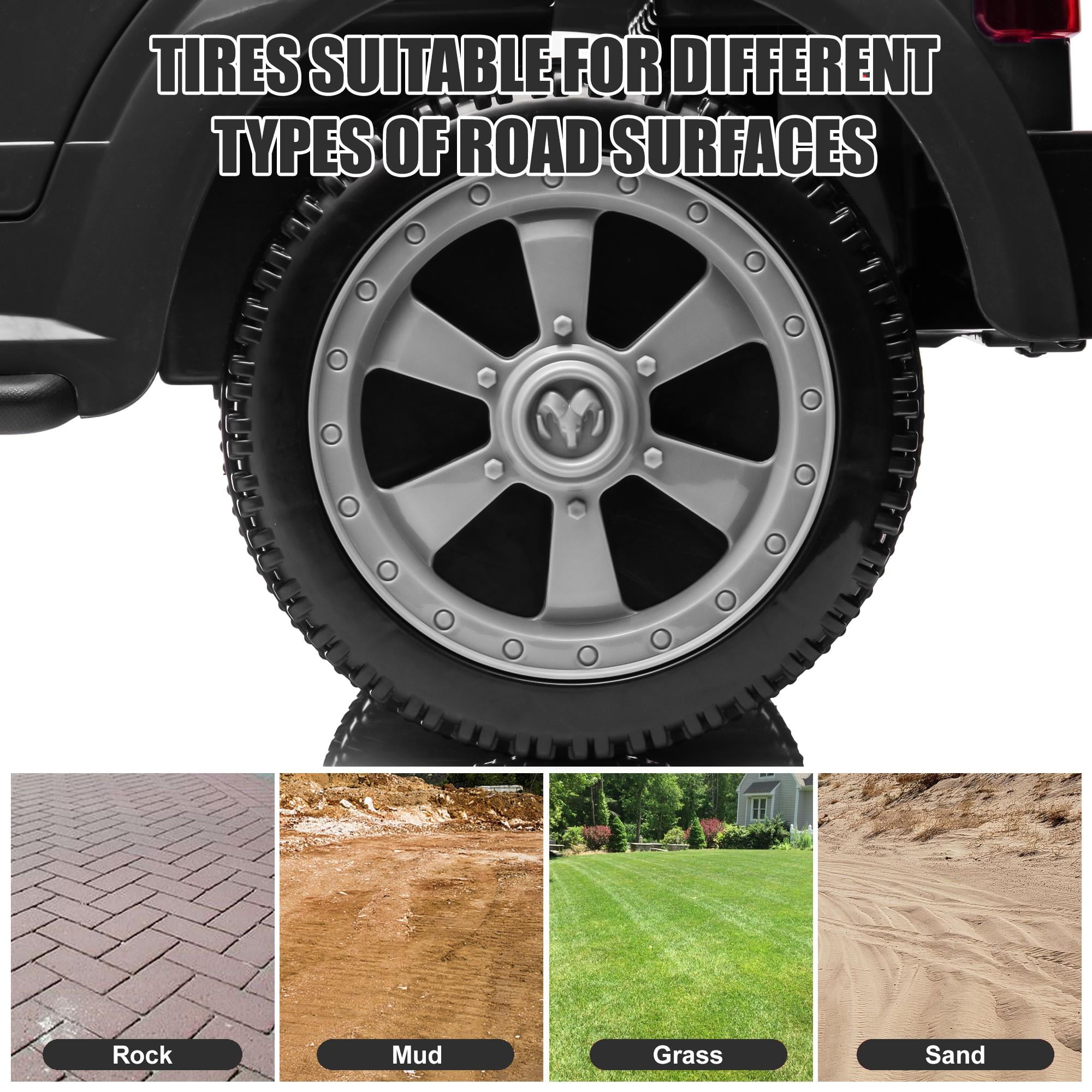 12V Official Licensed Dodge Ram Ride on Cars with remote control will put your kids in the center of the crowd with its great looks and performance. This Dodge Ram Battery Powered Ride on Car comes with a parent remote control, you can control the speed and direction of your kid’s electric car Or stop and give you and your kids more happy moments. Your kids can drive through the steering wheel, on key to the start button, and the operation function. This Dodge Ram ride on cars is equipped with a multimedia music player function, you can provide your children with a USB interface, TF card interface, and Bluetooth mobile phone connection to play music or children’s favorite stories. This Dodge ride on toy also thoughtfully upgraded the safety seat with a five-point safety belt, and the rear wheel Suspension function protects children’s smooth driving safety. This battery-powered electric car also has a Cup Holder and Storage Shelf Inside. This 12v ride-on car toy is the perfect gift for children aged 3-8. This ride on cars toy accompanies your child’s growth. ??Key Features: 1. Licensed Dodge Ram 2500 2. USB/MP3/Battery Level Display/Bluetooth Connectivity: Elevate the fun with USB and MP3 compatibility, and Bluetooth, and stay in control with a clear battery level display. 3. Five-Point Safety Harness: Prioritize safety with a secure five-point harness for your child. 4. LED Lights/Music: Immerse the adventure with dynamic LED lights and a built-in music system. 5. RAM 2500 Authorized Manufacturing: Authentically crafted under the authorization of RAM 2500, ensuring a high-quality and genuine product. 6. Realistic Pickup Truck Design: Embrace authenticity with the lifelike appearance of a genuine pickup truck. 7. Cup Holder and Storage Shelf Inside: Convenience at its best with an interior designed to hold cups and personal items. 8. Rear Storage Space: Additional storage at the back, perfect for toys or other essentials. 9. Rear Wheel Suspension: Smooth out the bumps with rear wheel suspension for a more comfortable ride. 10. Authentic Rear-Wheel Drive Sensation: Experience the realism of rear-wheel-drive, providing an authentic driving feel ??Specifications: Brand Authorization: Dodge Ram 2500 Authorization Project name: Dodge ride on cars Product material: PP+metal suspension Product color: Black/White/Blue/Red Battery: 12v7AH Motor: 35w*2 Maximum load: 77.2 lbs. Speed: 3-5km/h Running time: 1-2 hours Applicable age: 3-8 years old Test standards: ASTM, CPSIA, MSDS, CPC ??Dimensions Weight: Product Dimensions: 44.49″L x 24.02″W x 23.23″H Package Dimensions: 44.88″L x 22.64″W x 14.76″H Net Weight: 35.27LBS Gross weight: 44.08LBS ??Products Include 1 x Ride On Car 1 x 2.4G Remote Control 1 x Charger 1x Manual ??Warm Notes 1. Kids under 3 years need to be supervised by an adult 2. Please check the size before purchasing as some kids grow faster.