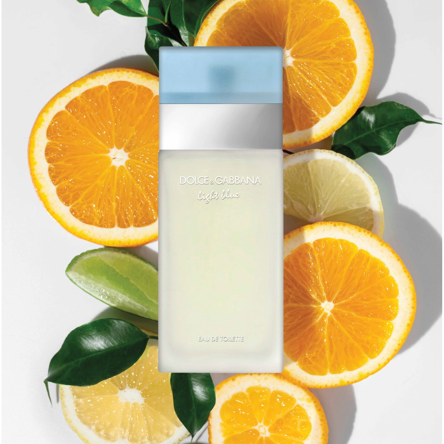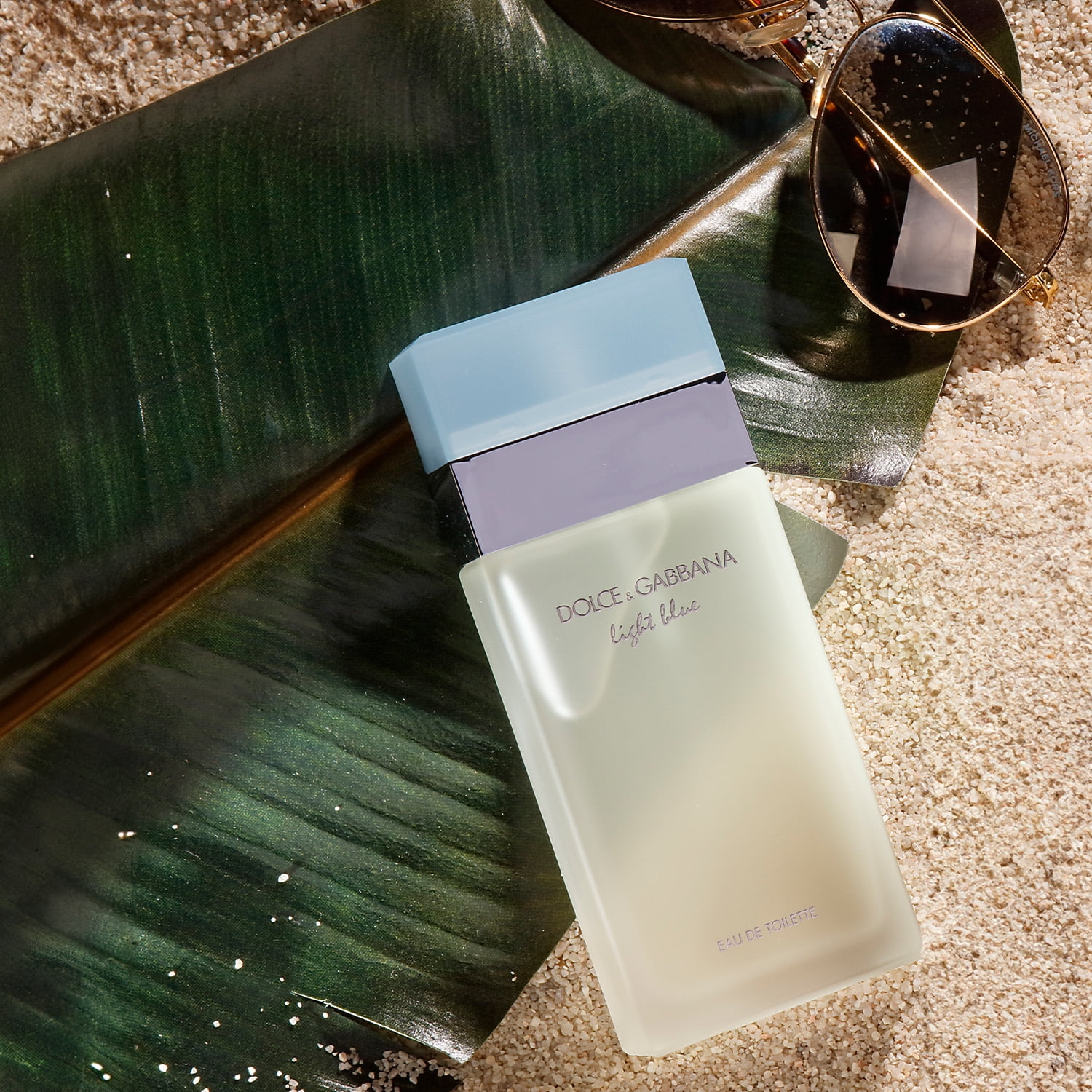 1.6 oz Dolce & Gabbana Light Blue EDT Fragrance Family: Floral Fruity Top Notes: Apple, Cedar, Bellflower, Sicillian Lemon Heart Notes: White Rose, Bamboo, Jasmine Base Notes: Amber, Musk, Cedar 0 0