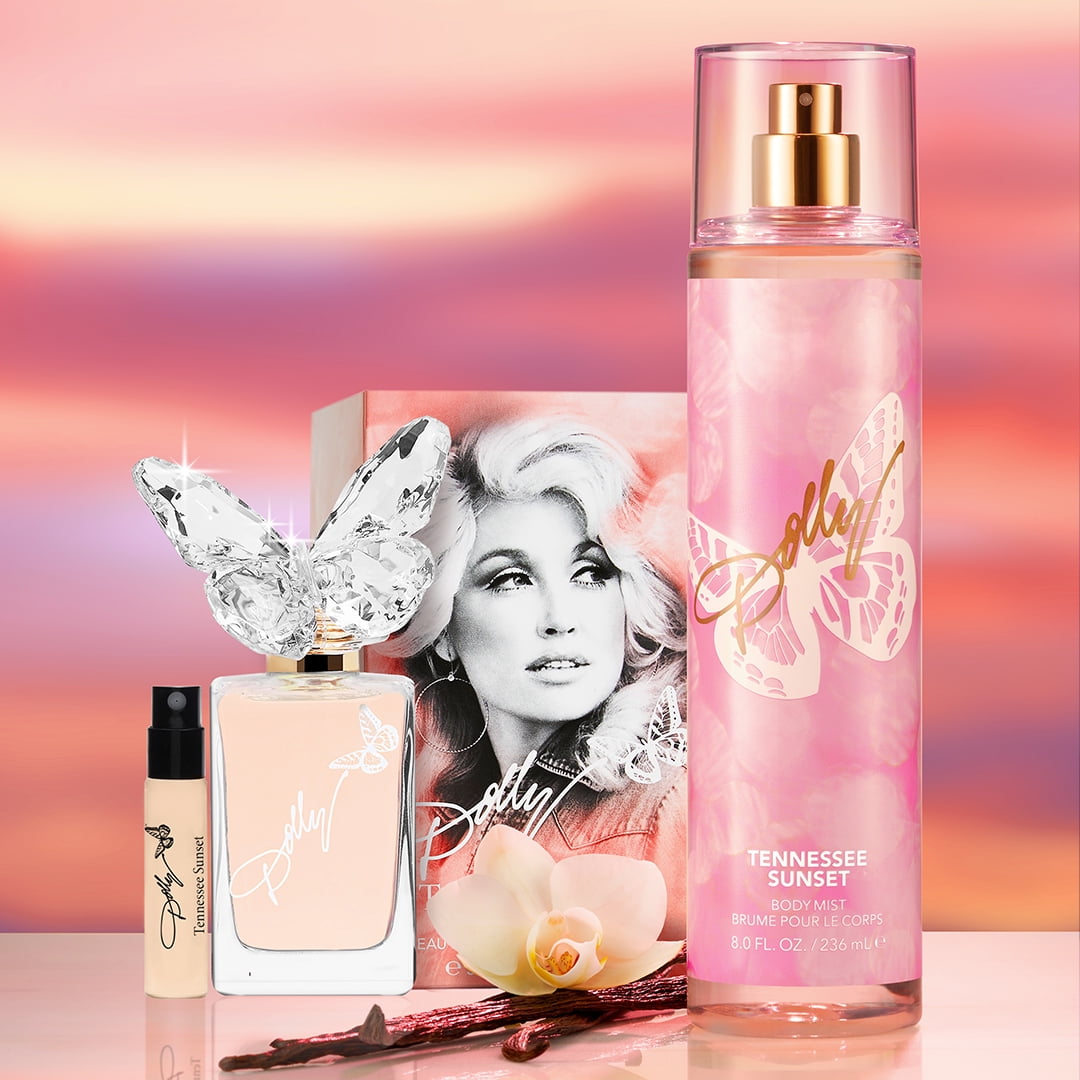 SCENT STORIES FROM THE FRONT PORCH. All the wonderful stories from Dolly’s front porch – straight from the Smoky Mountains to our hearts. Share your dreams, have some fun – create your stories with Dolly Front Porch Tennessee Sunset 1.7oz EDT Tennessee Sunset Body Mist for Women features notes of Honeysuckle, Vanilla Orchid and Warm Musks. Best used when sprayed on clean, dry skin on the neck or wrist