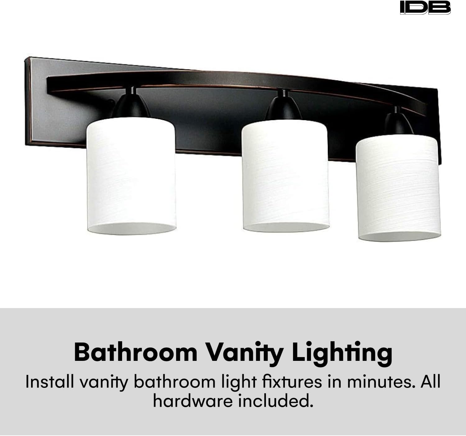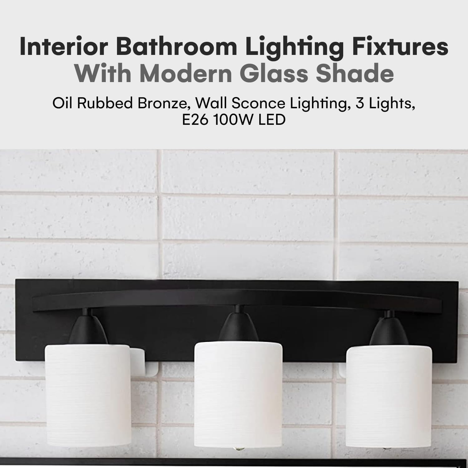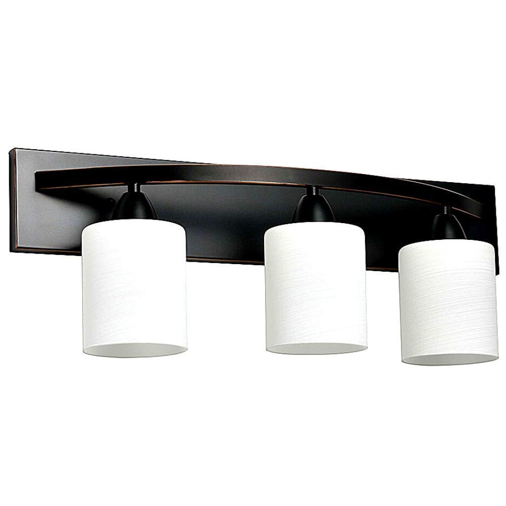 Dorence Oil-Rubbed Bronze 3-Light Bathroom Vanity Bar with Modern Glass Shade | Interior Lighting Fixture (E26 100W LED, Bulbs not Included)