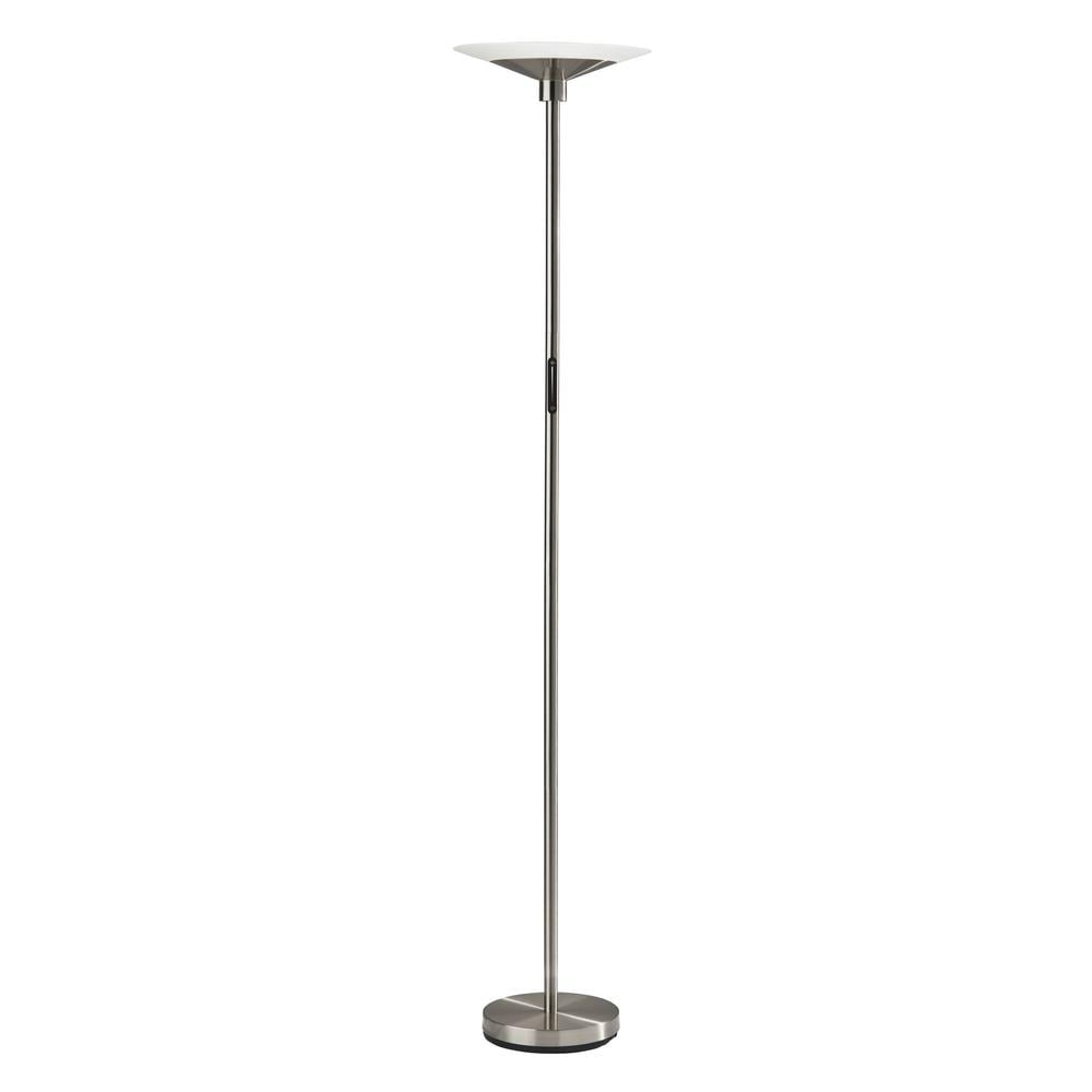 At 54.5″ tall and a mere 4.25″ in diameter, the lamp is the perfect addition to room corners or beside furniture. A smart touch switch controls three color temperature settings: 2700K, 4000K, and 5000K. Three brightness settings are controlled with the touch switch. Integrated LED lighting is energy efficient.