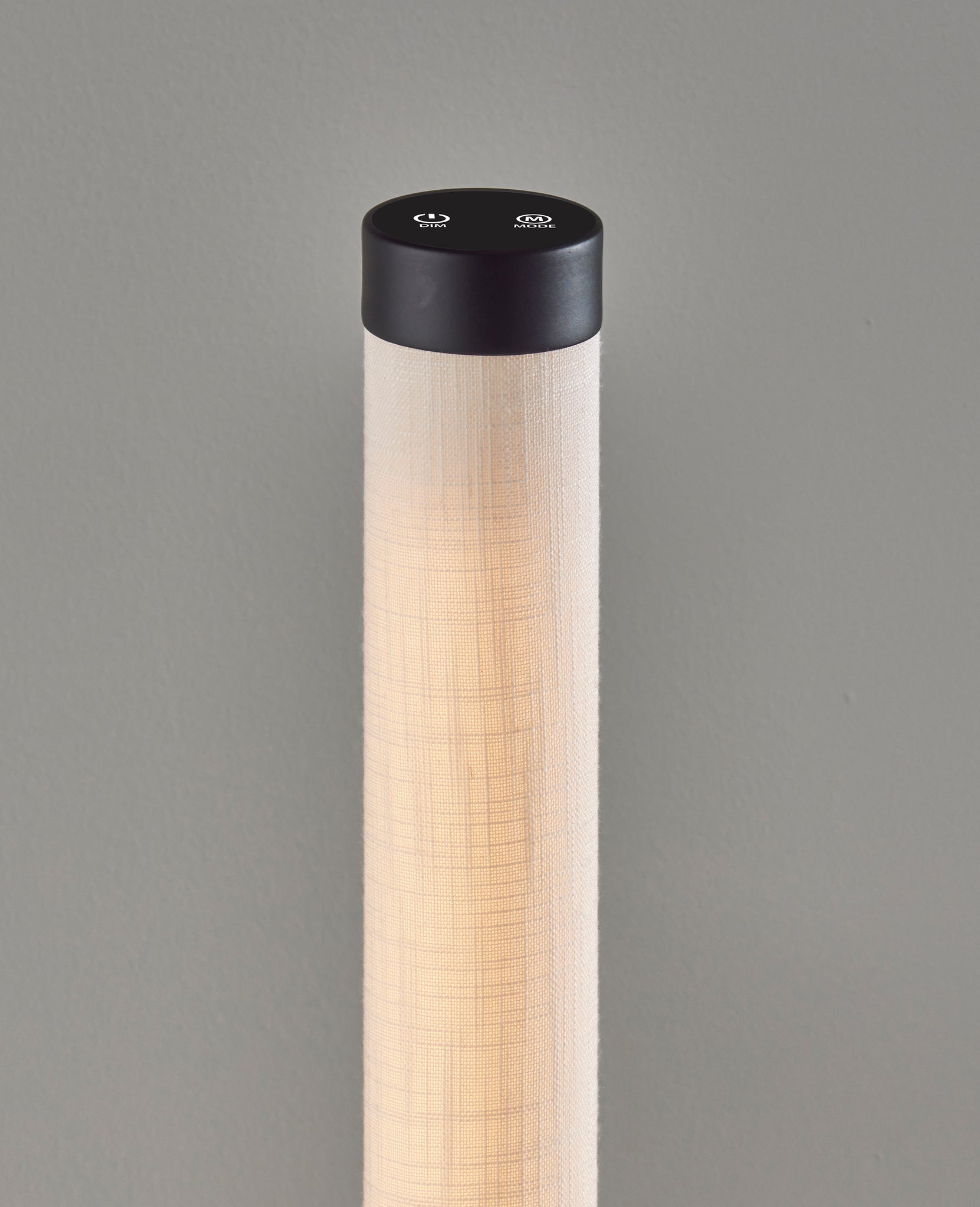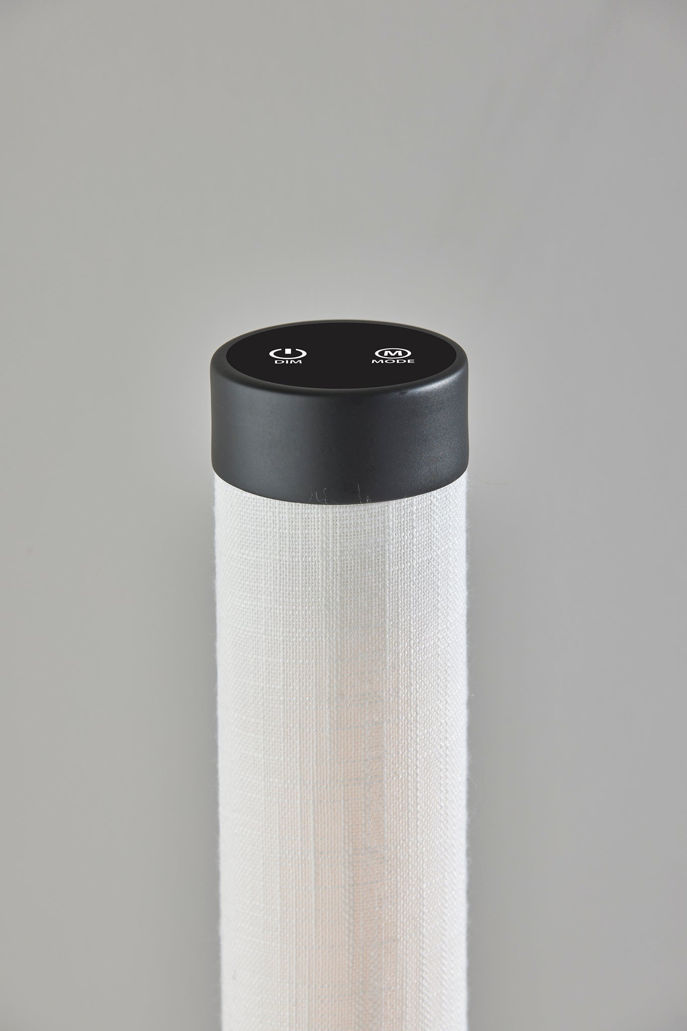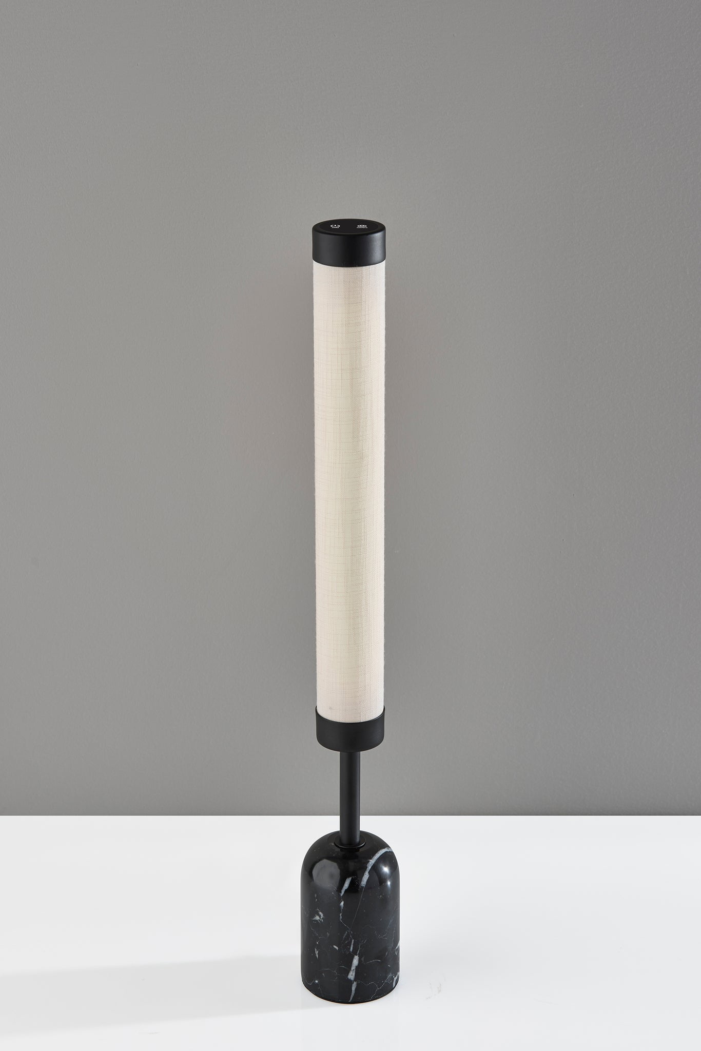 The Dorsey table lamp combines a rich mix of materials, rounded contemporary design, and LED energy efficiency for the perfect accent lighting for your space. The 24″ tall and slim 3″ diameter lamp features a domed base in black marble. A short black pole supports a cylindrical white textured cotton shade. Both economical and versatile, the integrated 12W eco-friendly LED produces up to 600 lumens to brighten your space. Operated by a touch switch conveniently located on the top of the light shade, the lamp projects light with three brightness settings and three color temperature settings all controlled by the touch of a finger. The lamp is also powered by a 5′ black cord. Complete your décor with the Dorsey LED floor lamp.