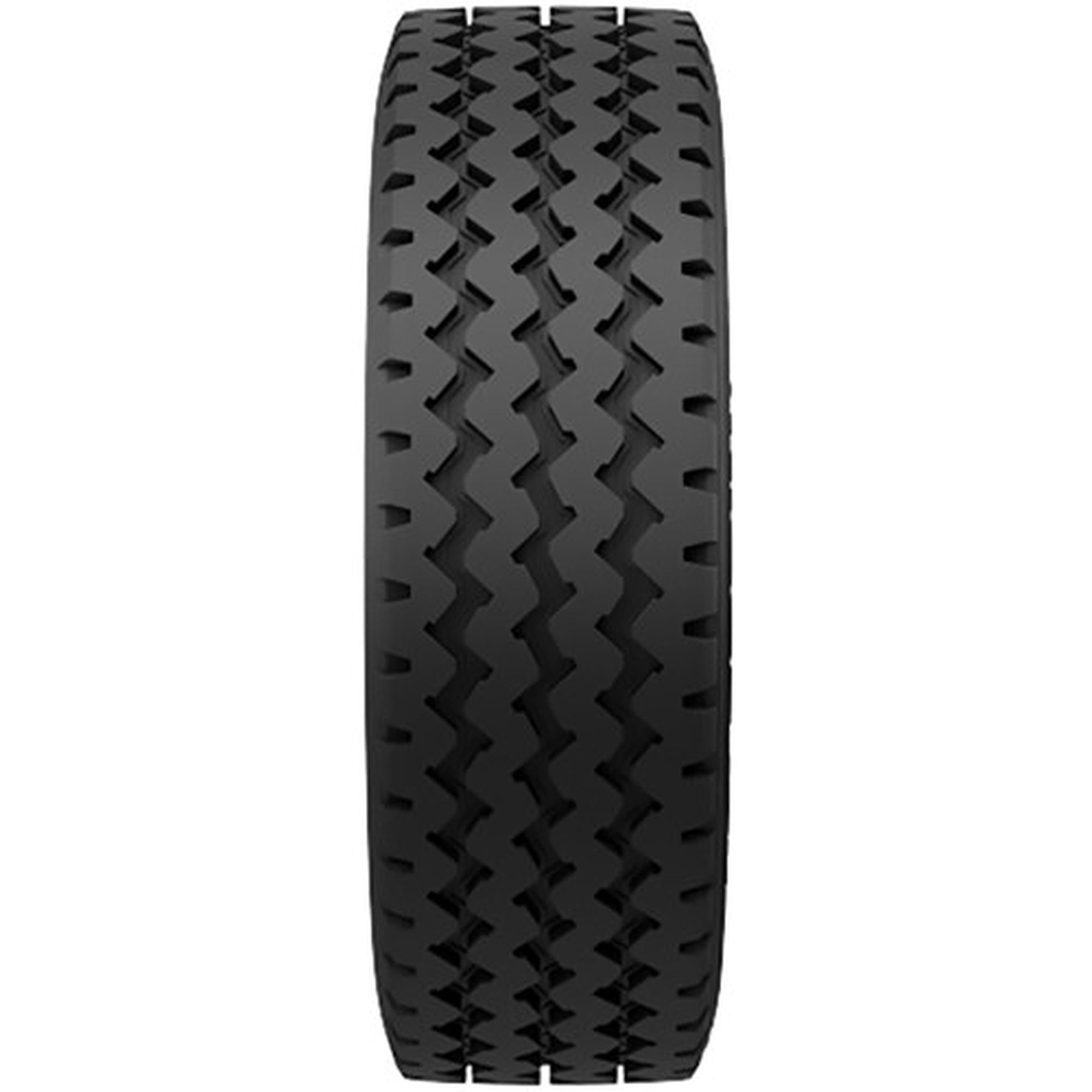 Computer-optimized tread pattern allows for on- and off-highway use Special rubber compound that can withstand a load of up to 10,000 lb. Cut, chip, and tear-resistant material guard the tire from damage to promote a longer tread life Heavy-duty casing enhances performance in tough conditions Circumferential zigzag grooves quickly remove water from the tread to reduce the risk of hydroplaning Size: 11R24.5 Load Range: H Product May Vary From Picture Wheel/Rim Not Included