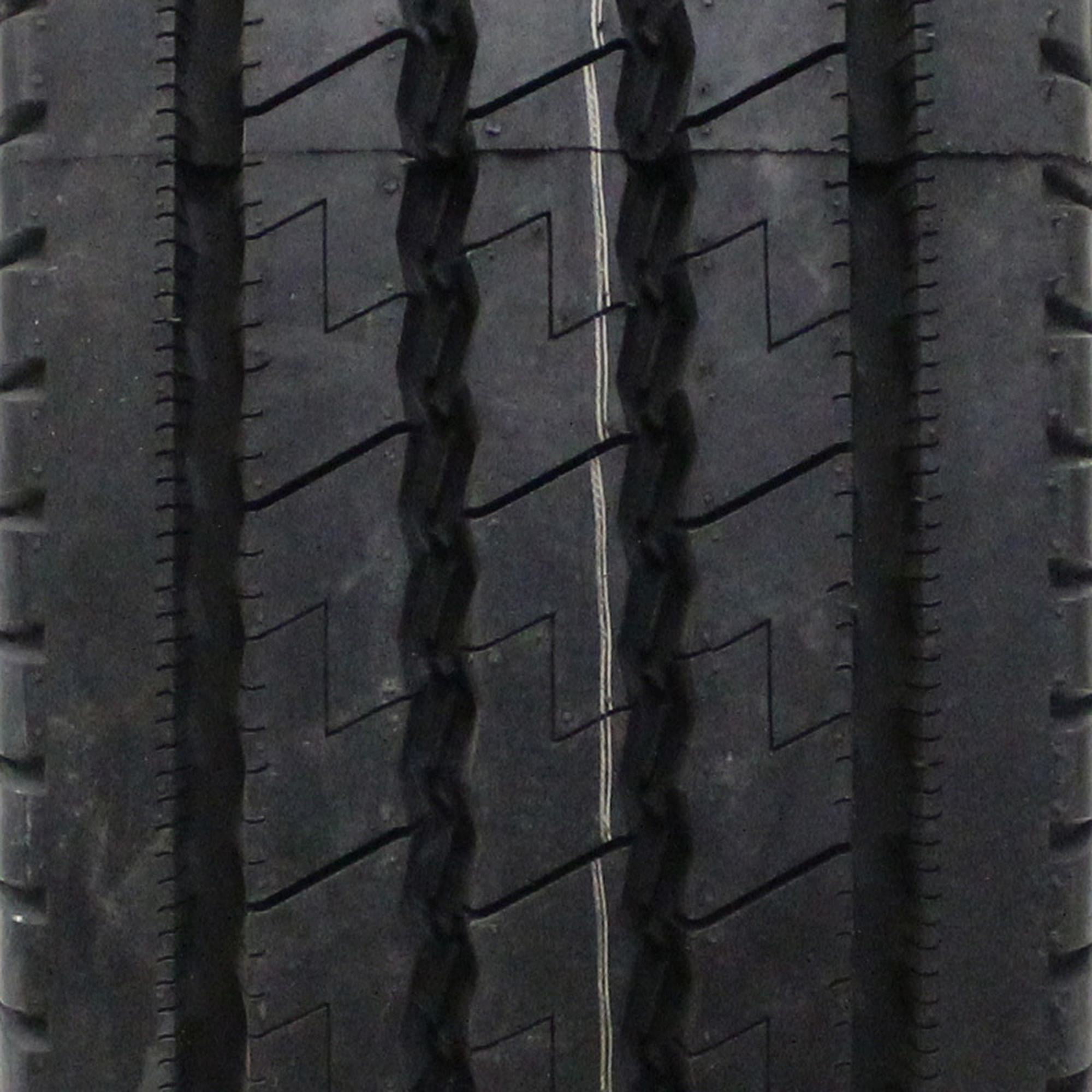 All-position tire, ideal for pick and delivery, regional, and urban applications. 5-rib design promotes excellent grip, precise handling, and lateral stability. Grooves effectively remove water from the contact patch, increasing skid resistance on wet surfaces. Siping on the tread enhances wet grip and minimizes uneven tread wear. Use of enhanced tread compounds leads to longer tread life and exceptional grip. Size: 11R24.5 Load Range: G Product May Vary From Picture Wheel/Rim Not Included