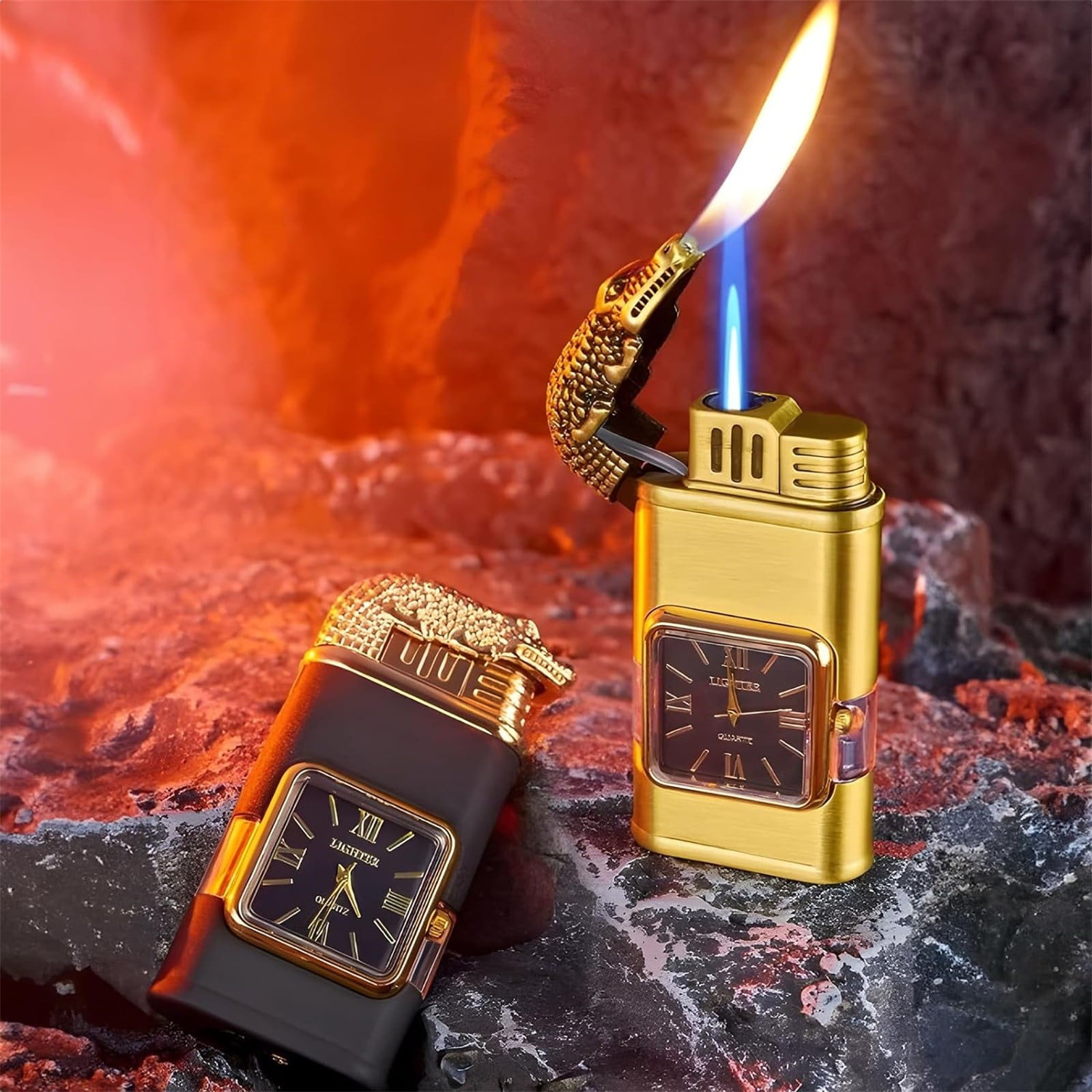 Double Fire Embossed Watch Windproof Torch Metal Inflatable Gift,Camping Essentials,Hiking Gear