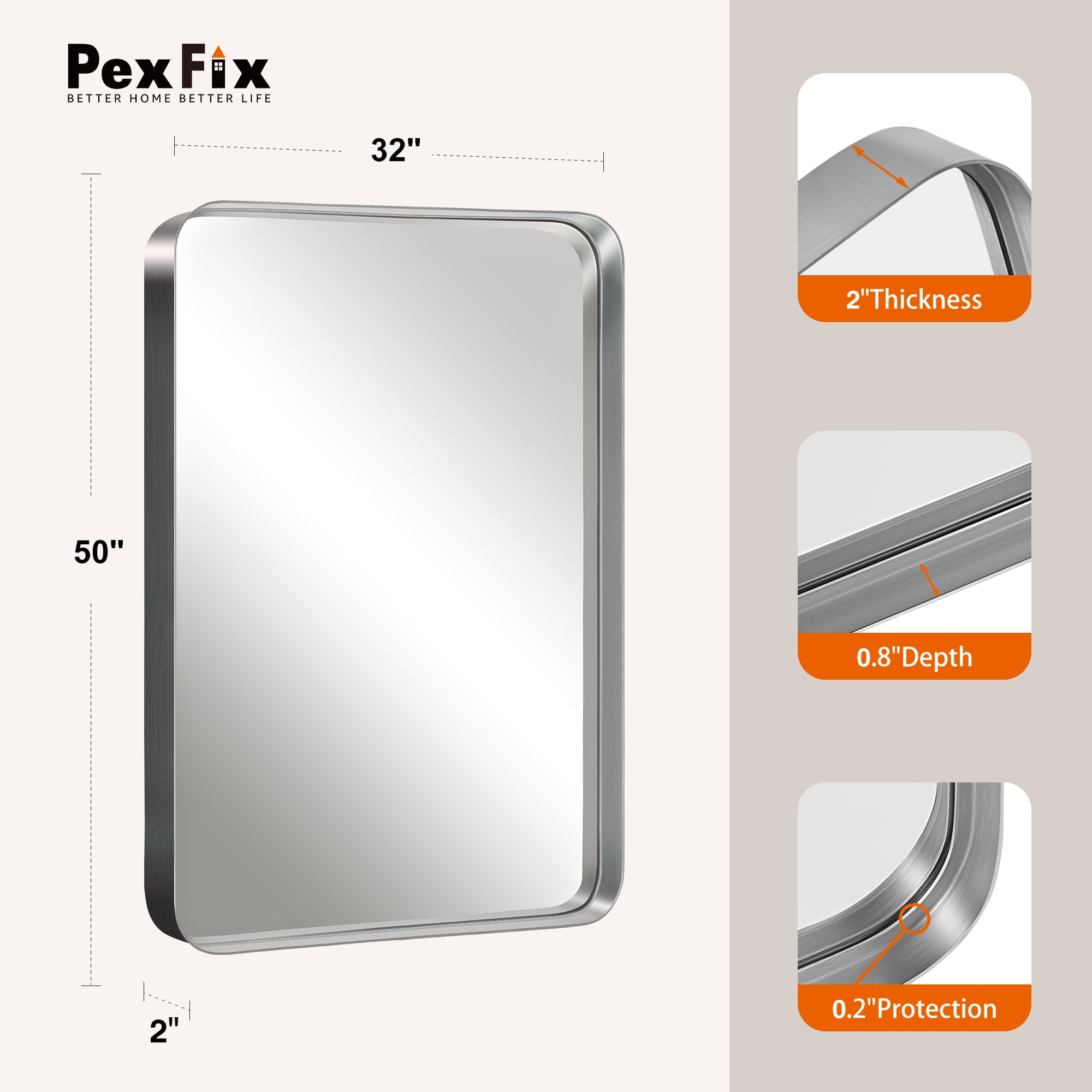 Dovelina 50″x 32″ Decorative Wall Mirror , Bathroom Vanity Mirror Accent Mirror, Silver