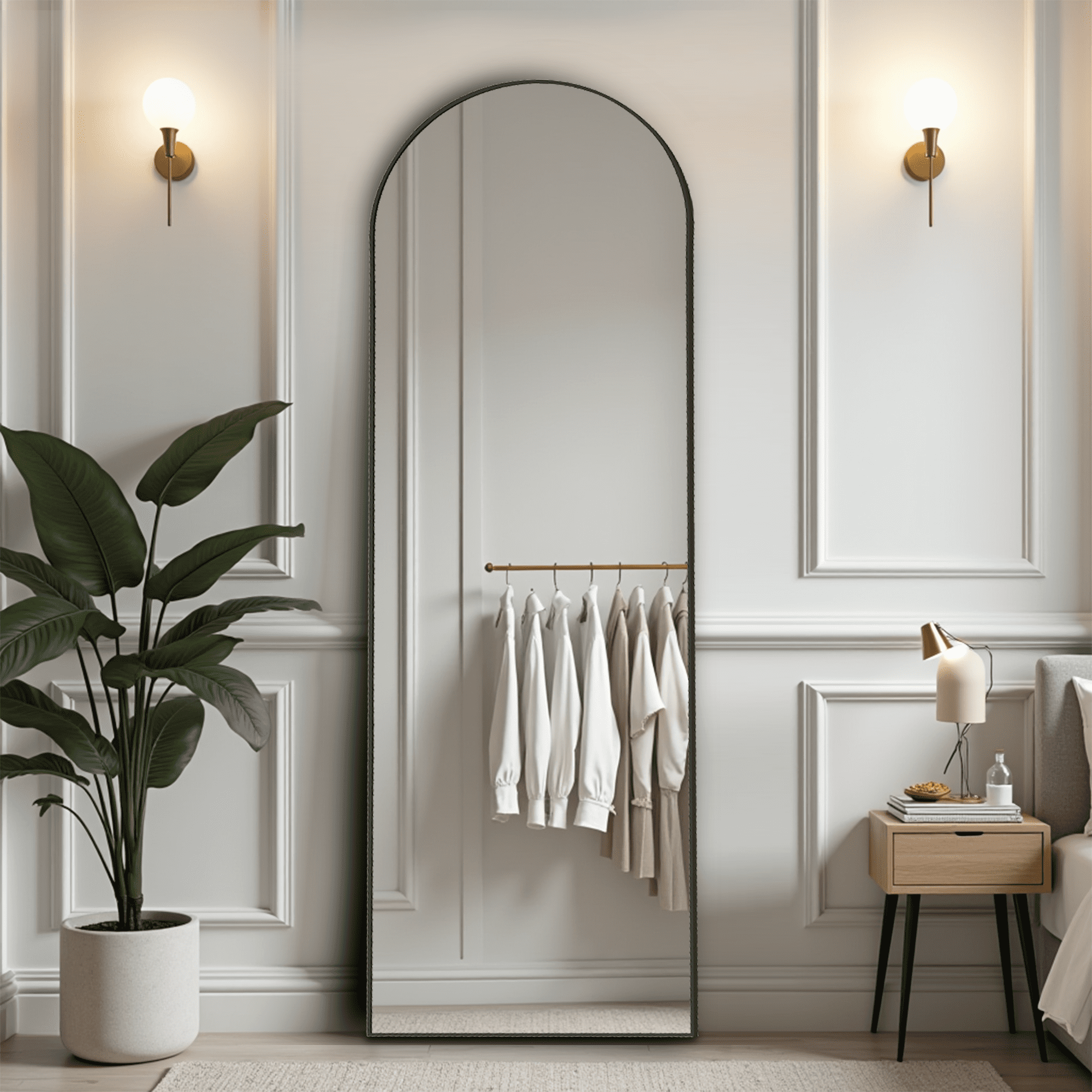 ALUMINUM ALLOY FRAME: The wall mirror full length is surrounded by anti-rust and colorfast aluminum alloy. The very thin frame (only 0.23″ wide on the front), is durable and has a shiny appearance. Wire drawing treat, more stylish and textured. UPGRADED NANO GLASS: Our long mirror is made of durable 3 mm high-definition nano glass. Upgrade explosion-proof nano glass with pure silver layer is more high definition and not easy to break. Even if it is accidentally damaged by an external force, the broken pieces of the mirror will not splash in all directions. ALL-MATCH: No Assembly Required. The floor length mirror can stand anywhere with the standing holder. You also can lean it against a wall, or you can hang it horizontally or vertically on the wall for space-saving. It is suitable for a bedroom, living room, cloakroom, home gym, corridor, clothing shop, etc.