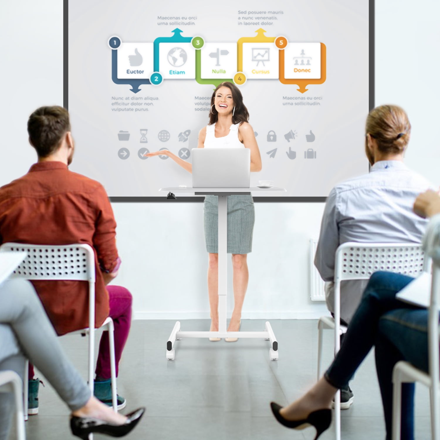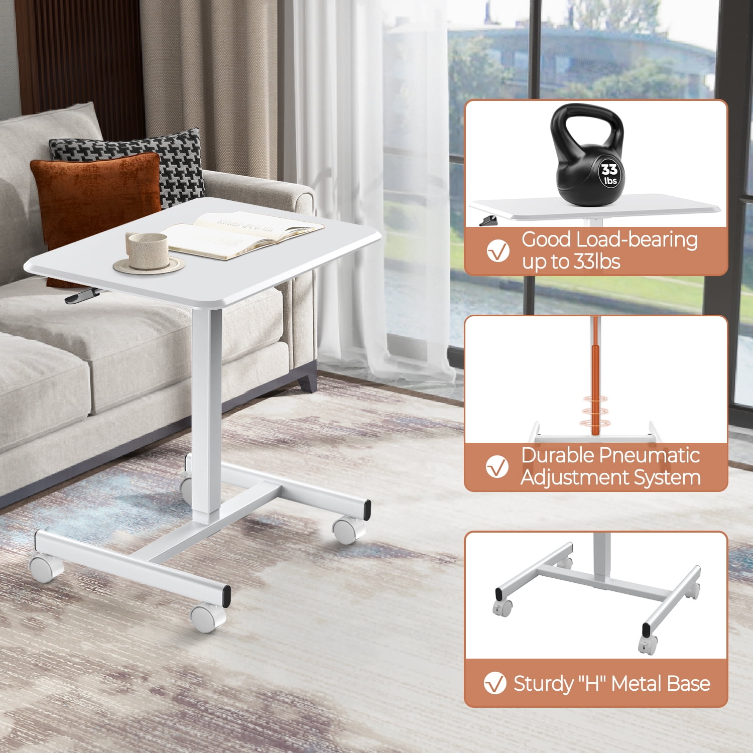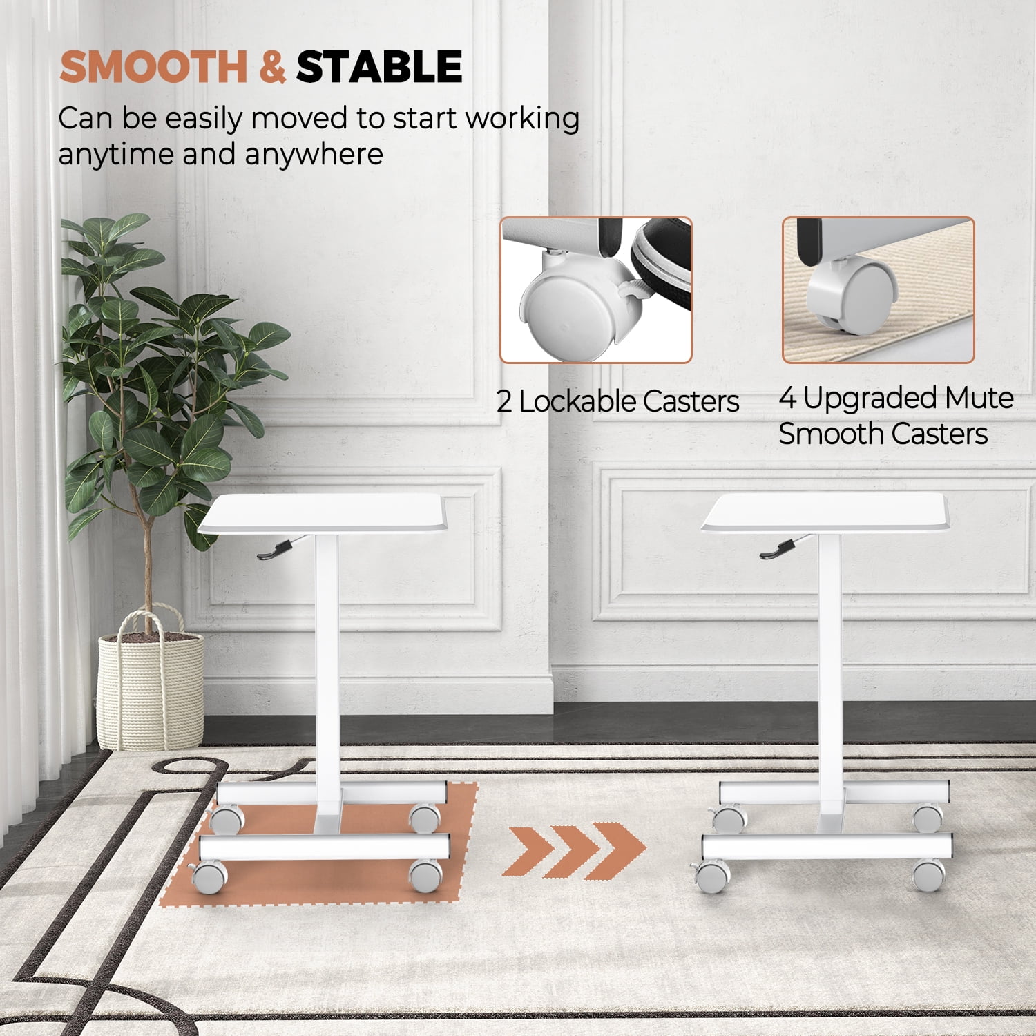 Dovelina Mobile Laptop Stand Rolling Desk with Adjustable Height for Home, Office, White