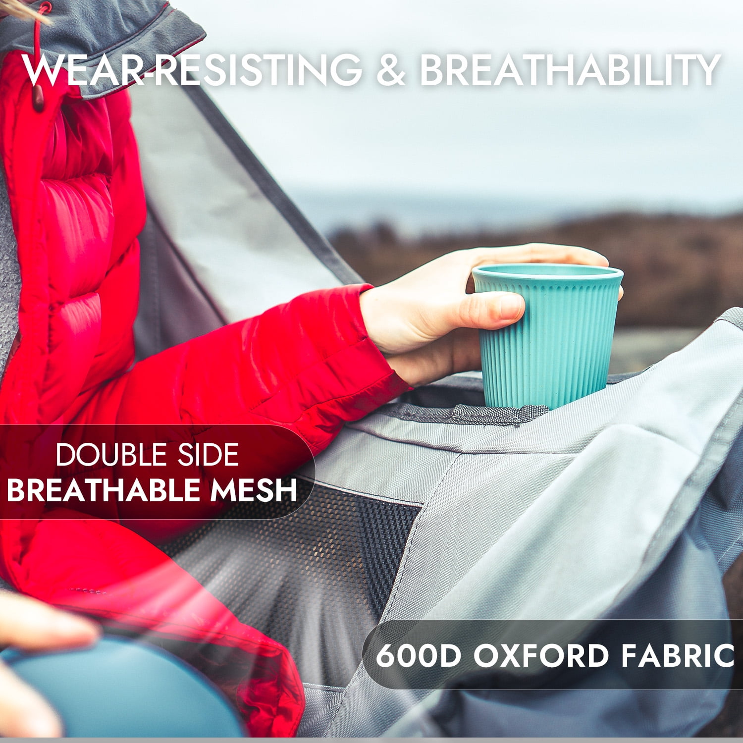 Super Comfortable: The double folding chair features a 40-inch wide seat and 19-inch high backrest, providing ample shoulder support for complete relaxation. Adjustable armrests allow you to find your preferred position while the overall thickened and padded design ensures a comfortable experience similar to sitting on a sofa. Compact, Portable And Easy To Fold UP: This camp chair for adults can be easily folded into a bundle and placed in the carry bag in just a few seconds, making it highly portable and compact. With a folded size of 37″x 11″, it saves space and is convenient to carry using the widened shoulder strap on the frame. Weighing only 12.8 lbs, this chair is ideal for picnics, camping, fishing, beach trips, sports events, and more. Intimate Camping Loveseat: The double seat camping chair is perfect for snuggling up with your loved ones, enjoying close conversations, and taking in the stunning views of the waves and sunsets together. A warm campfire adds to the cozy atmosphere and brings your hearts even closer. Adaptable Cup Holders And More: The double seat camping chair comes with two sets of specially designed thermos cup holders to accommodate both large sports water bottles and smaller cans and glass bottles. The mesh design on the side enhances breathability, and the back features a mesh pocket to increase storage space. Premium Quality&Love Lasting: With a thick-coated heavy-duty metal frame, the double seat camping chair can hold up to 440 lbs, making it a great option for heavy individuals. The 600D seat fabric is strong and durable, suitable for indoor and outdoor use, ensuring that your camping chair will last for years to come.