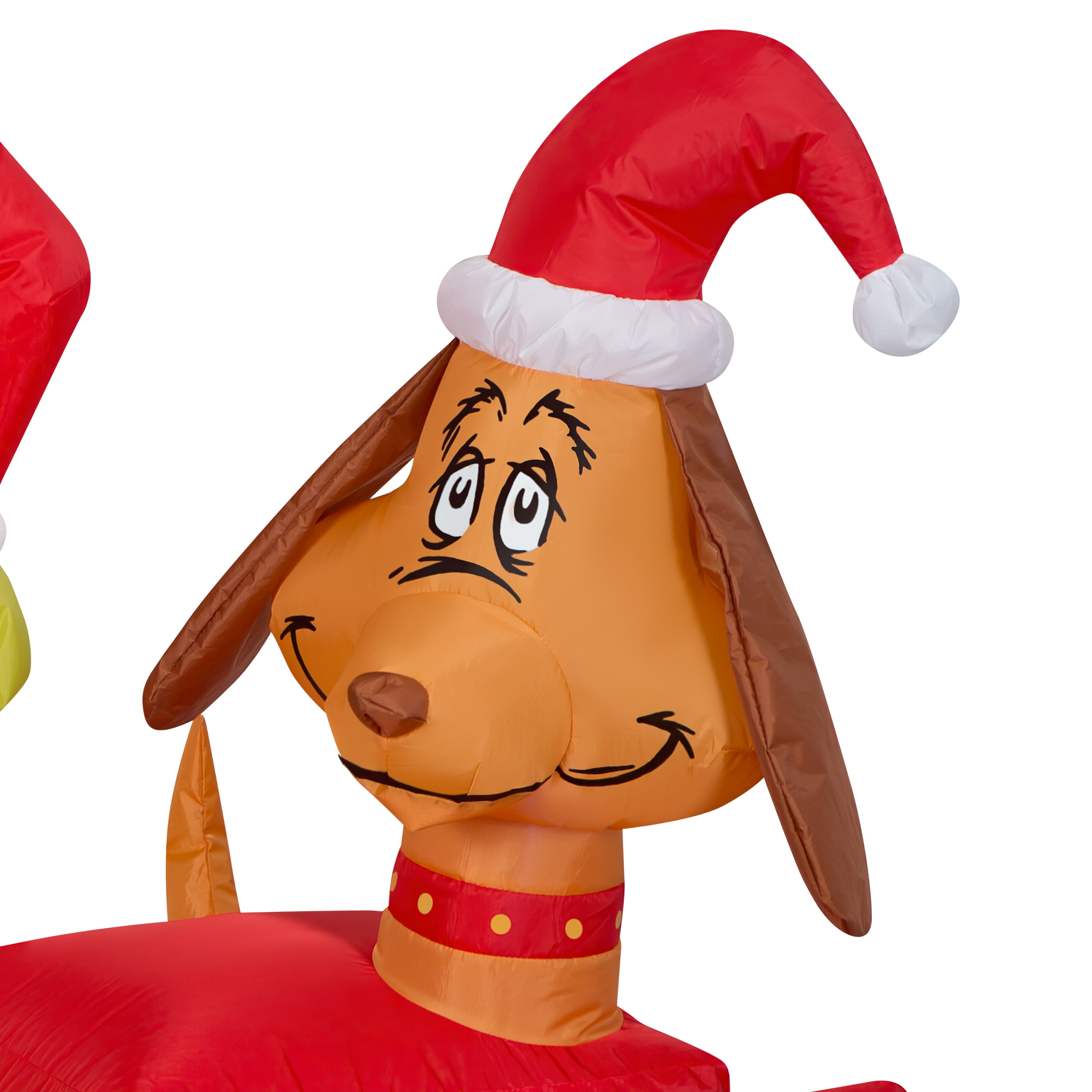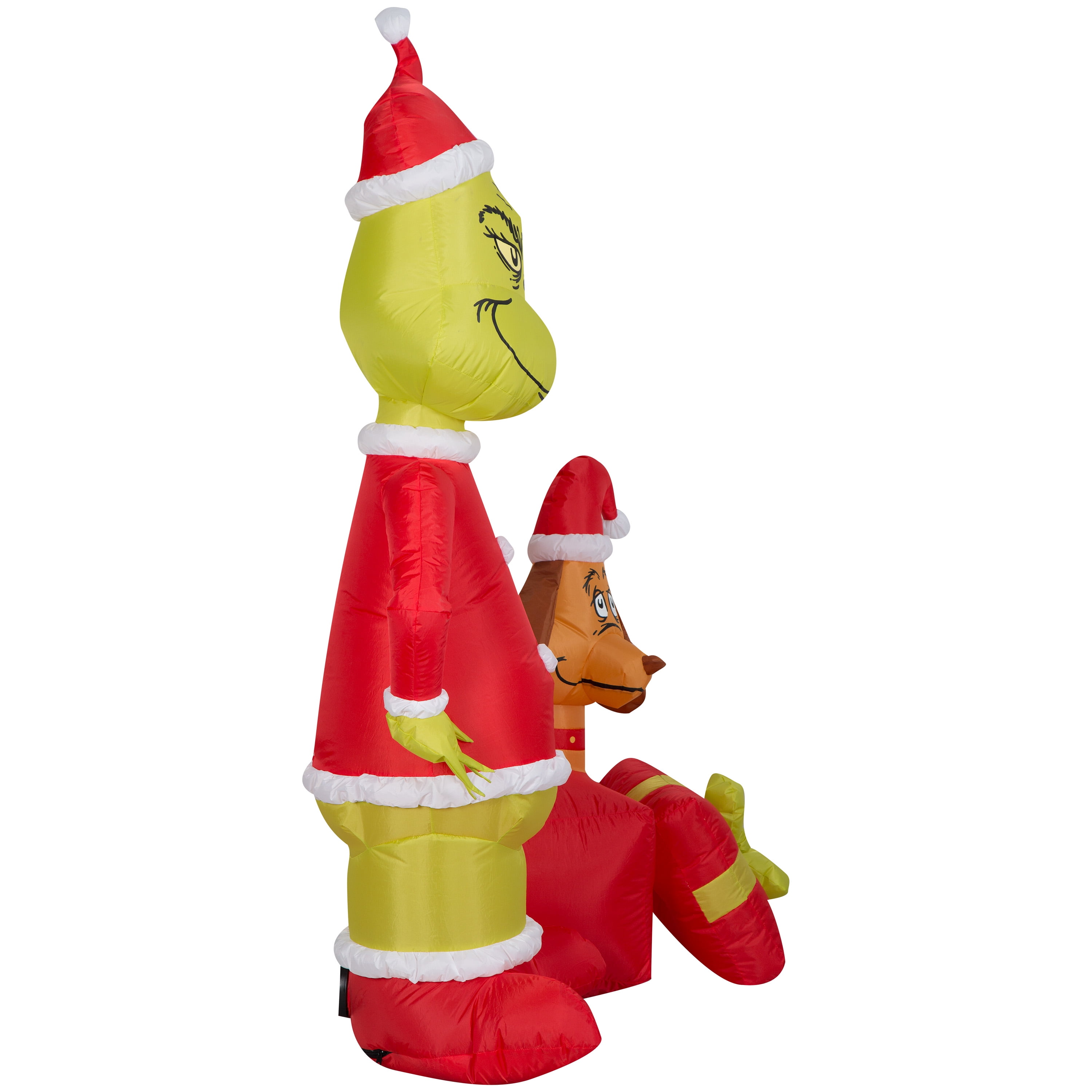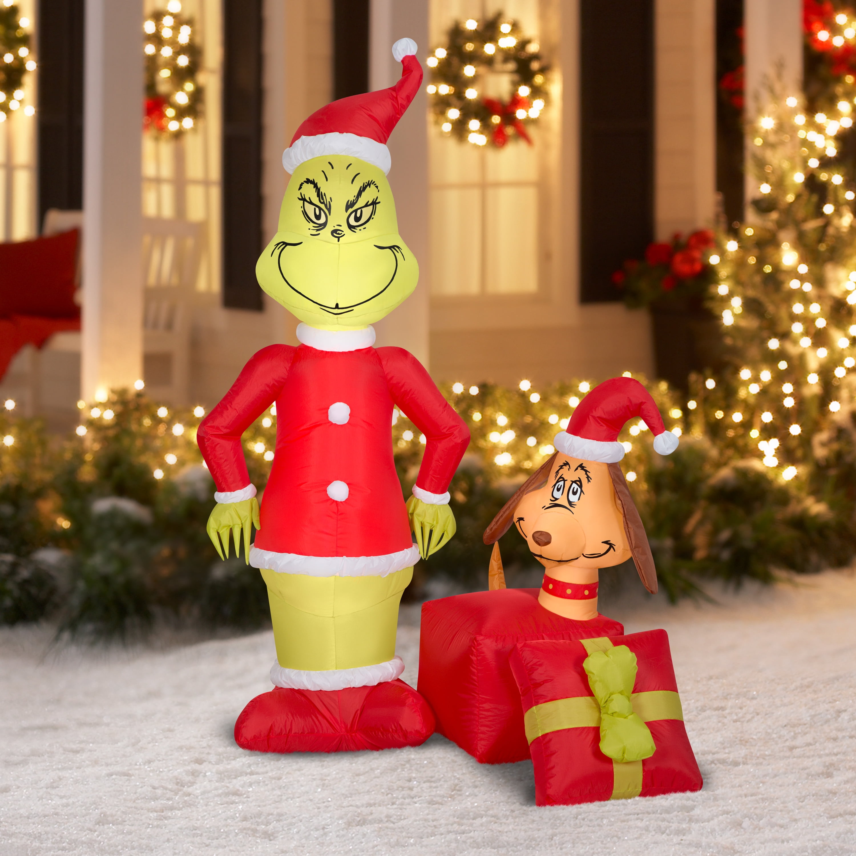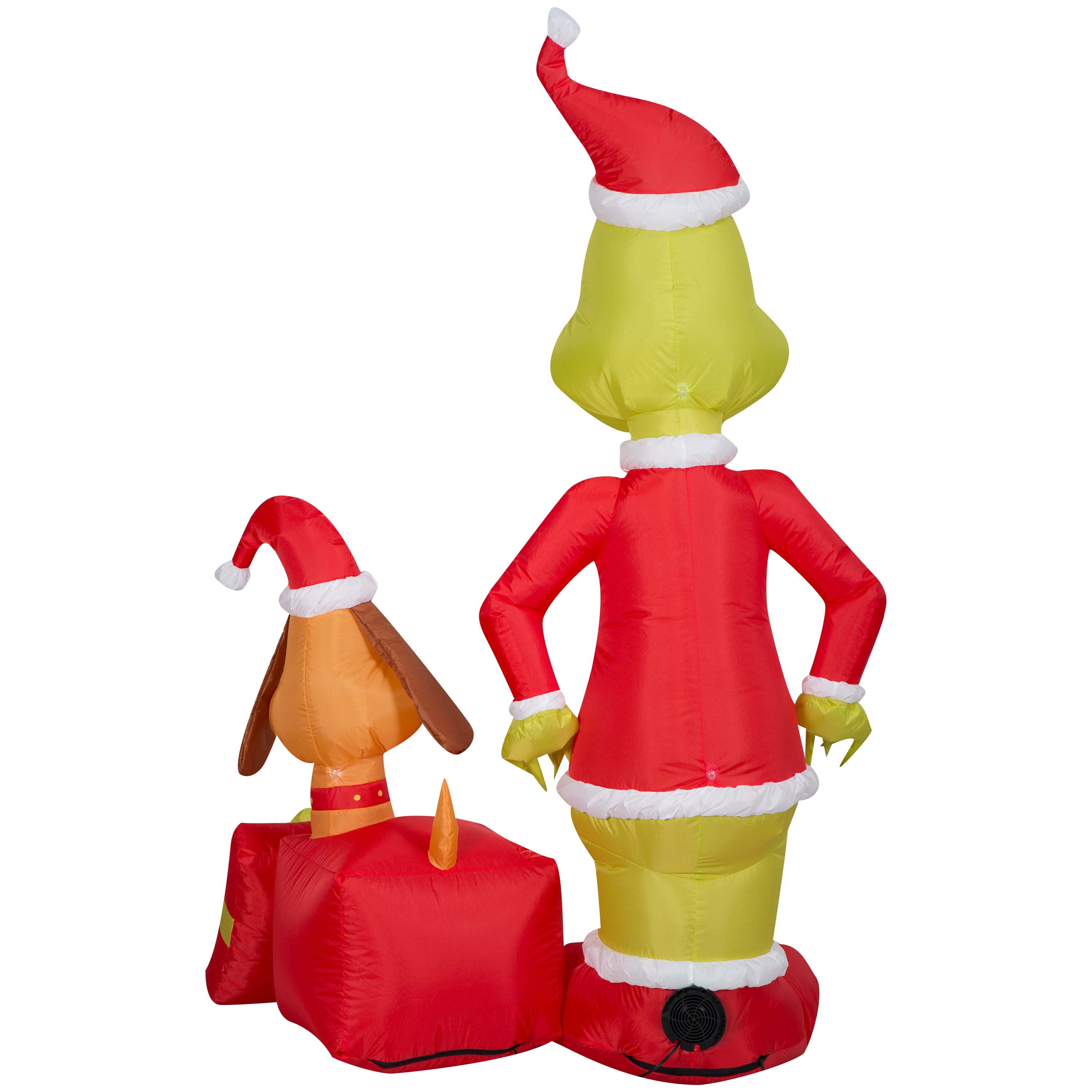 Delight guests and passersby with an Airblown® Inflatable Grinch with Max Popping Out of a Present! This charming inflatable makes a delightful addition to your Christmas decorations. Setup is super simple. Just plug it in, stake it down and watch the magic unfold. Display this animated outdoor decoration as a standalone or combine it with other Airblown® Inflatables to create a custom scene. It’s also perfect as an indoor Christmas decoration for parties and celebrations. Includes everything needed for easy setup.