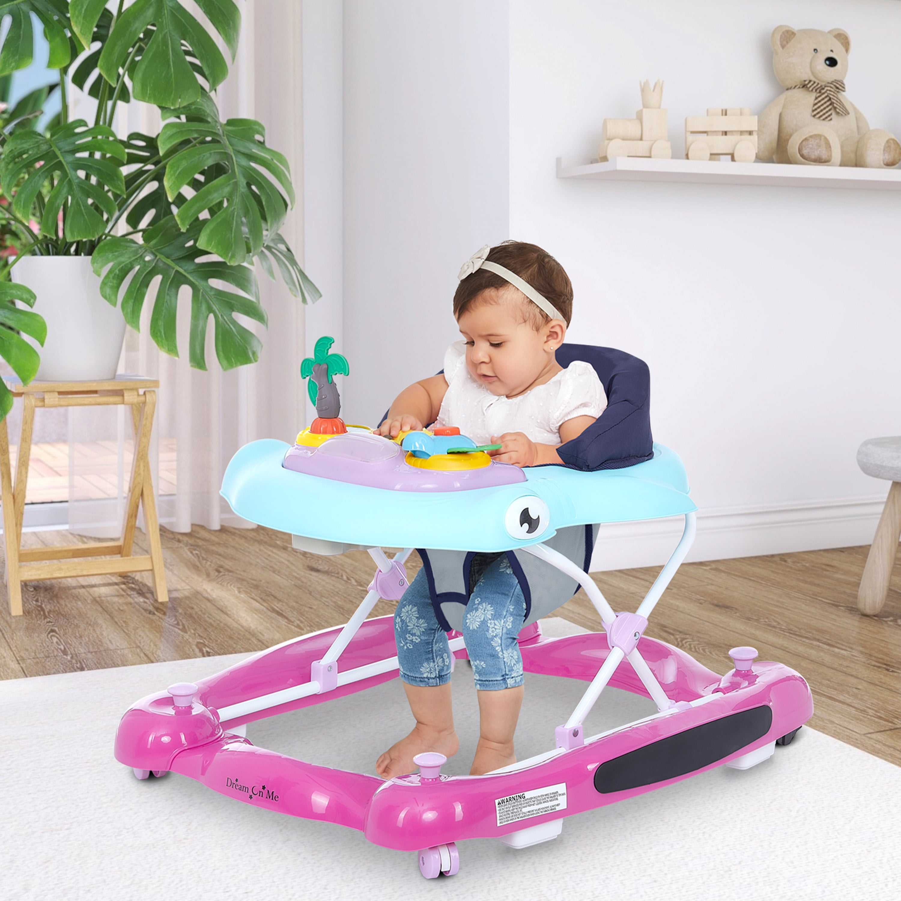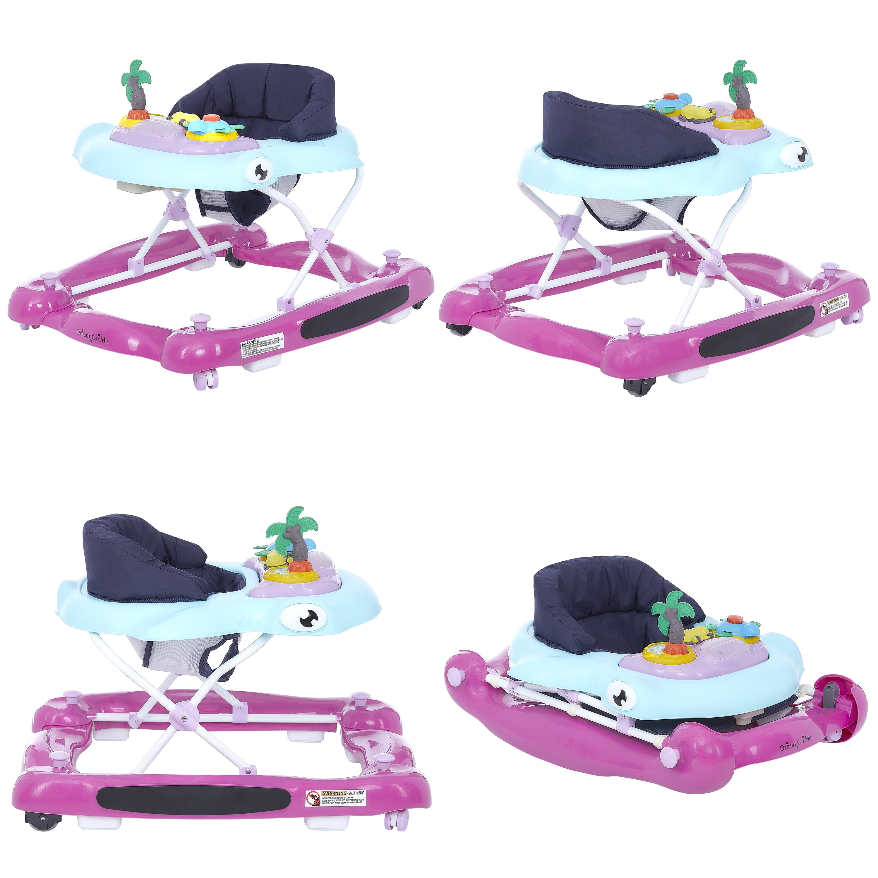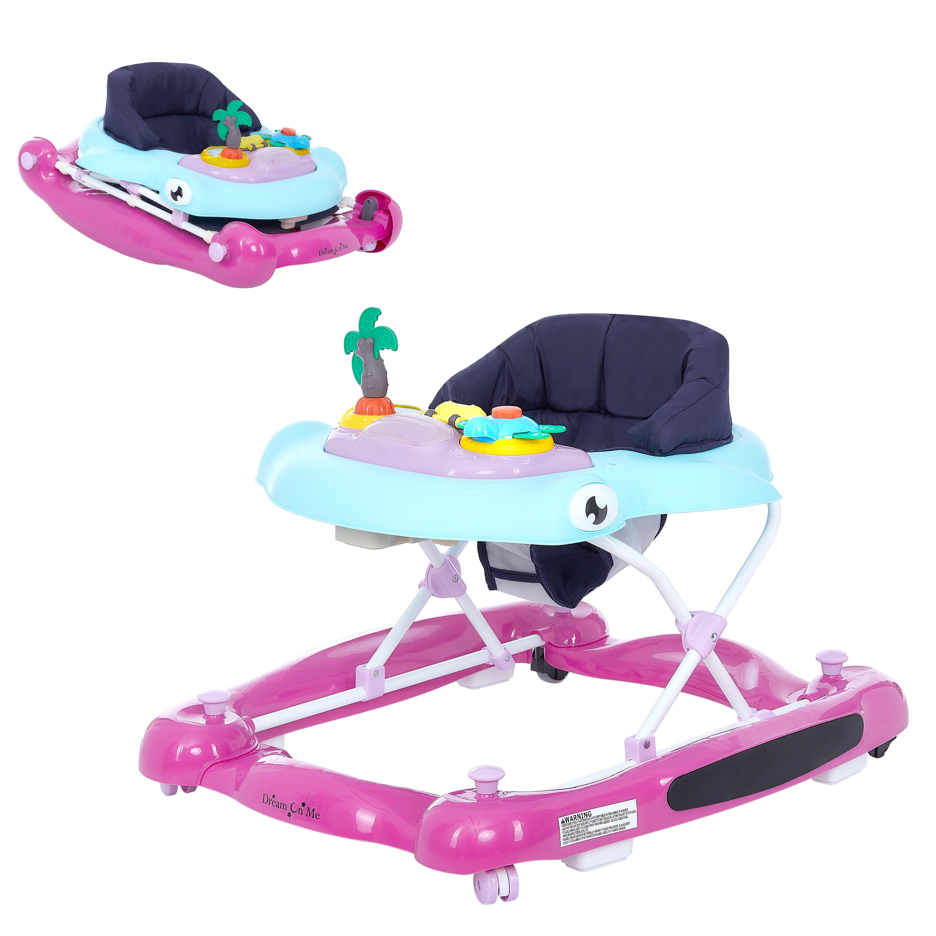 Dream on Me 2-in-1 Aloha Fun Activity Baby Walker in Purple Orchid, Easy to Fold and Store