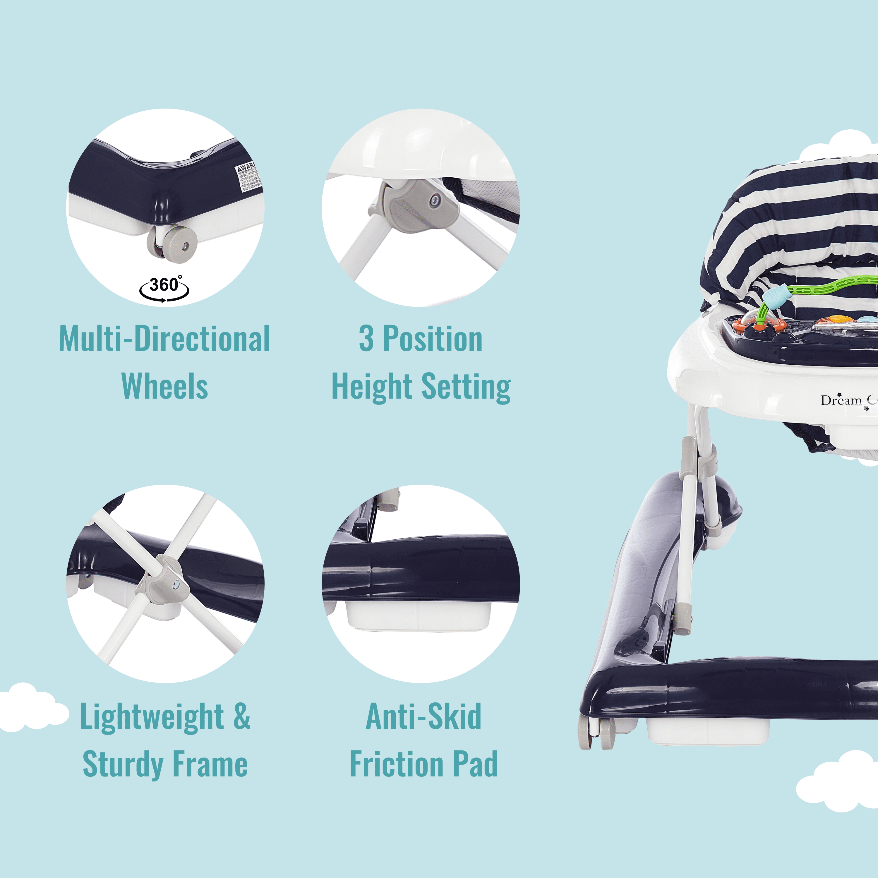 Dream on Me 2-in-1 Ava Baby Walker, Easy Convertible Baby Walker, Folds Compactly, Navy