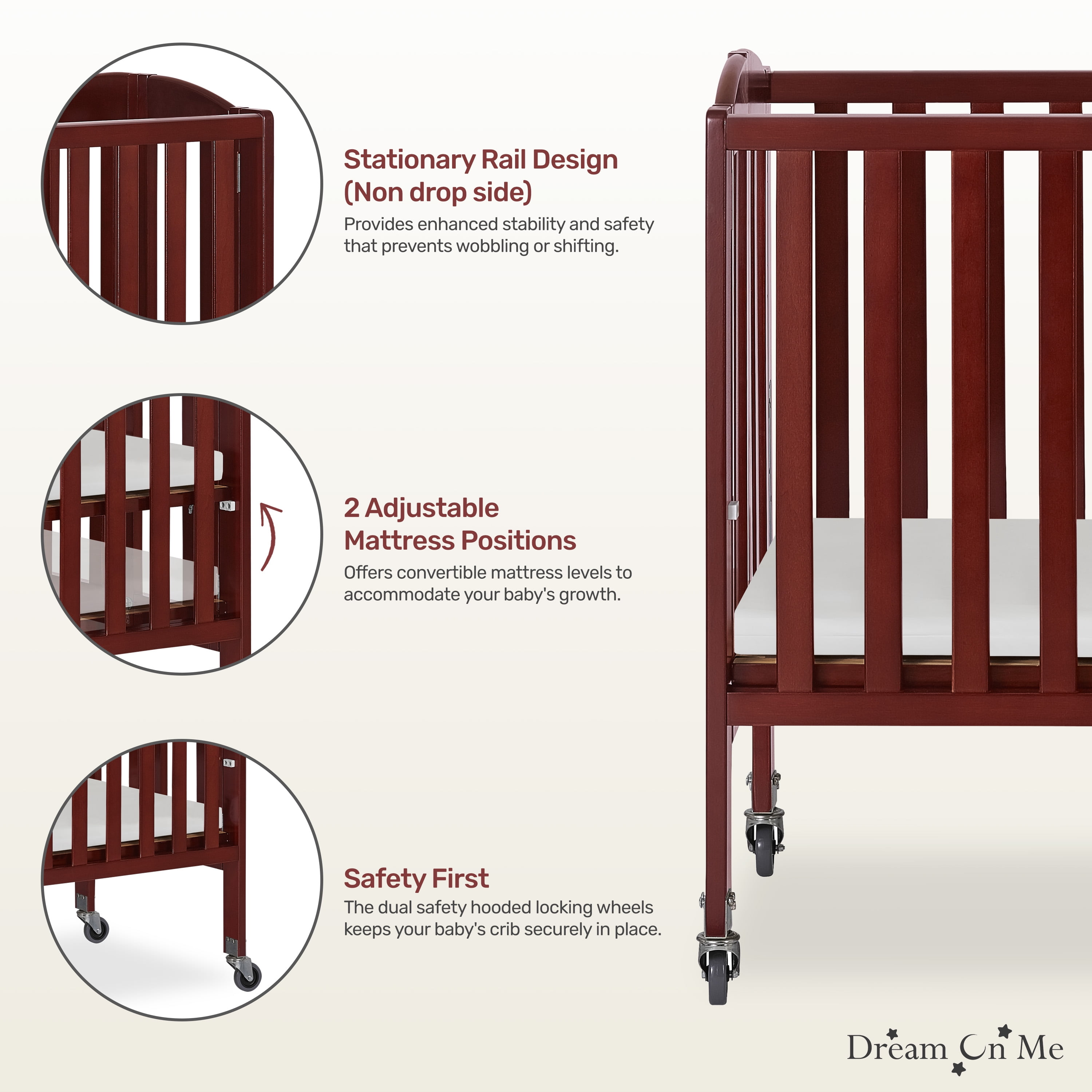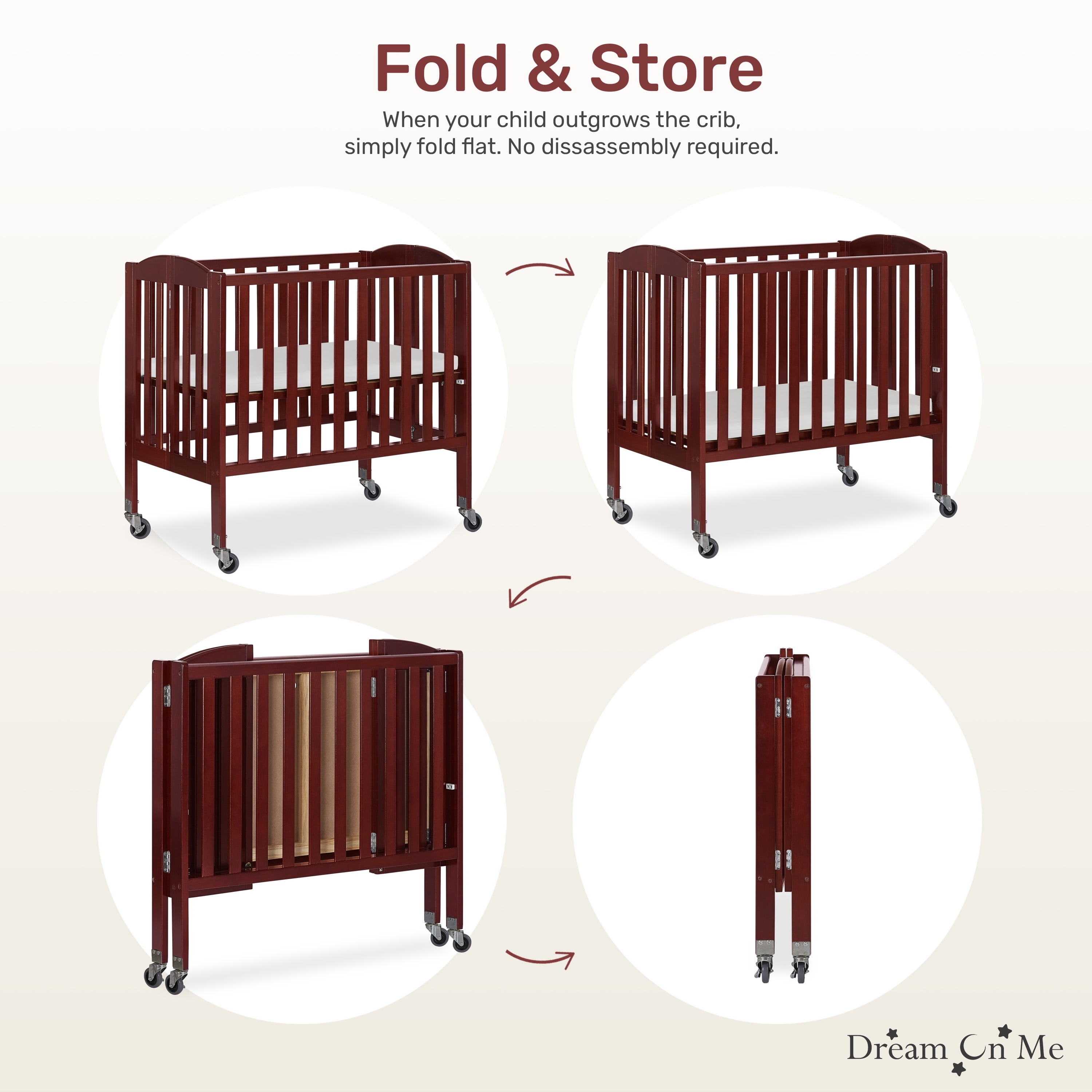 Dream On Me 2-in-1 Birch Folding Portable Crib Cherry Birch