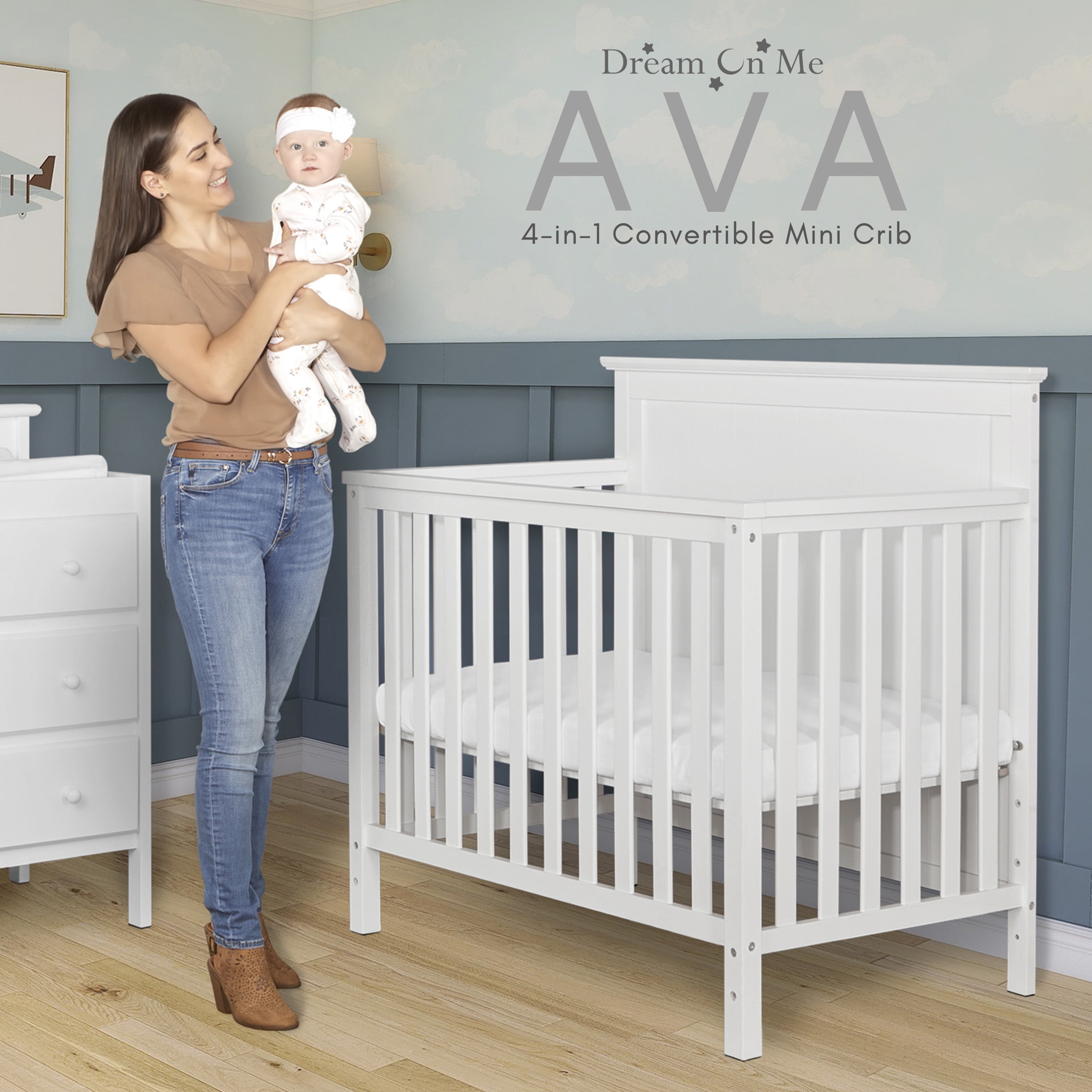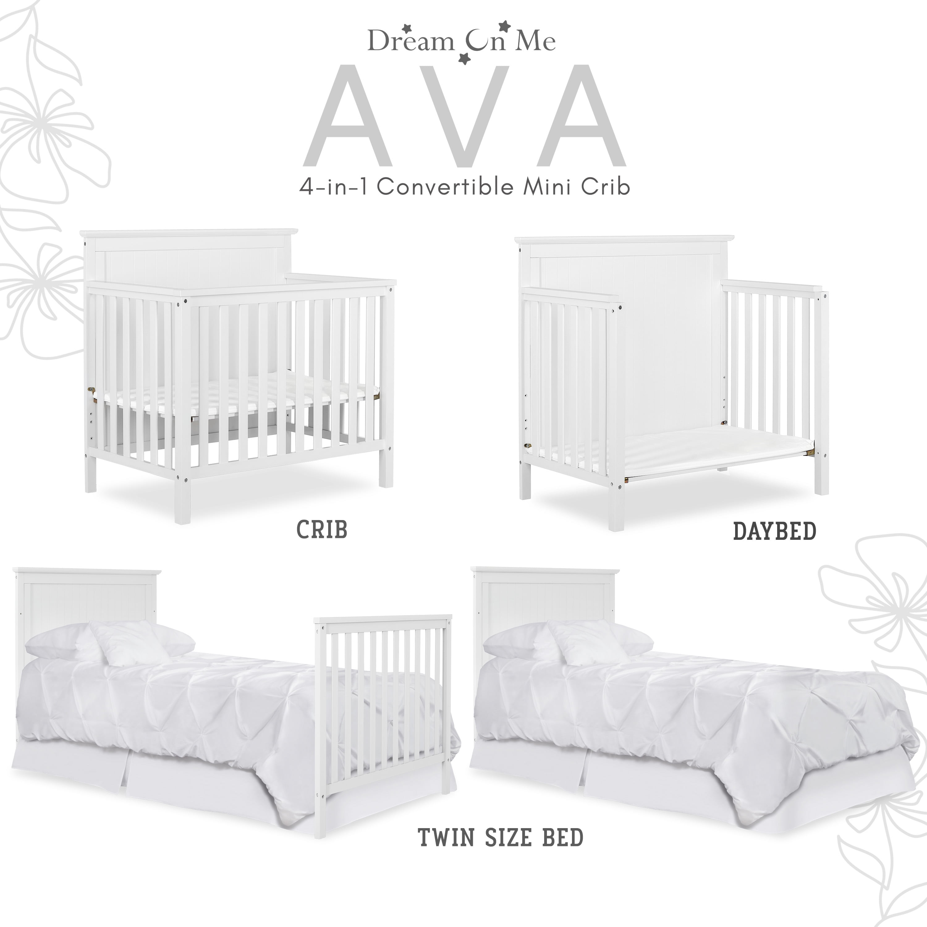 Dream On Me Ava 4-in-1 Convertible Mini Crib, White