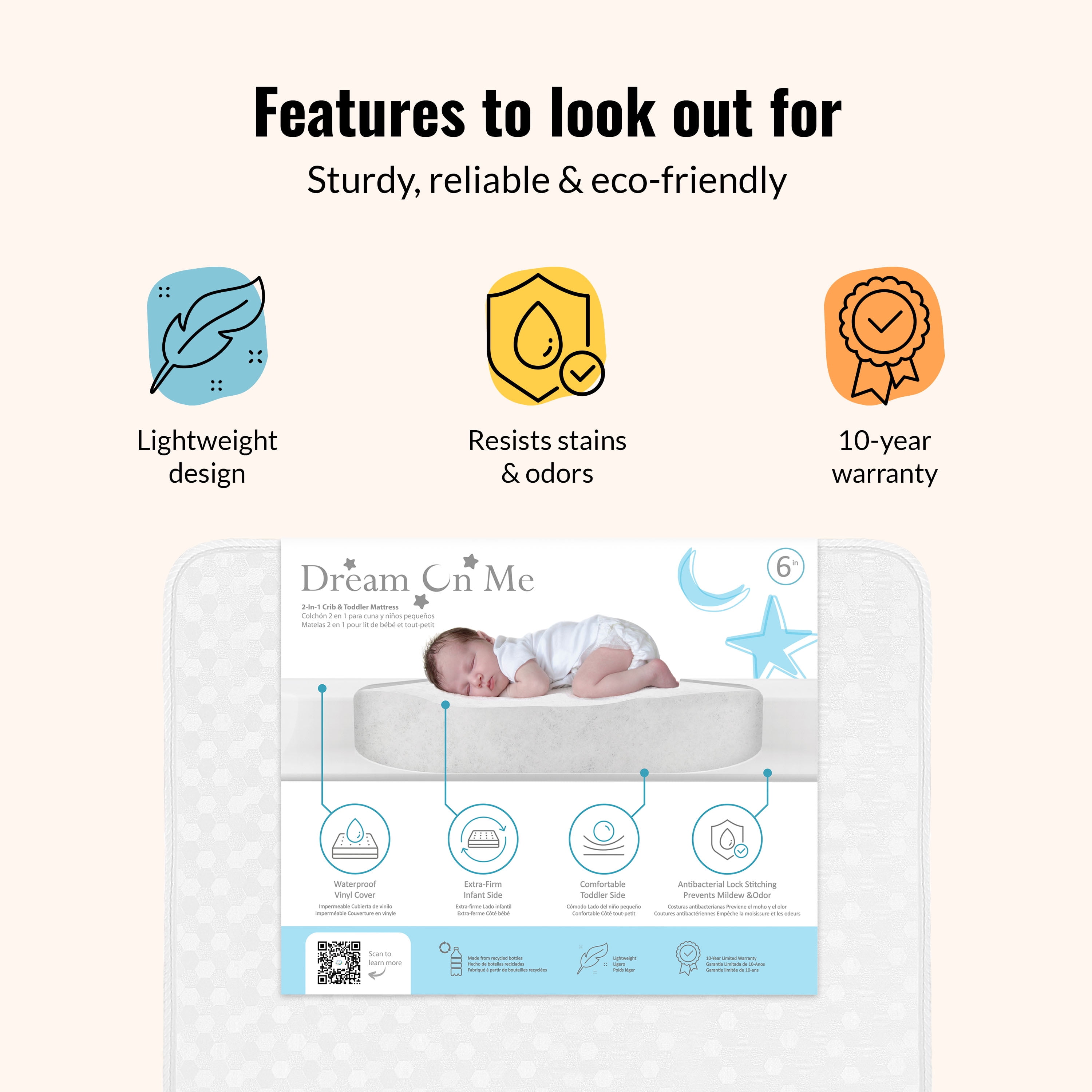 Breathable Mattress cover Promotes airflow Laboratory tested for air/water vapor permeability 2 Hypo-allergenic layers offer cushioned comfort for infants and toddler Reinforced- waterproof cover and binding resist liquids and stains Wipe clean with mild soap and warm water Safety Advice: Please ensure Mattress covers or fitted sheets are not too tight or loose over a crib mattress to practice safe sleeping. Passes all Flammability tests (16 CFR 1632 /1633) and also pass phthalate, lead, and toxicity tests GREENGUARD Gold Certified for a healthy indoor environment for your baby JPMA certified to meet or exceed all safety standards set by the CPSC and ASTM Reversible design allows mothers to choose Breathable white side or Printed