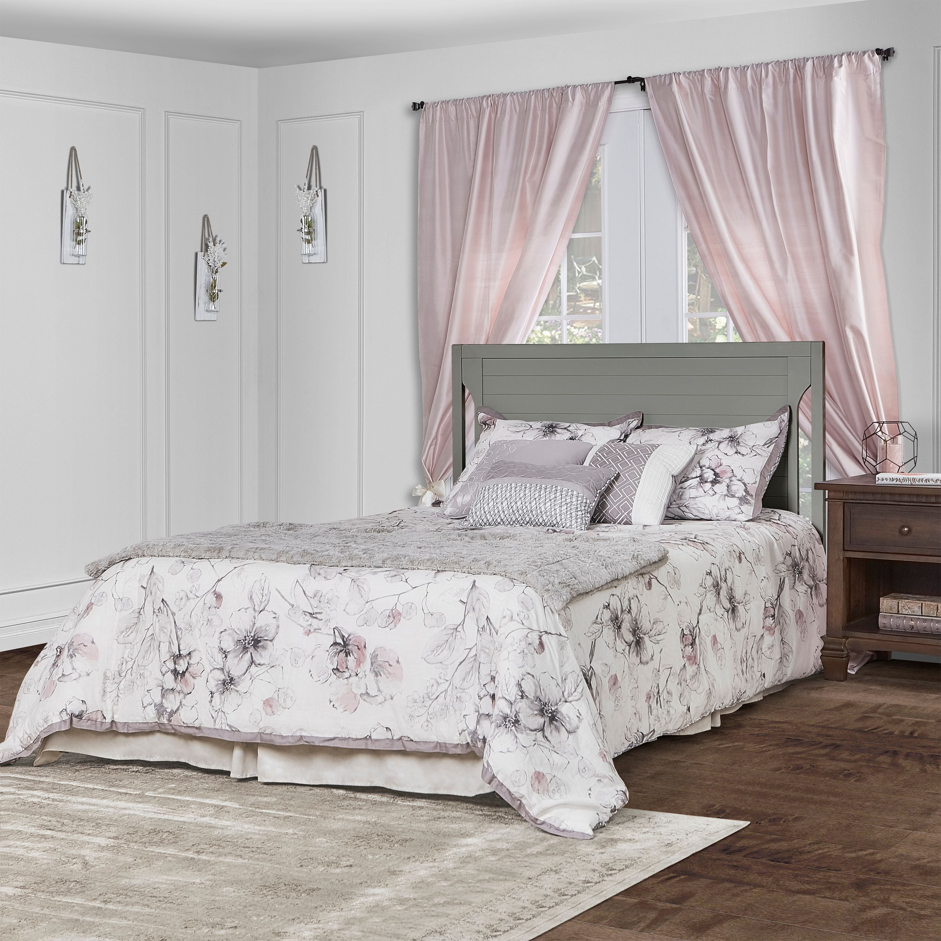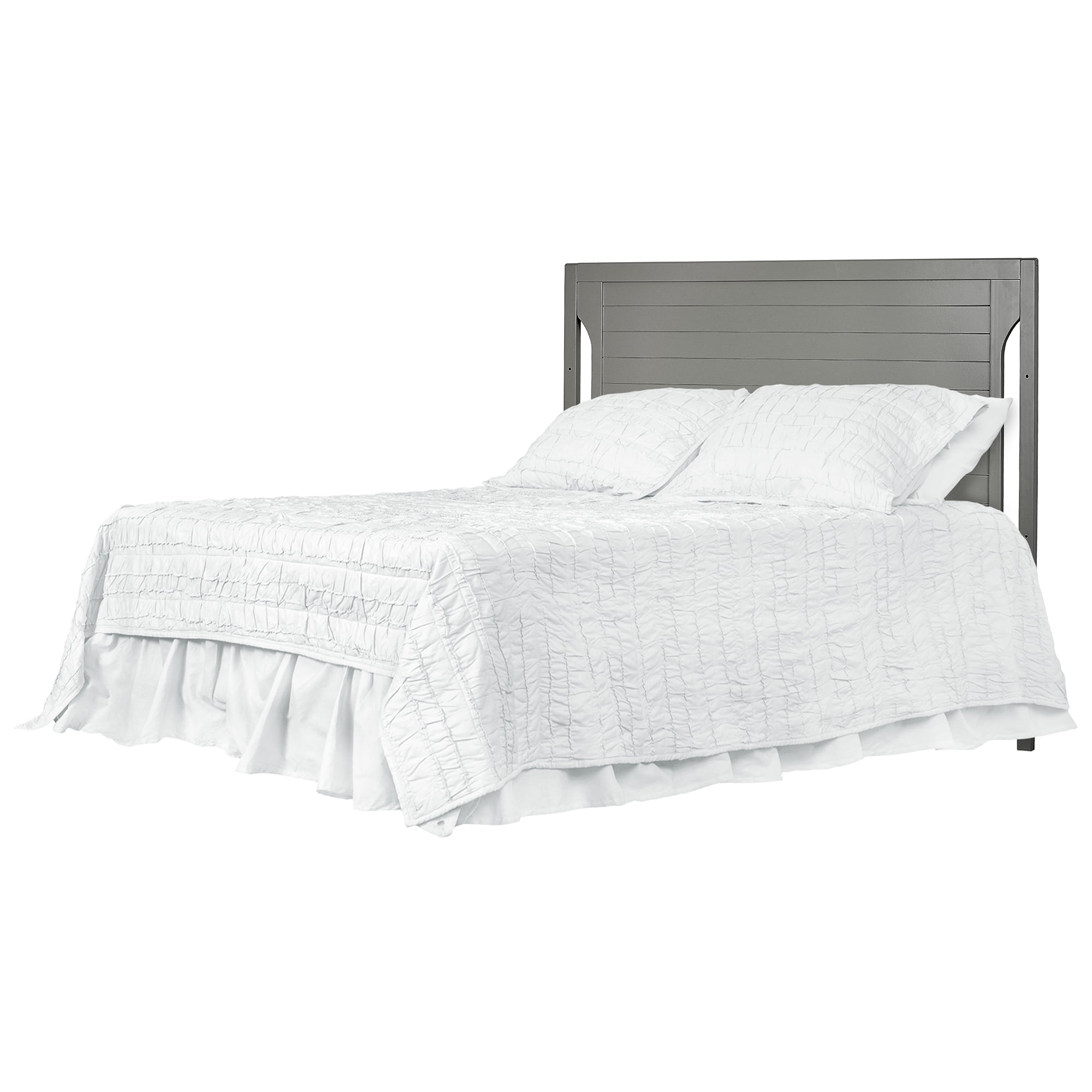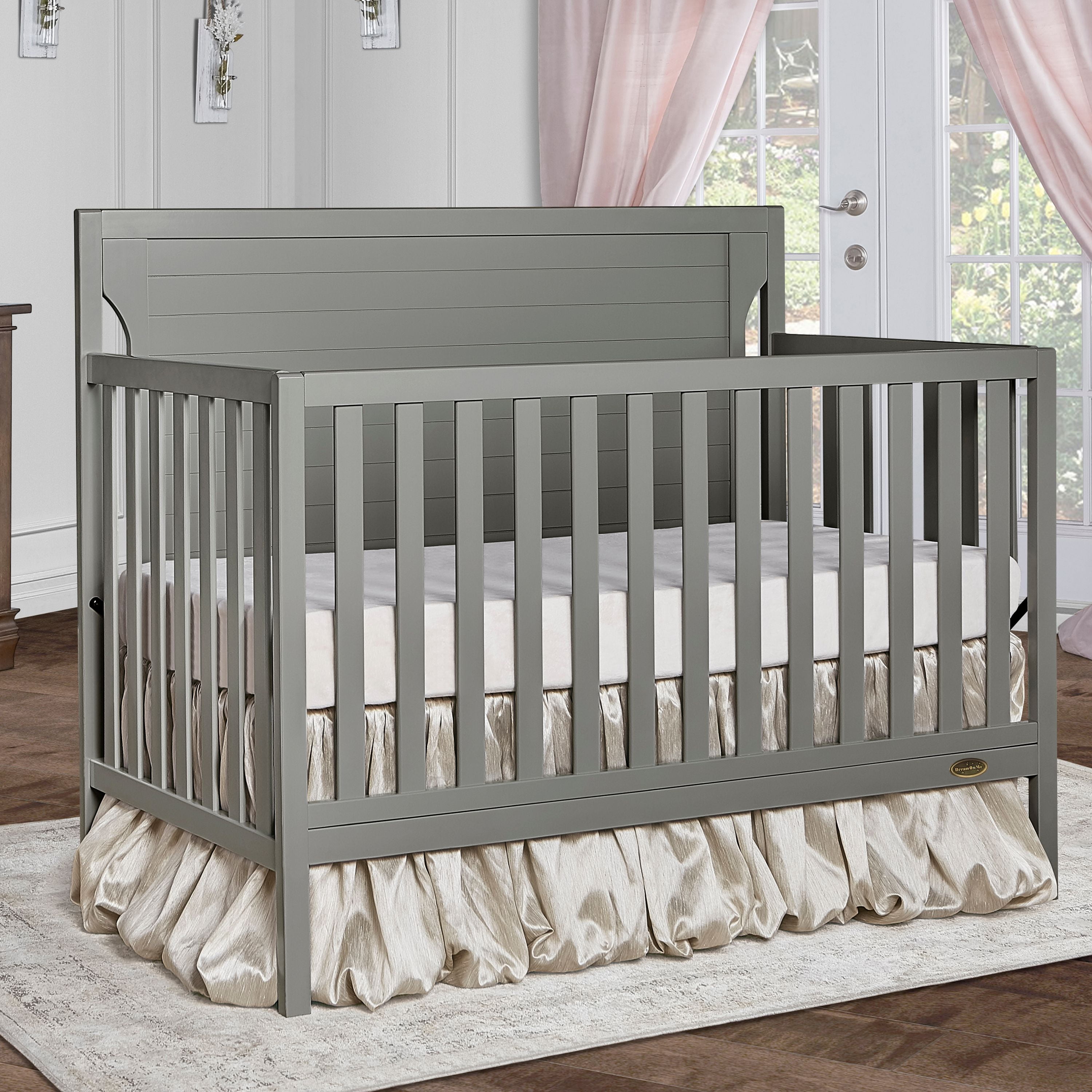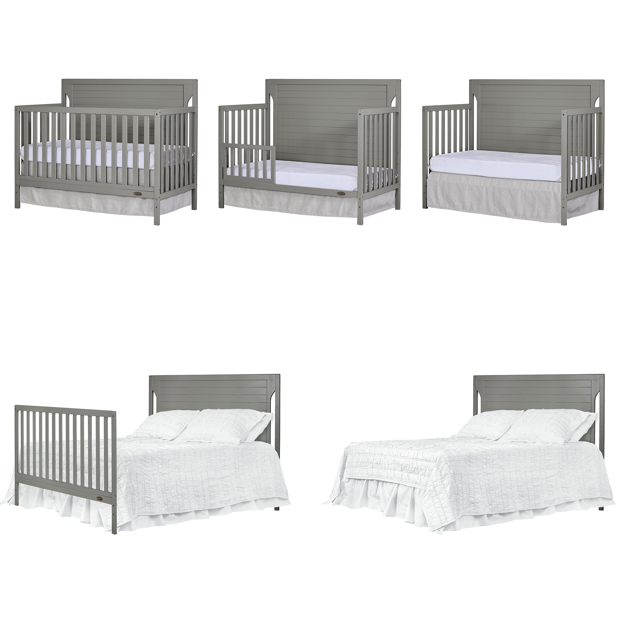 Dimensions: 55L x 30W x 44.5H in Crib converts to toddler bed with conversion set (sold separately) Converts to day bed or full bed (bed frame sold separately) Wood construction with adjustable metal mattress platform Meets all applicable ASTM, JPMA, and CPSC standards Choose from available color options Assembly required