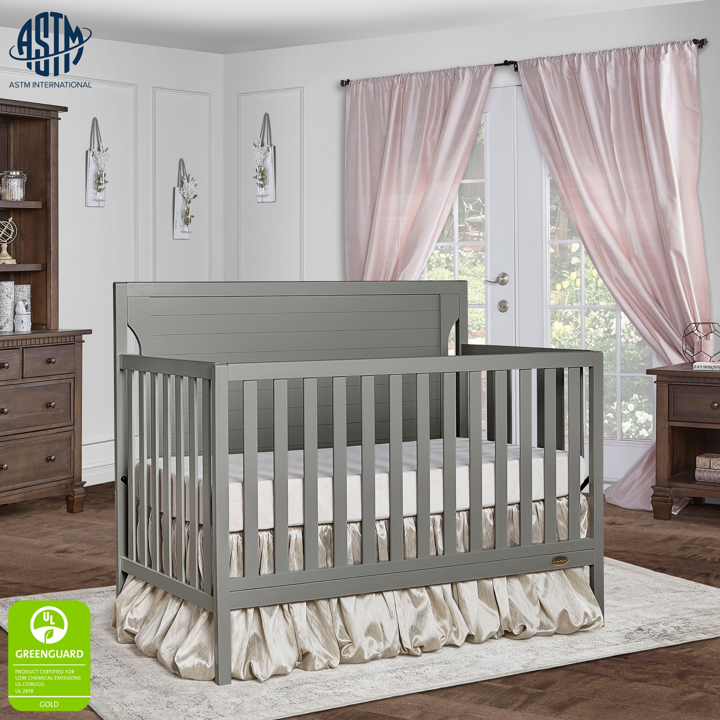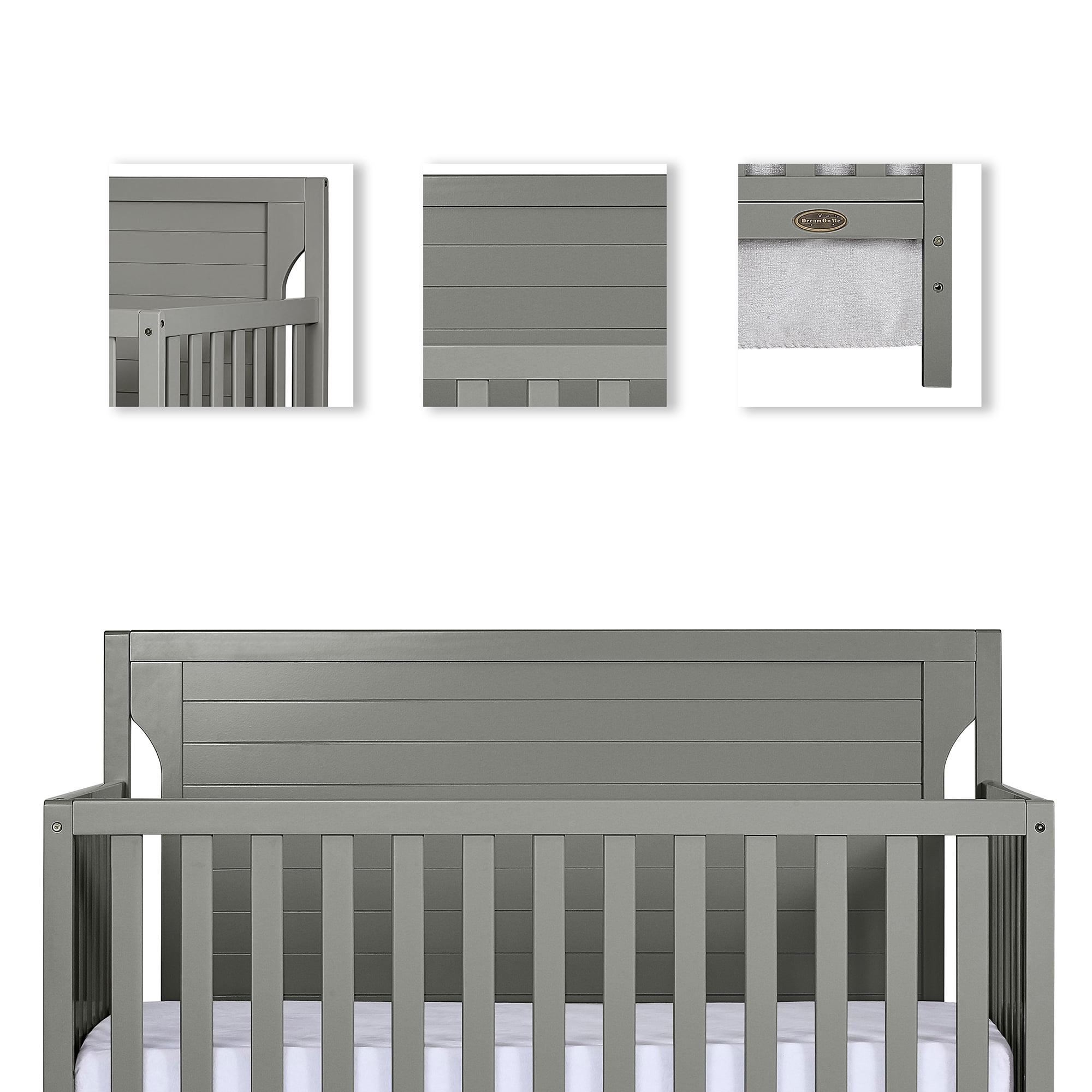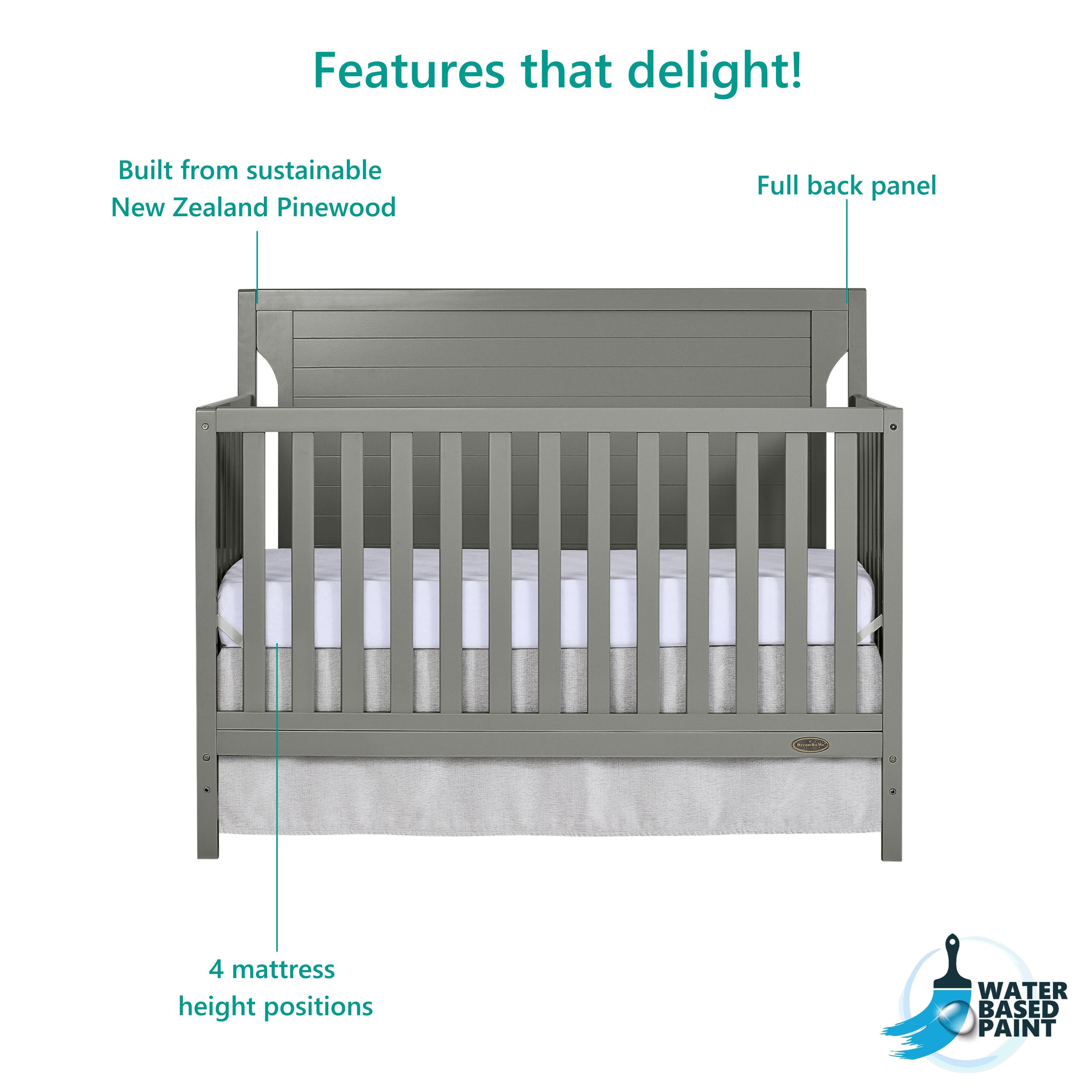 Dream On Me Cape cod crib provides a slender modish trendy style which enhance any décor from your baby nursery to your growing child’s bedroom. This crib offers a full back panel with detail molding and routing lines which provides a safe and stylish environment. The crib grows with your child by converting into a charming toddler bed with our conversion kit ( sold separately ), daybed and the back panel converts to a full-size headboard with the simple addition of a bed frame ( sold separately); mattress platform adjusts to four different heights depending on the age of your baby. All Dream On Me cribs goes through rigorous testing to ensure it meets all applicable ASTM, JPMA and CPSC standards.