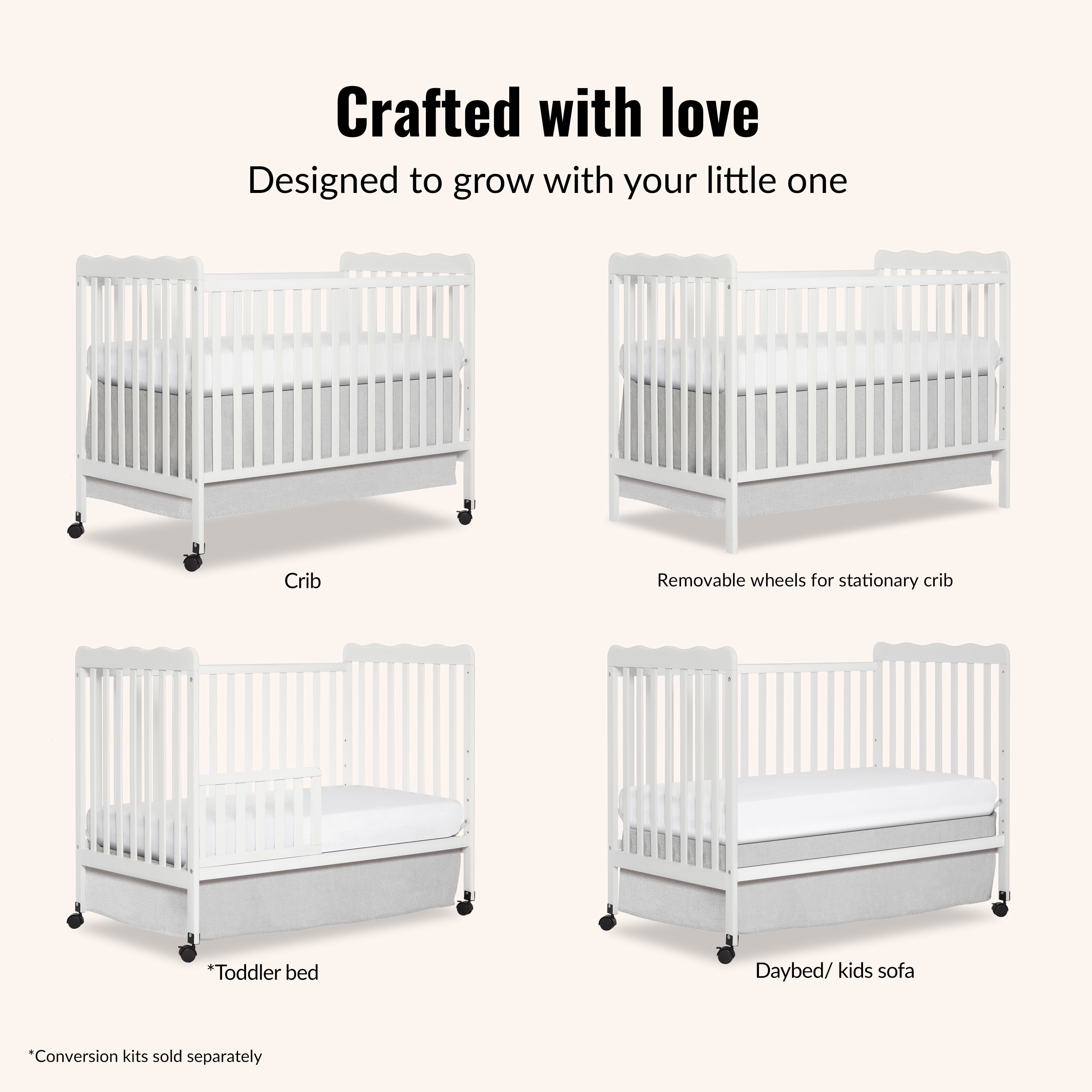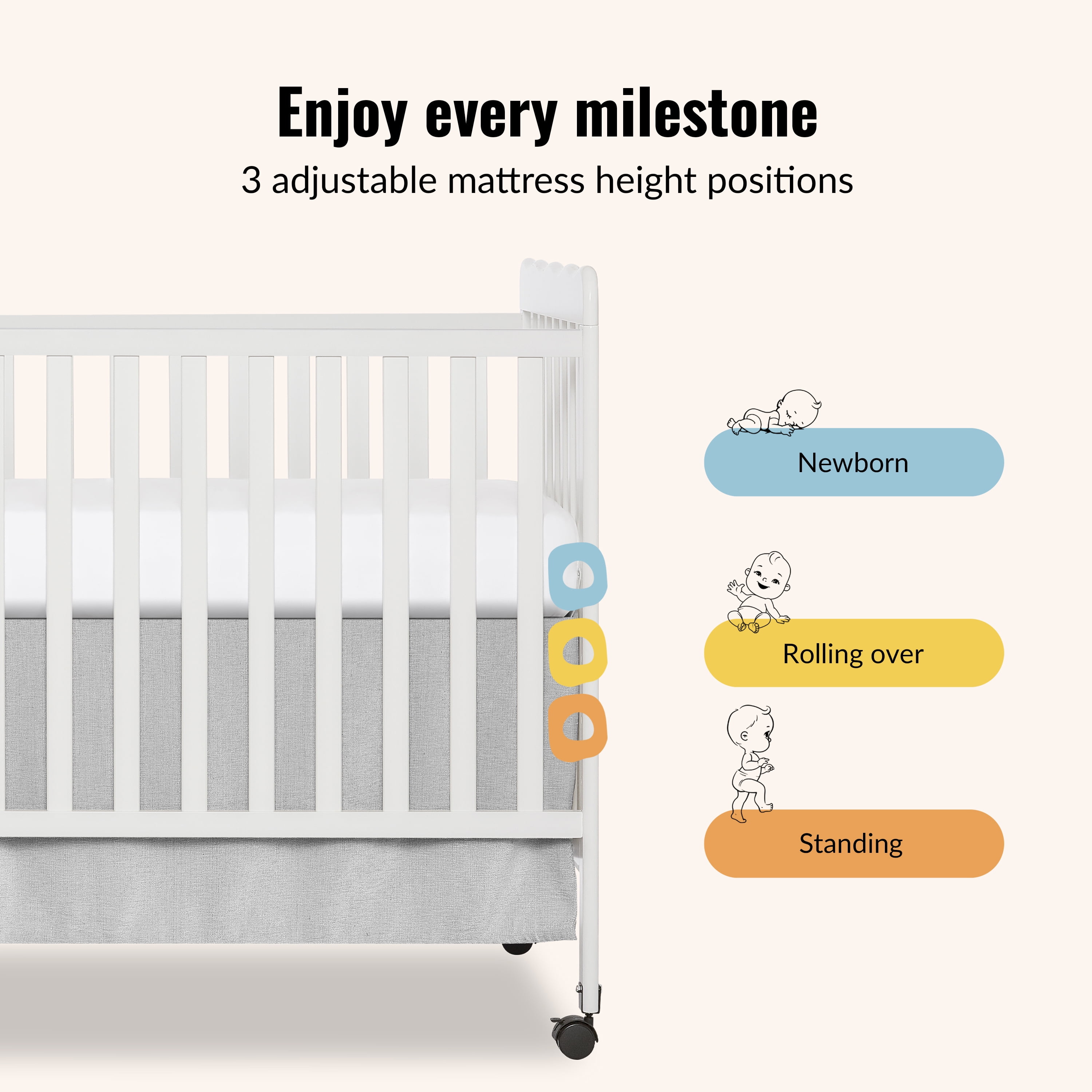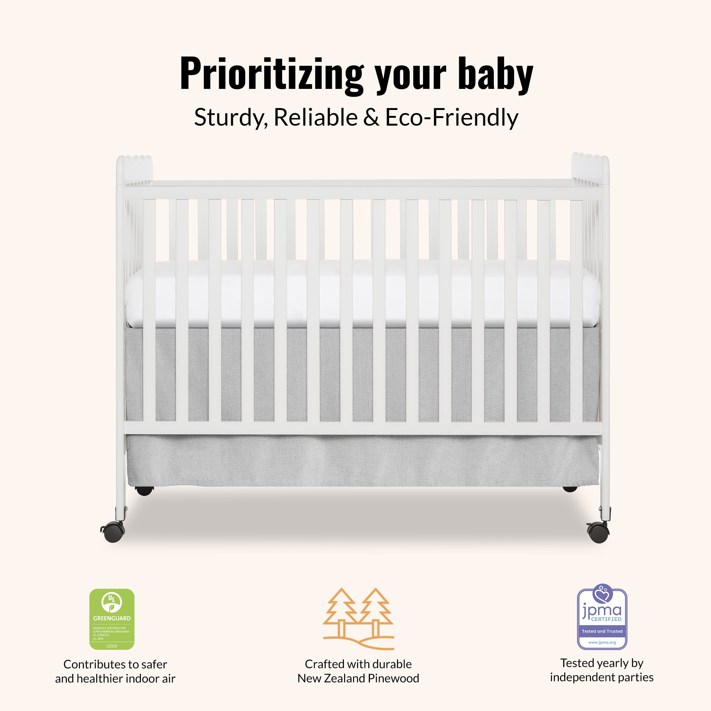 Dream On Me Carson Classic 3-in-1 Portable Crib in White, Removable Wheels, Converts from Baby Crib to Toddler Bed, Day Bed and Kids Sofa, Three Adjustable Mattress Height Positions