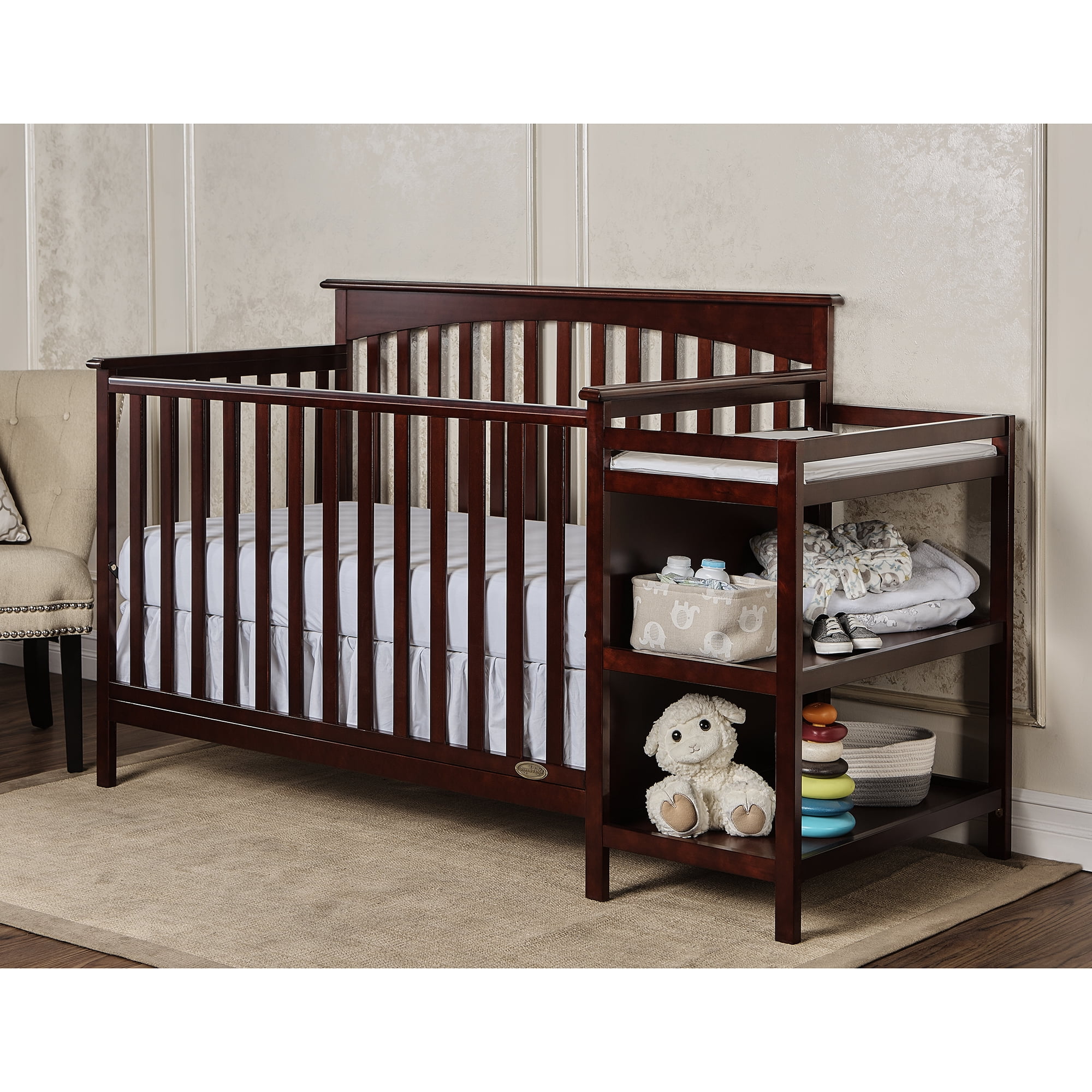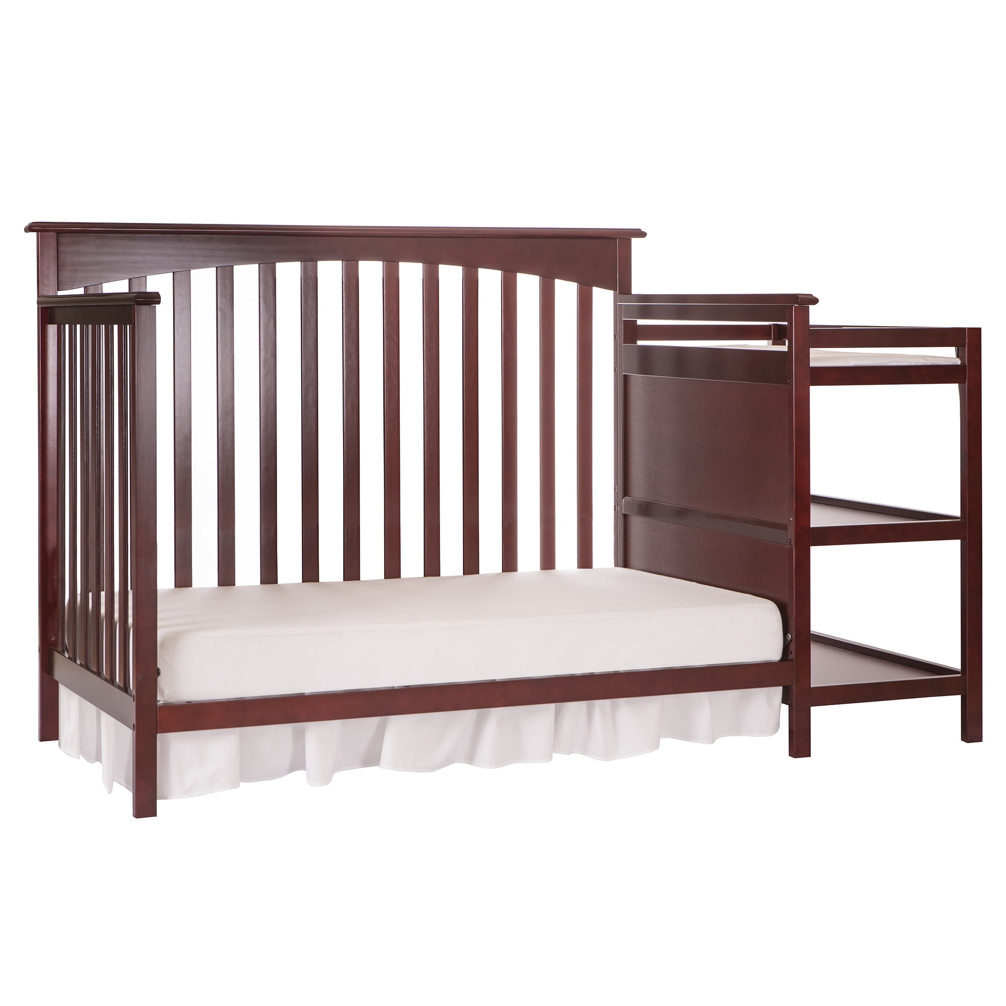 Changing table tested to the ASTM Toddler guardrail (Style# 692) sold separately 2 generous storage shelves for baby’s essentials 4-position mattress support system Available in White, Black, Espresso, Cherry, or Gray finishes Changing table is removable when bed is converted Accommodates a Dream On Me Standard Mattress (sold separately)