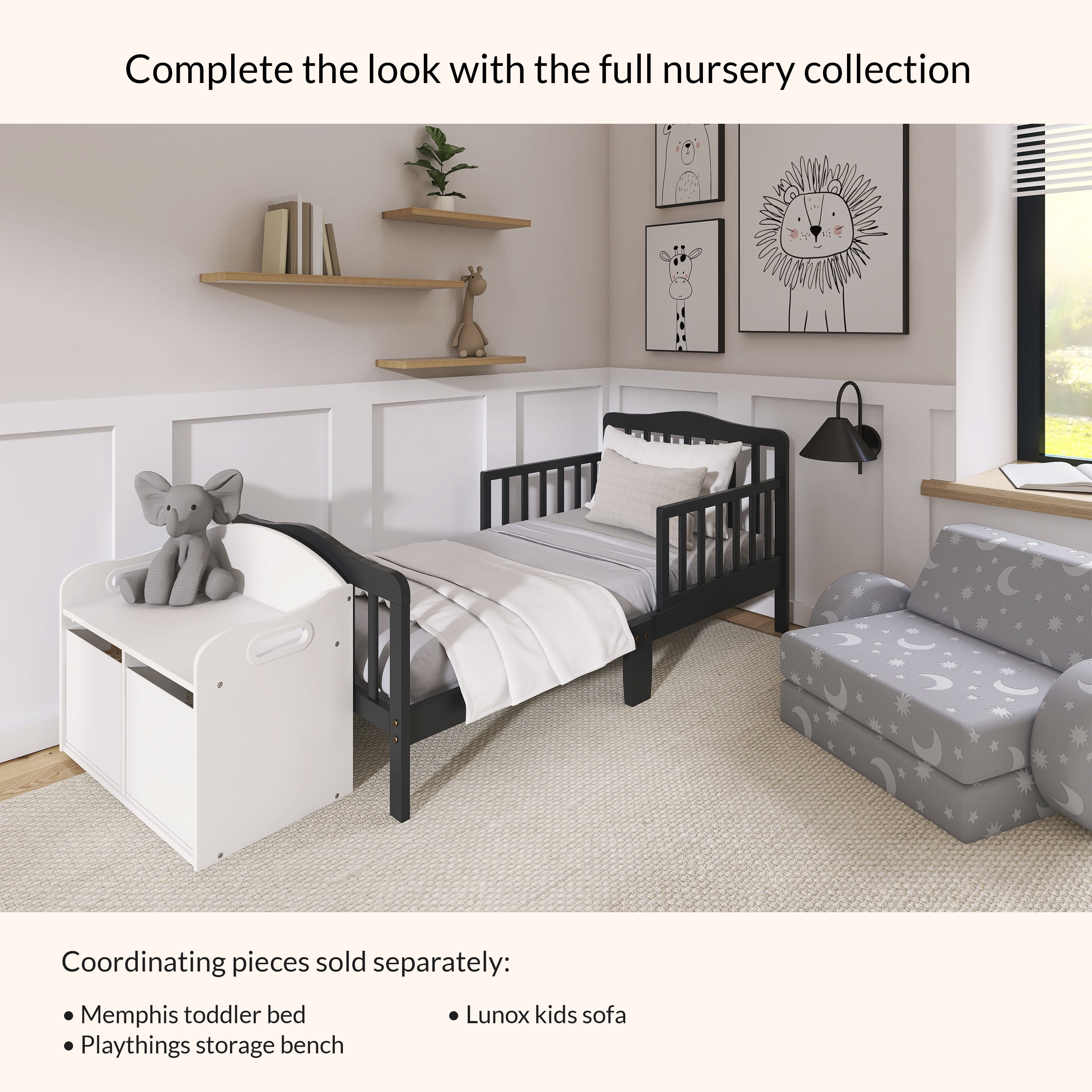 Dream On Me Classic Design Toddler Bed, Black: Two side safety rails Sits low to the floor Fits the standard Dream On Me Crib mattress (sold separately) All tools needed for easy assembly are included Model: 624-C Mattresses are sold separately.
