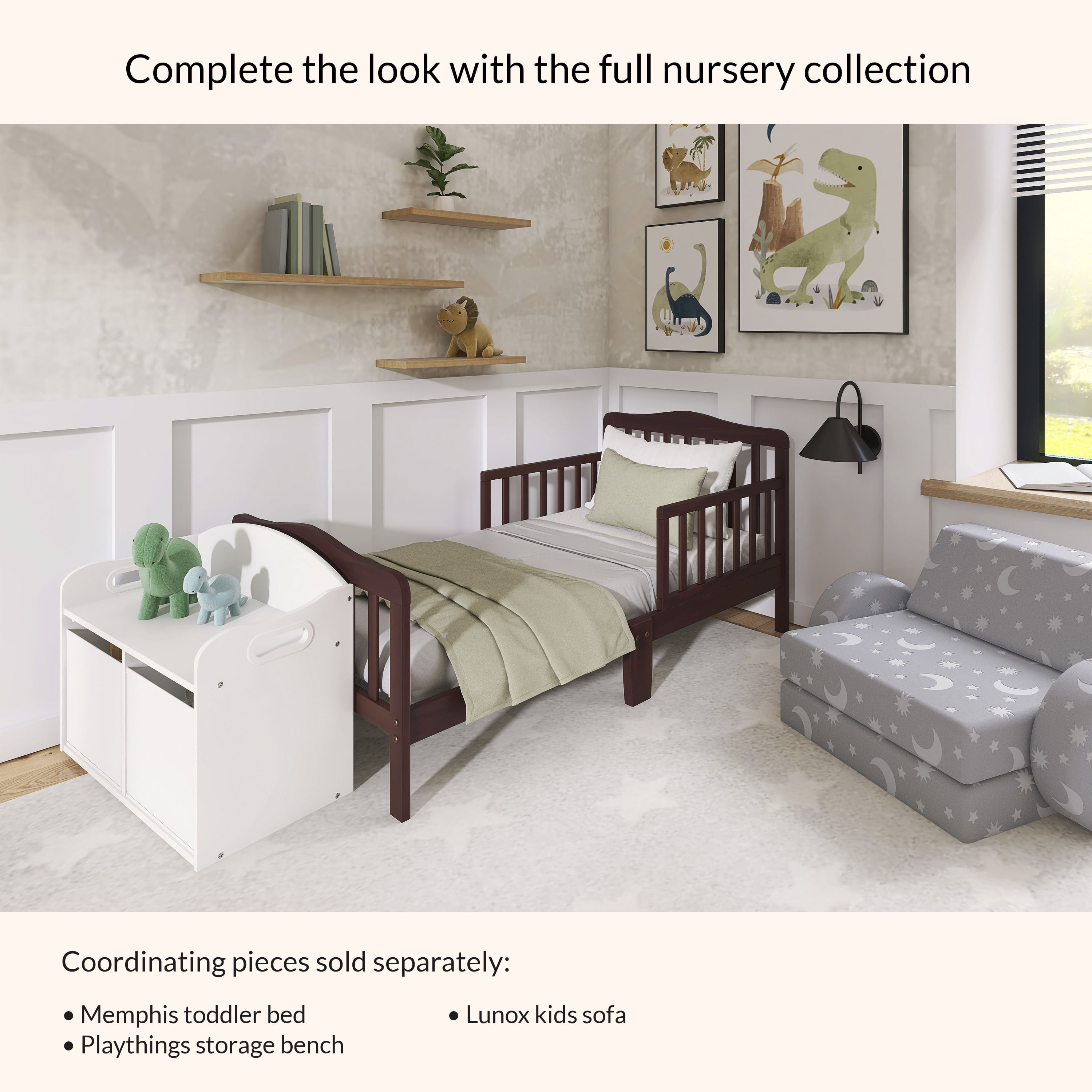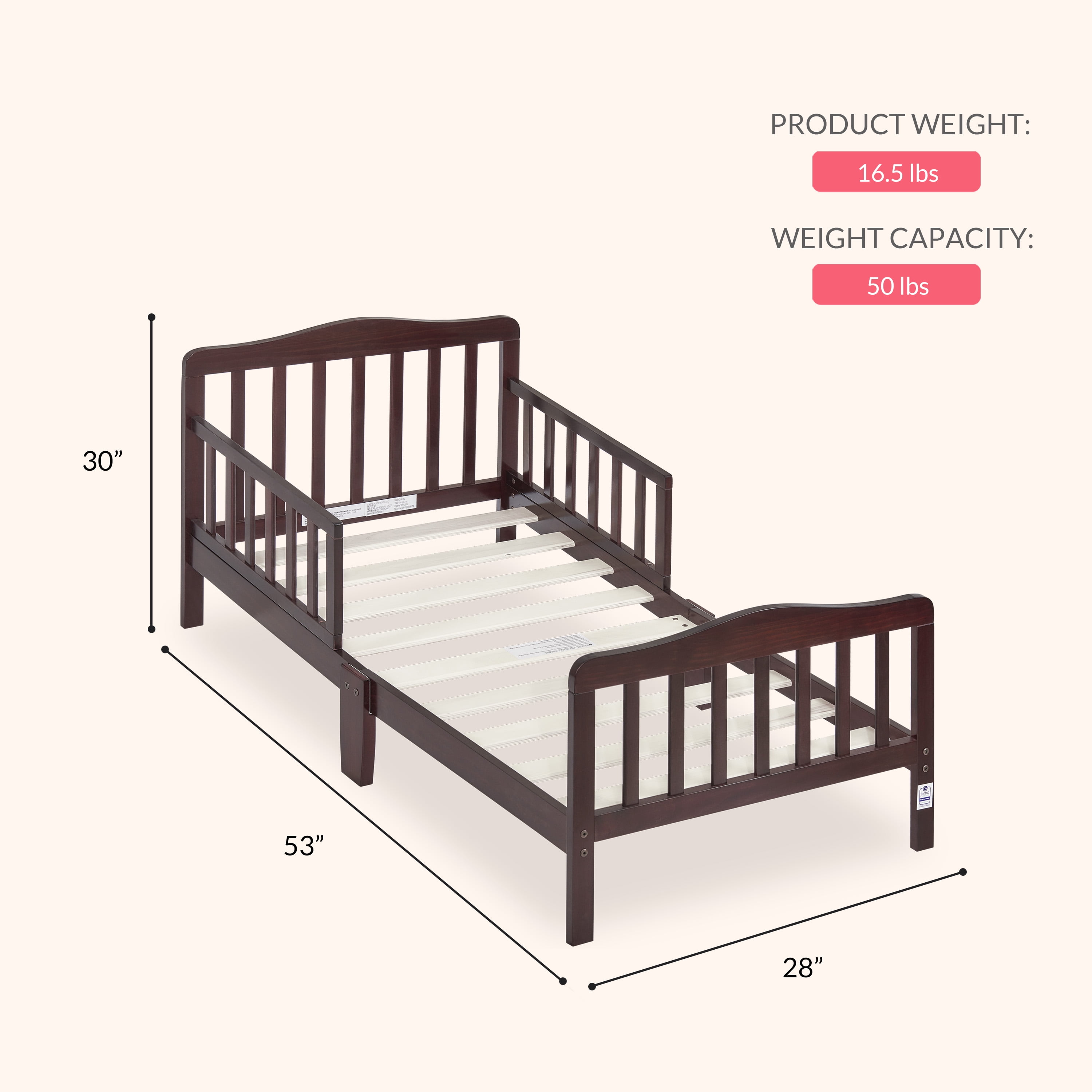 Dream On Me Classic Design Toddler Bed: Two side safety rails Sits low to the floor Fits the standard Dream On Me Crib mattress (sold separately) All tools needed for easy assembly are included Model: 624-C