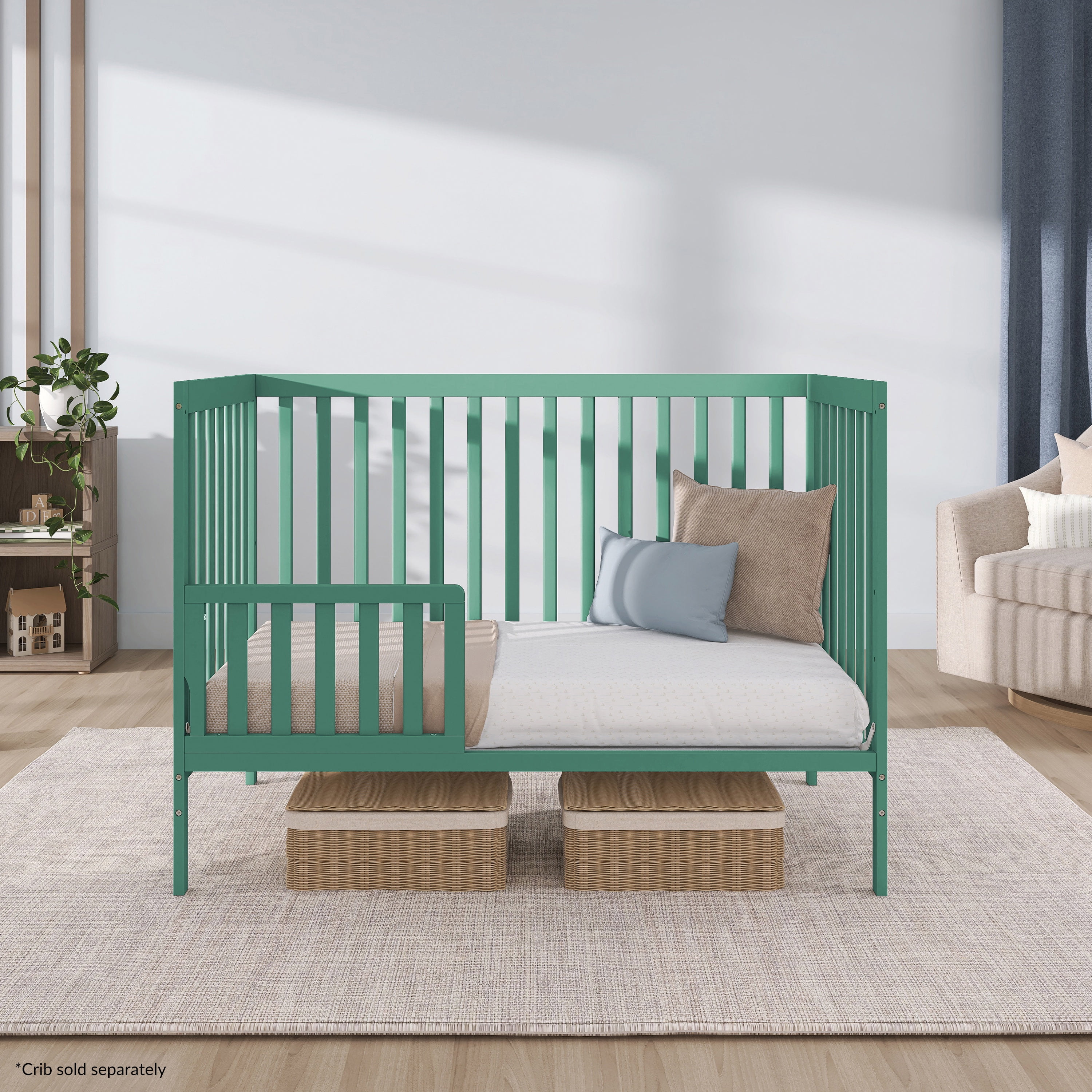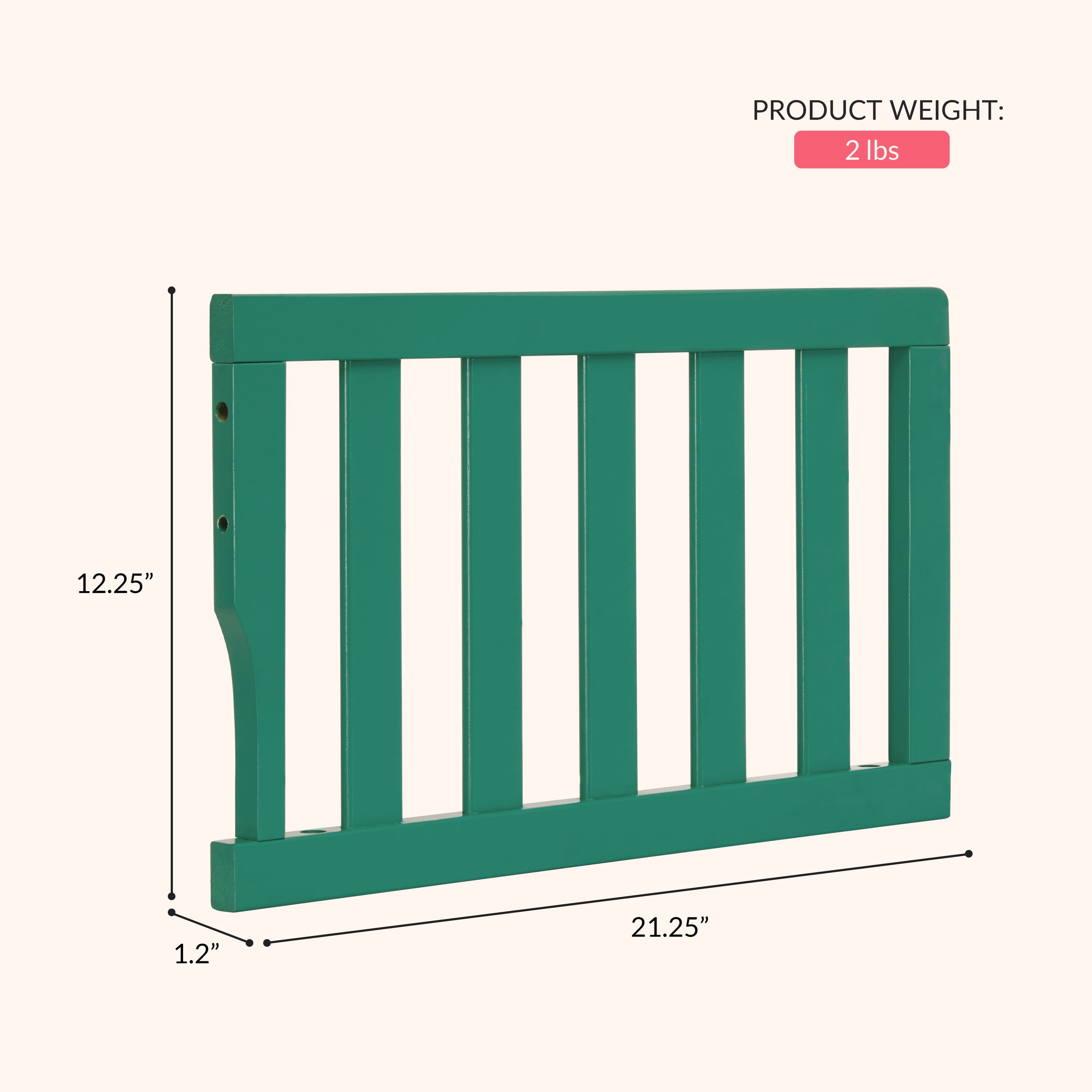Dream On Me Convertible Crib Toddler Guard Rail in Emerald, Converts Cribs to Toddler Beds