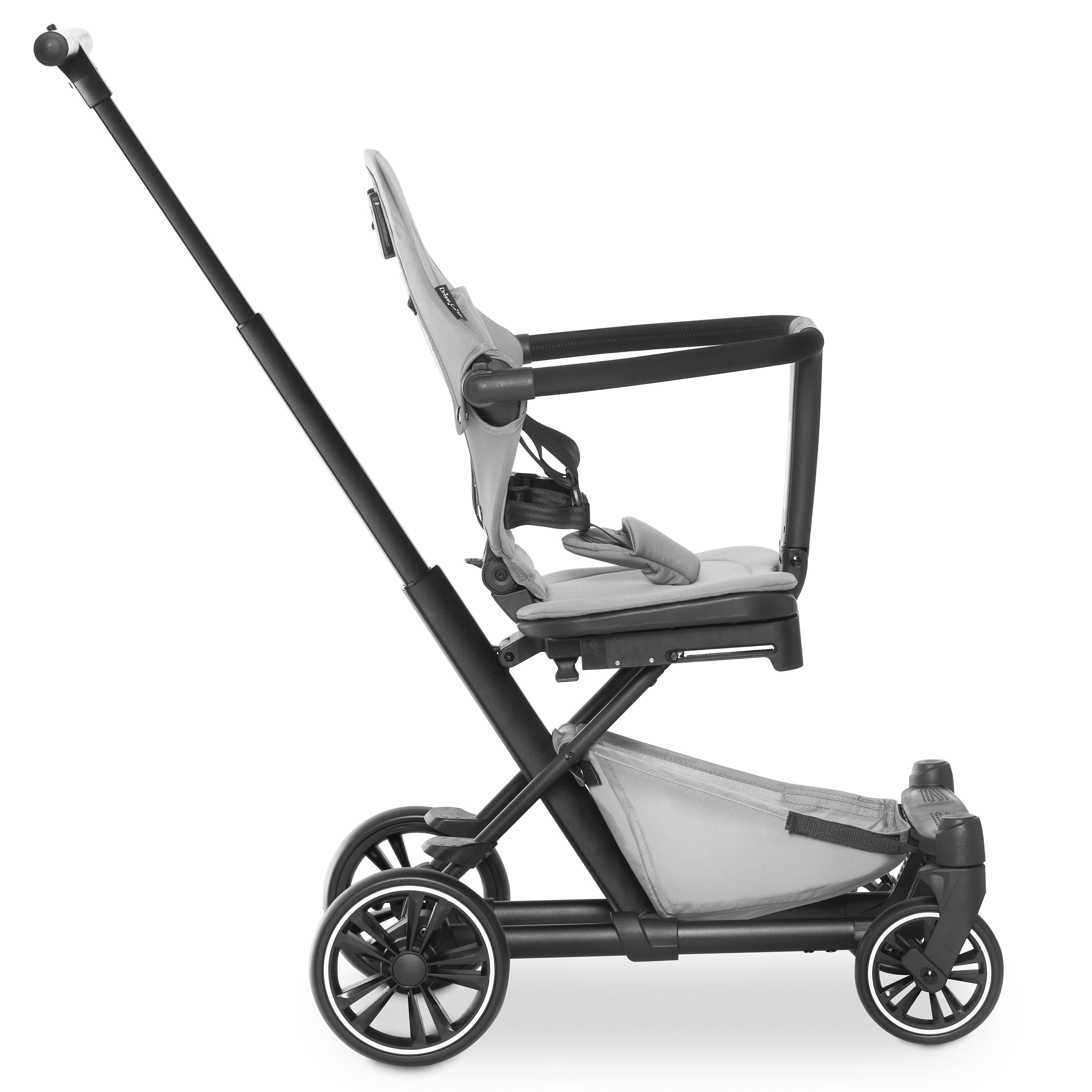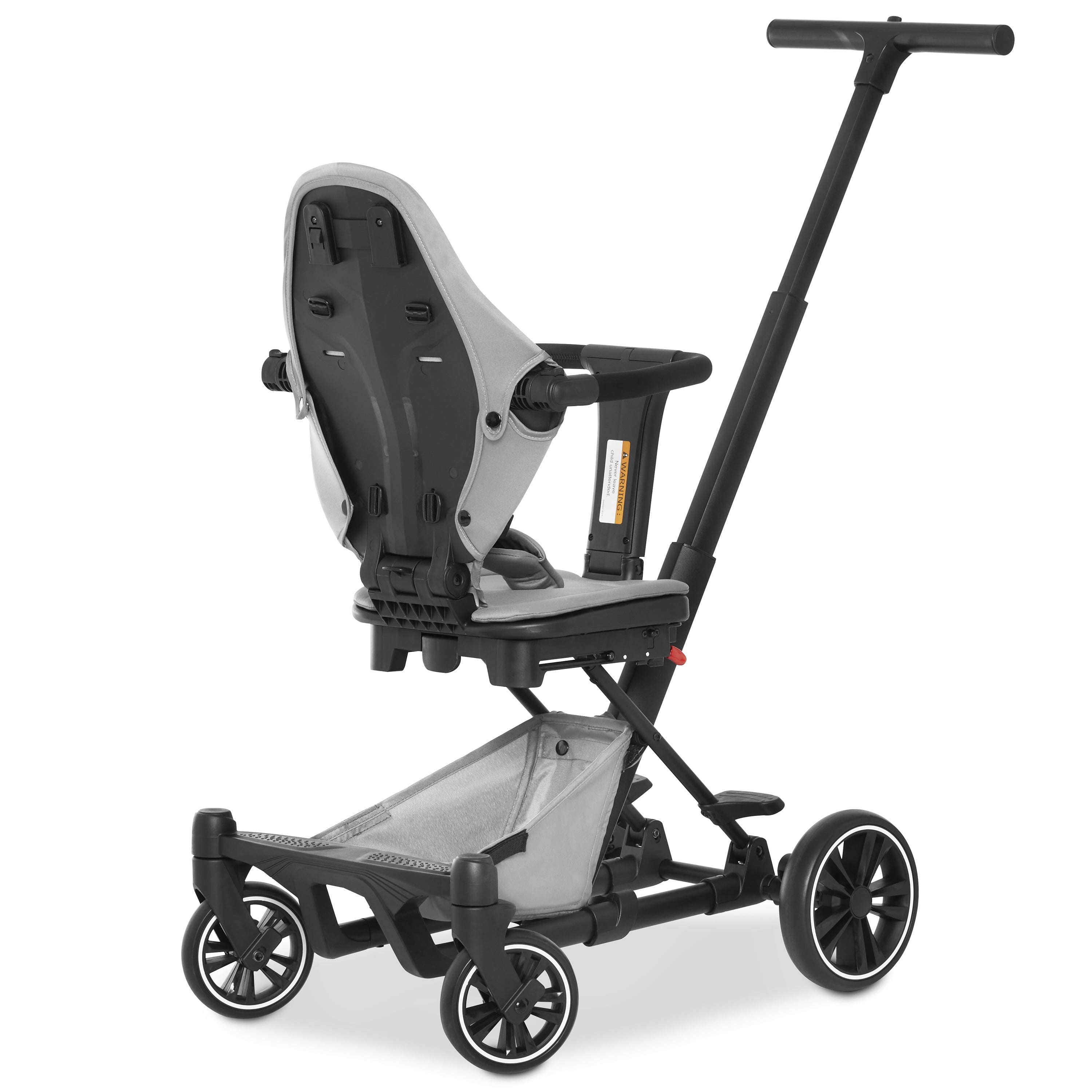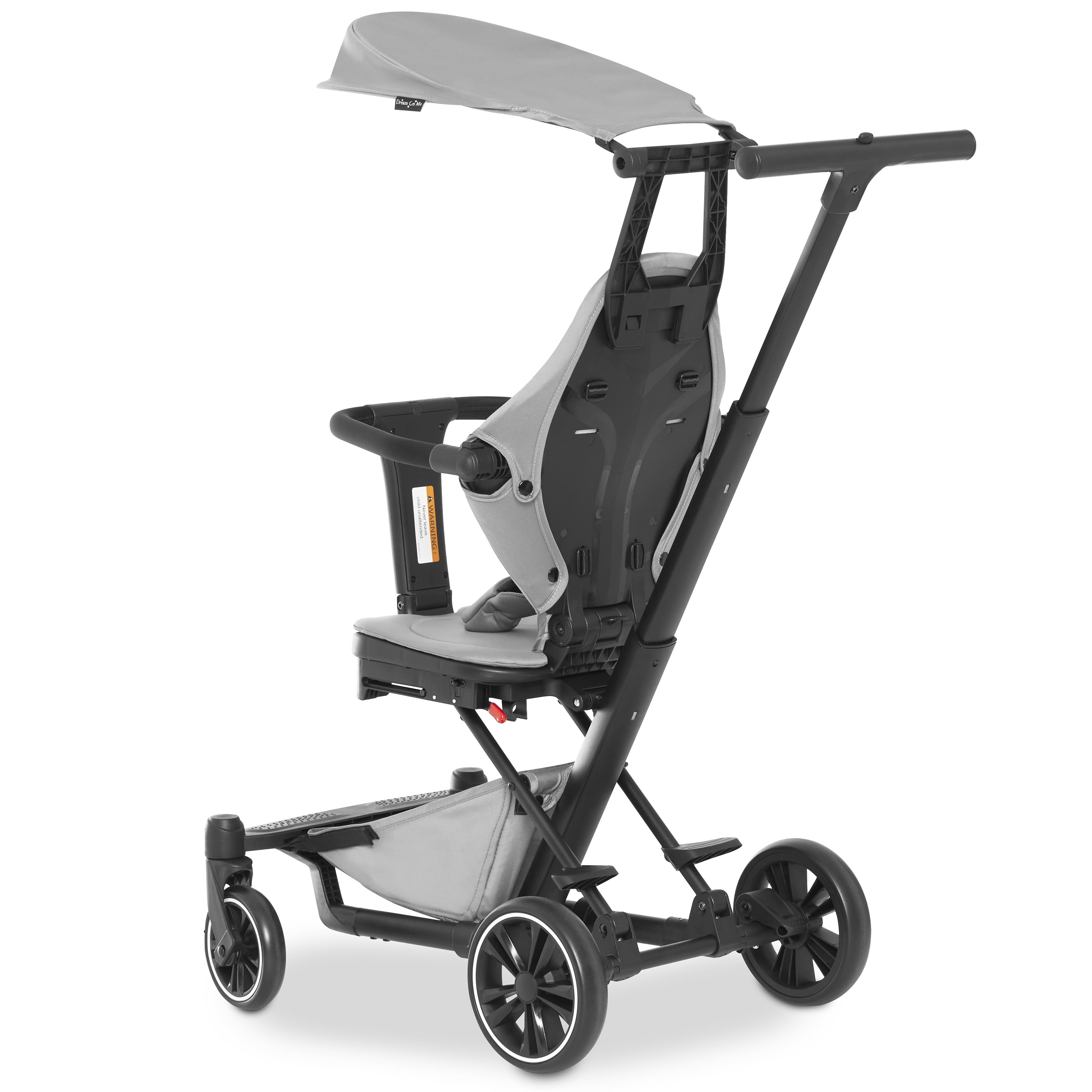 360-angle rotation seat makes it easy for little one to face you or the world. Lightweight and sturdy Aluminum frame. Waterproof Fabric seat cover. Folds inward like a book with just one hand. Soft Ride wheels for less pushing effort and comfortable for child. Can be used as a sit-down scooter. Included canopy to protect from harmful rays. Wipe clean with mild soap and water if needed. Folded dimensions: 28 x 16.5 x 9.5″.