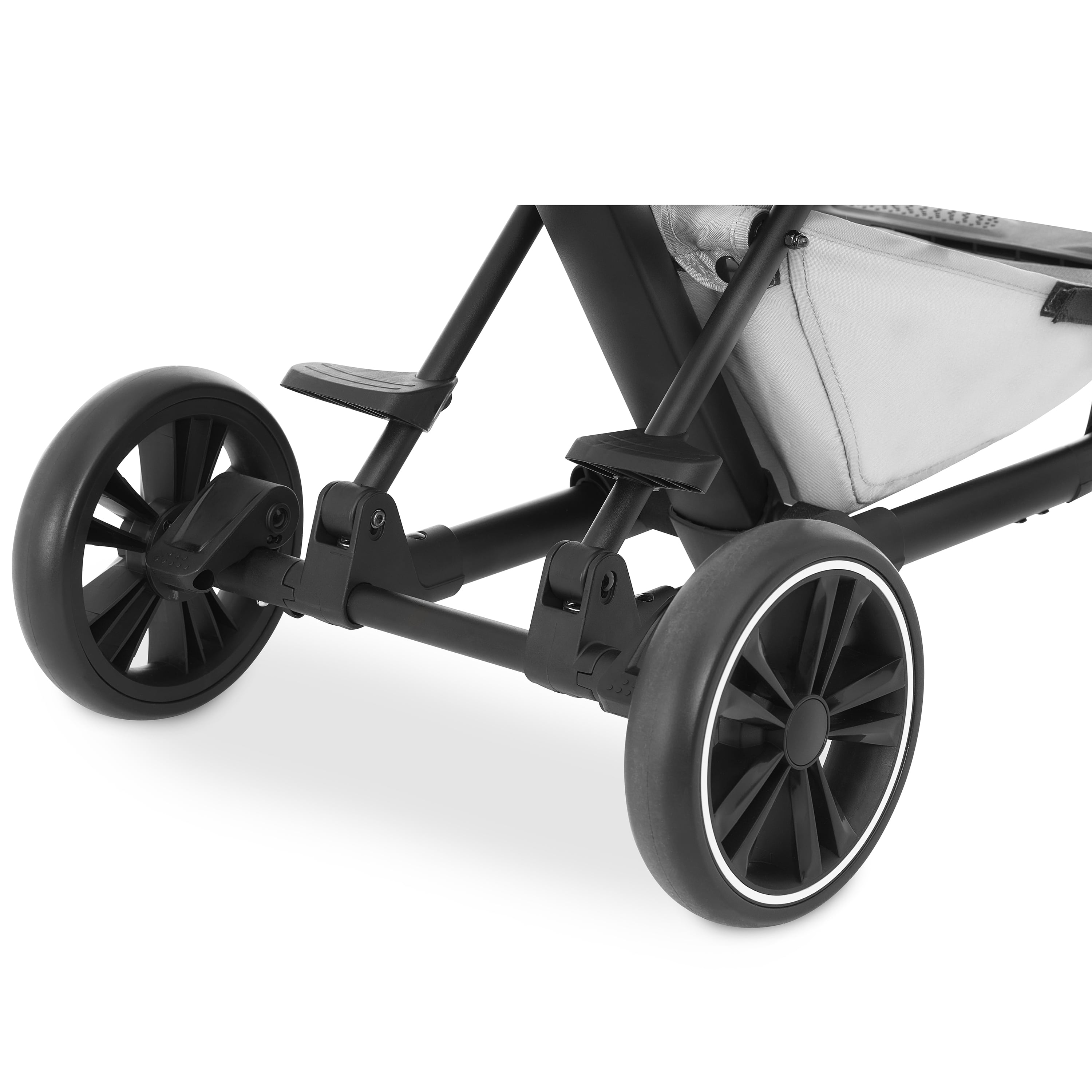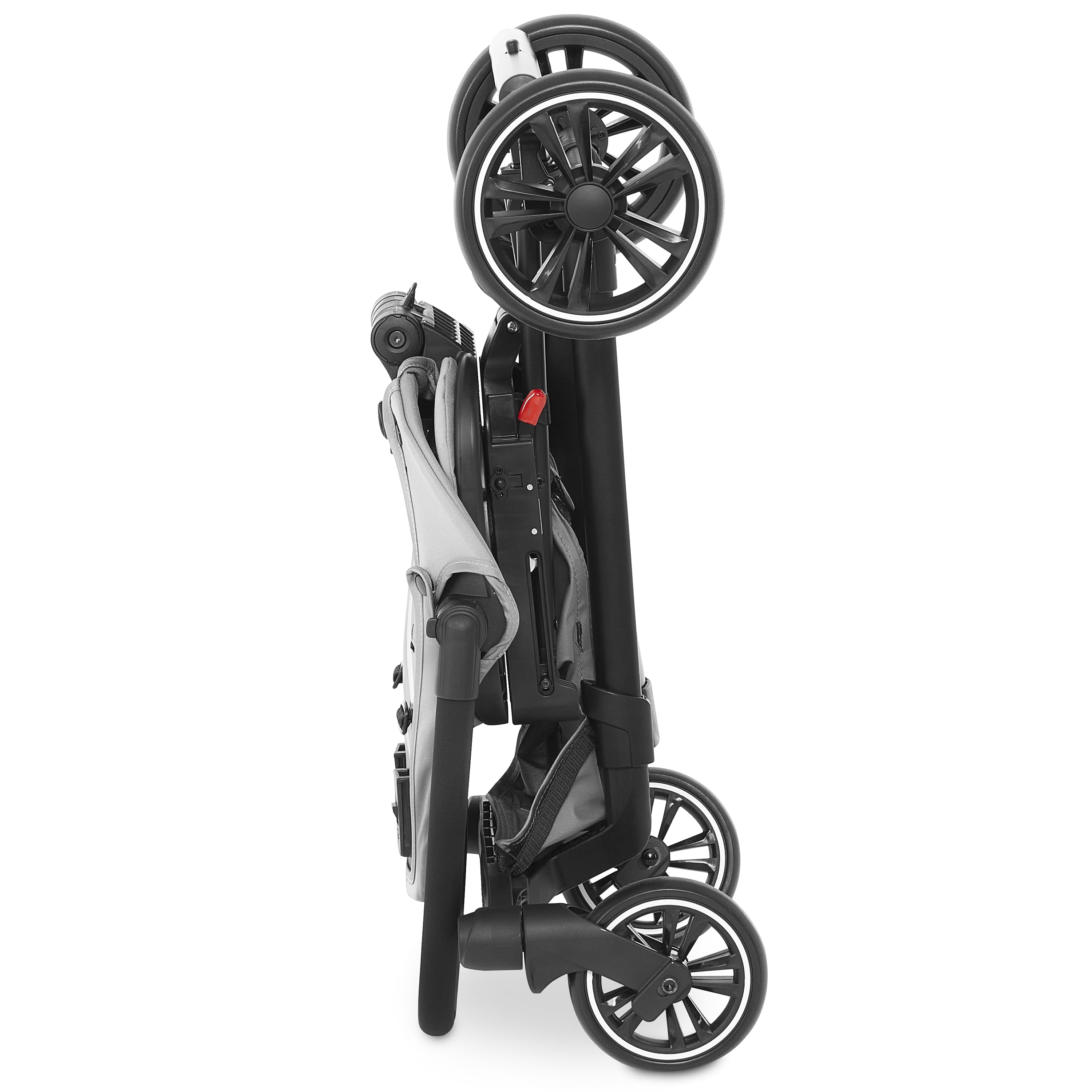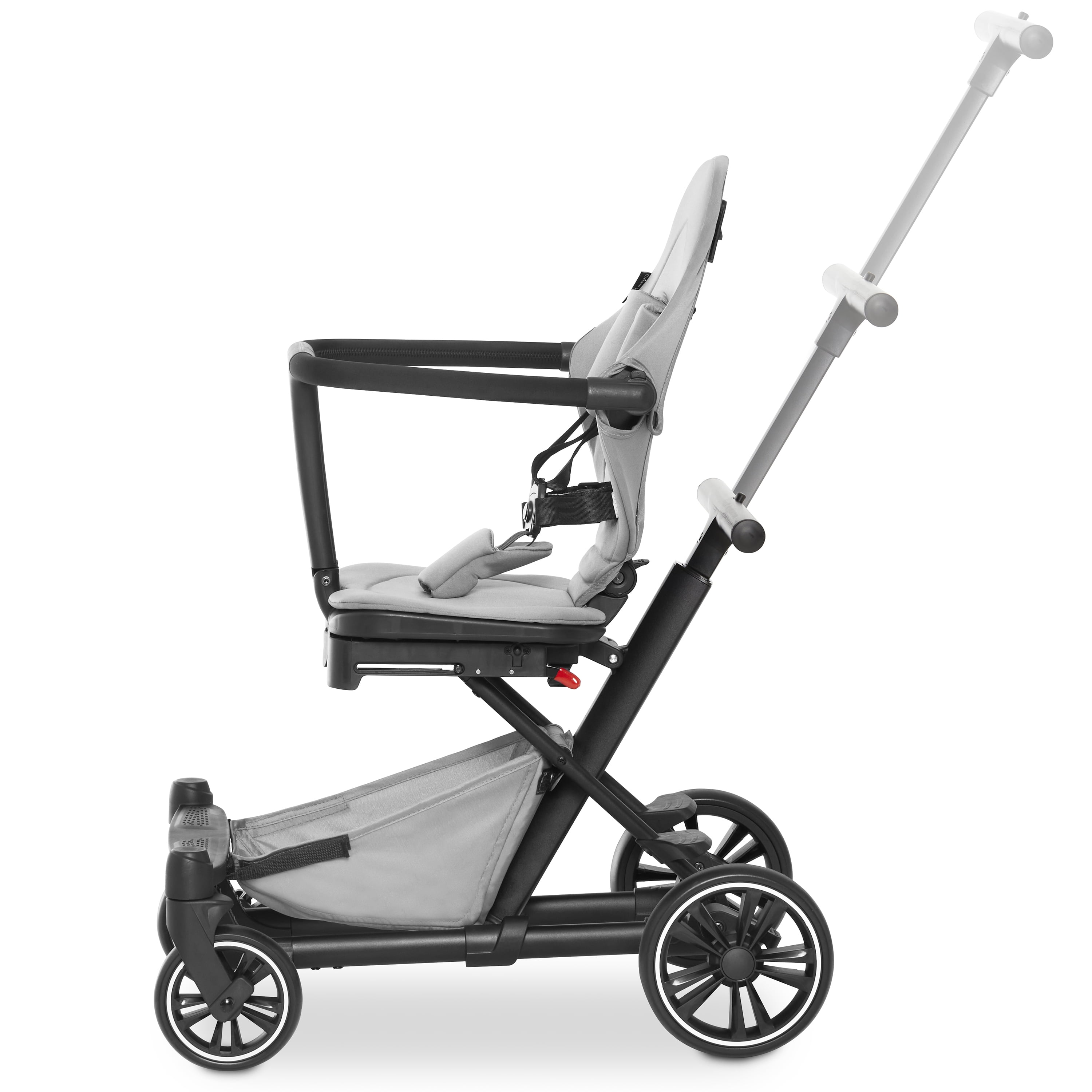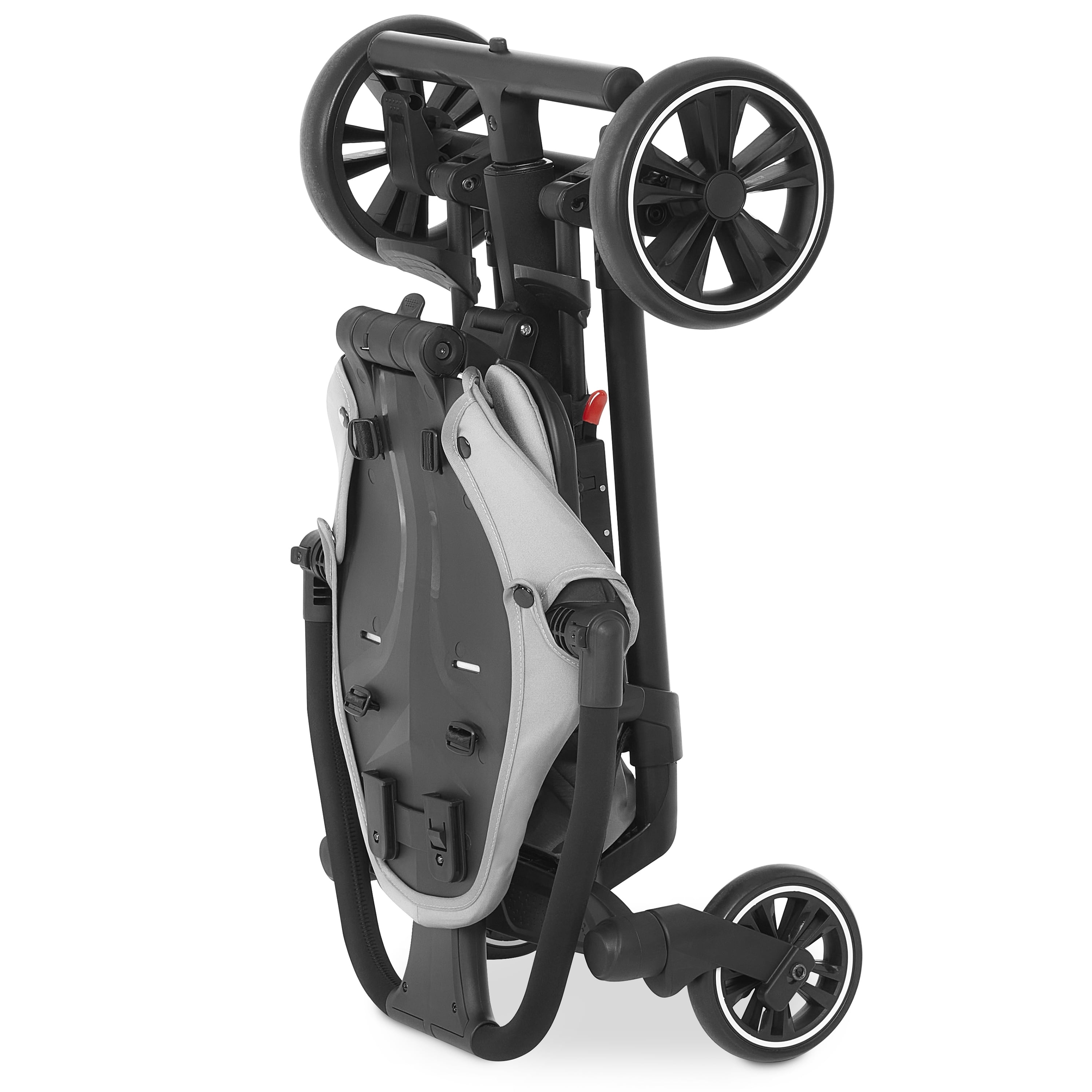 360-angle rotation seat makes it easy for little one to face you or the world. Lightweight and sturdy Aluminum frame. Waterproof Fabric seat cover. Folds inward like a book with just one hand. Soft Ride wheels for less pushing effort and comfortable for child. Can be used as a sit-down scooter. Included canopy to protect from harmful rays. Wipe clean with mild soap and water if needed. Folded dimensions: 28 x 16.5 x 9.5″.