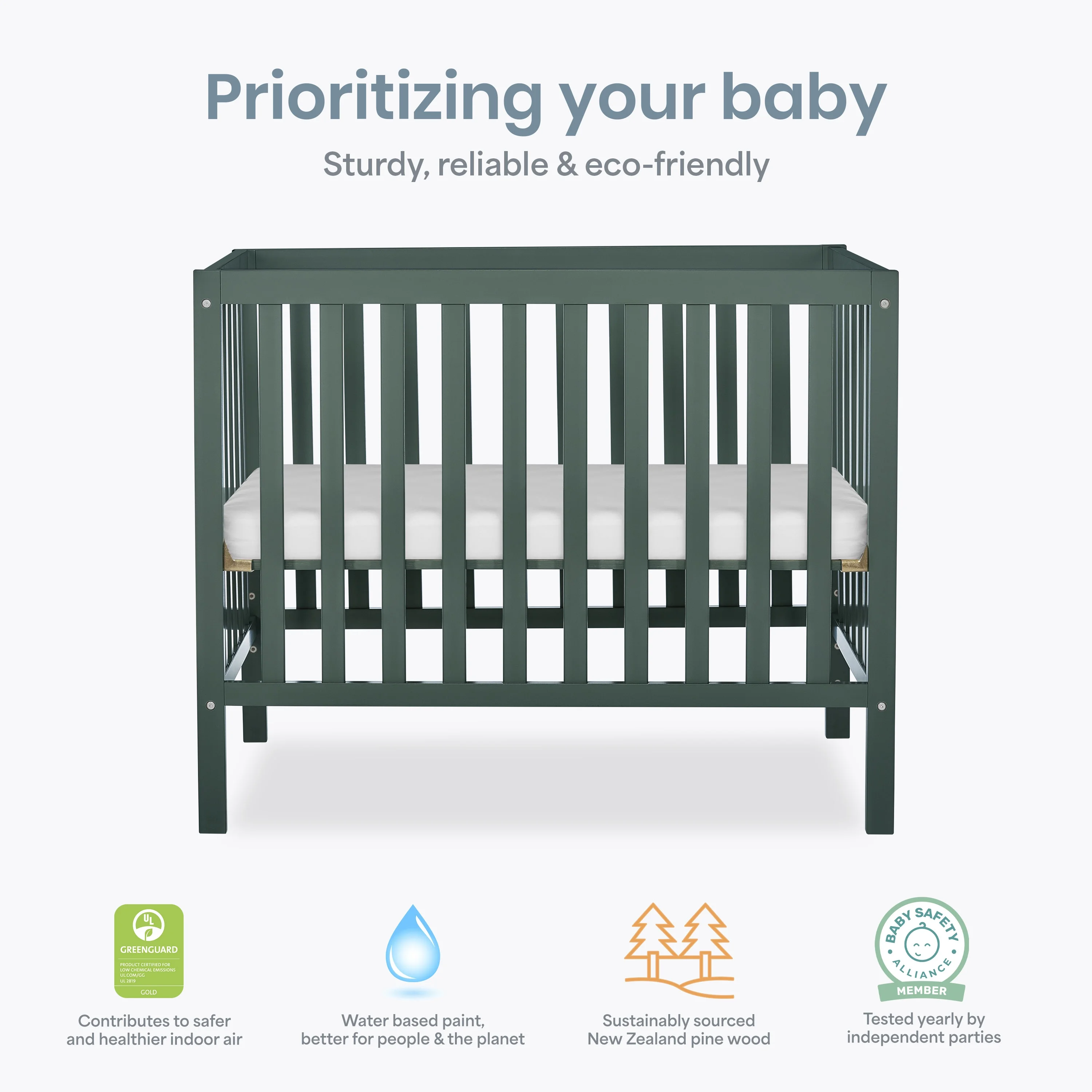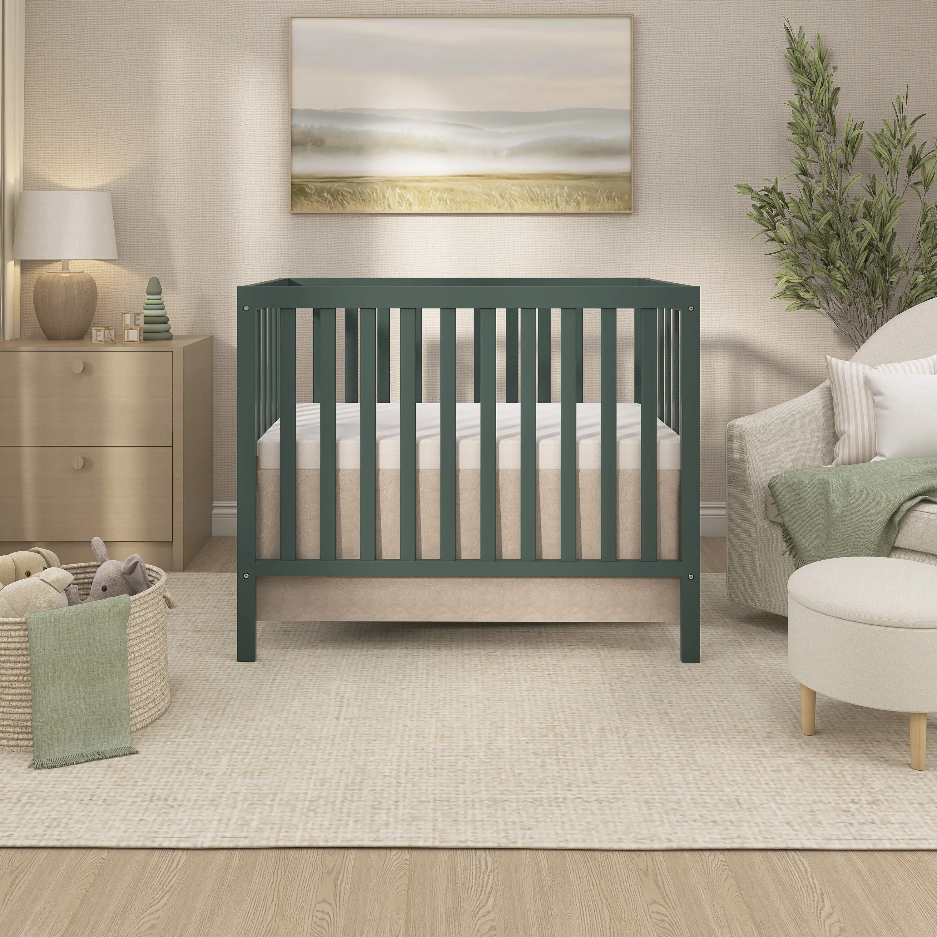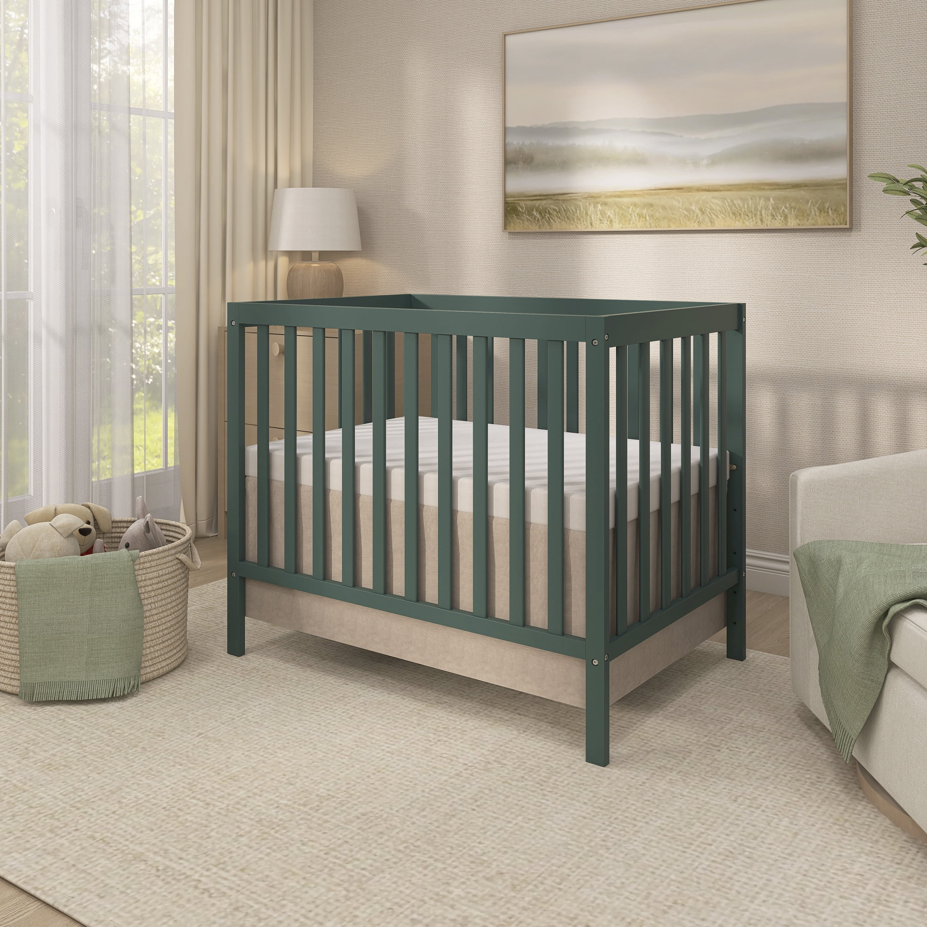 Dream On Me Edgewood 4-in-1 Convertible Mini Crib, Olive