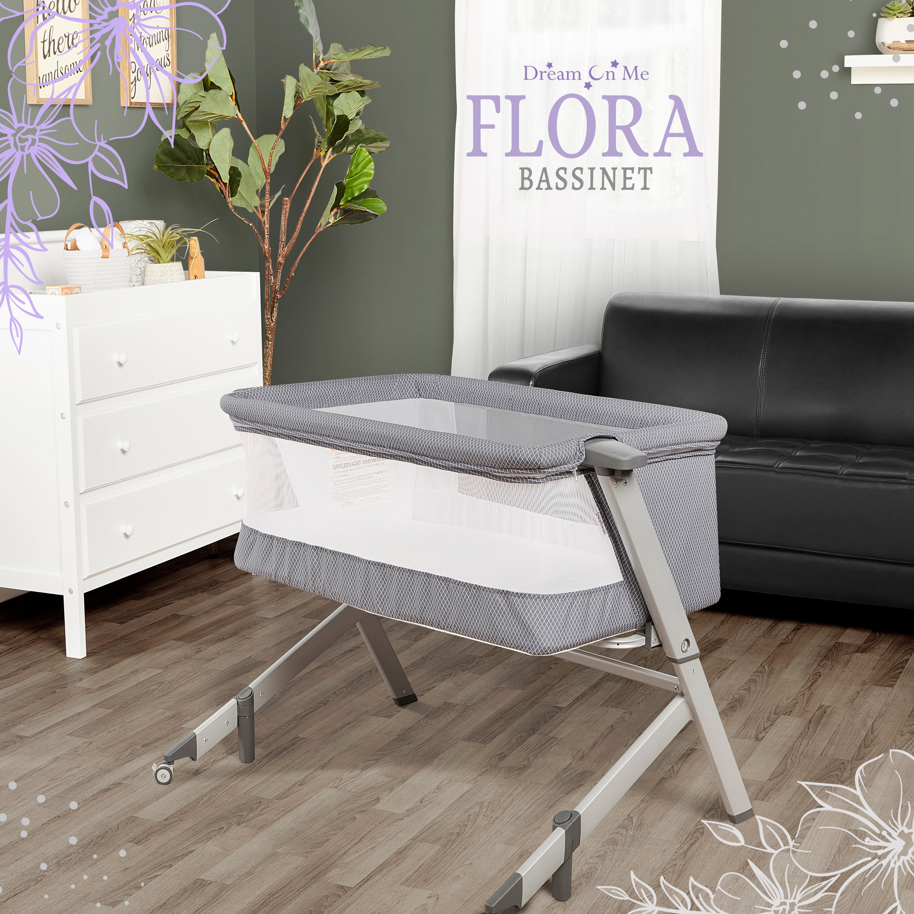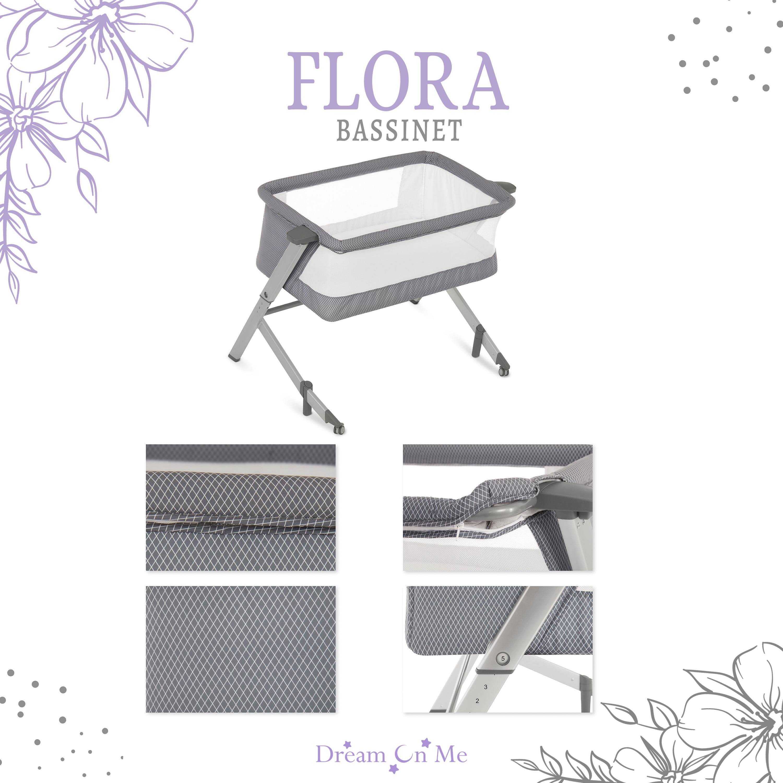 Dream On Me Flora Bassinet with Carry Bag , Compact & Modern, Storm Gray