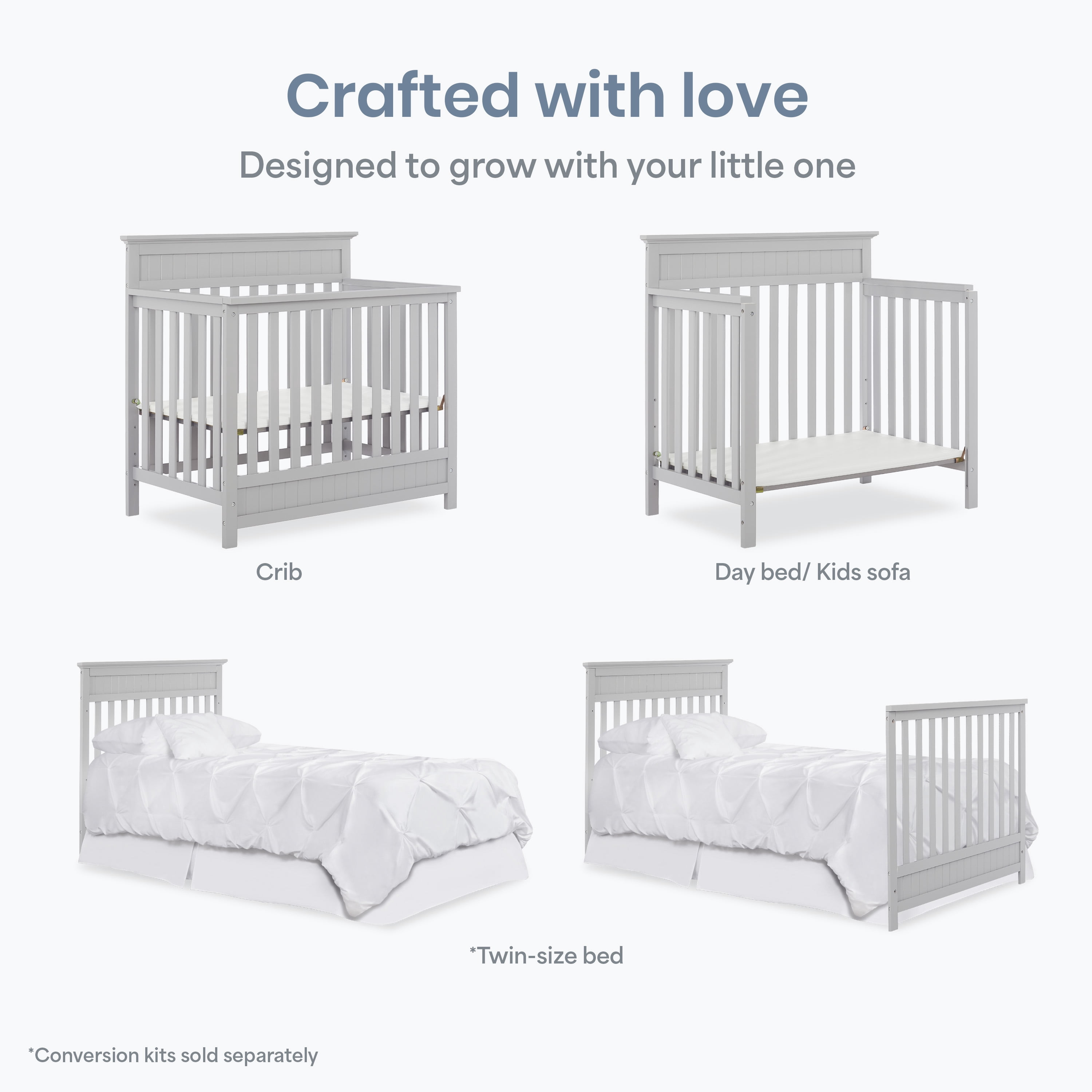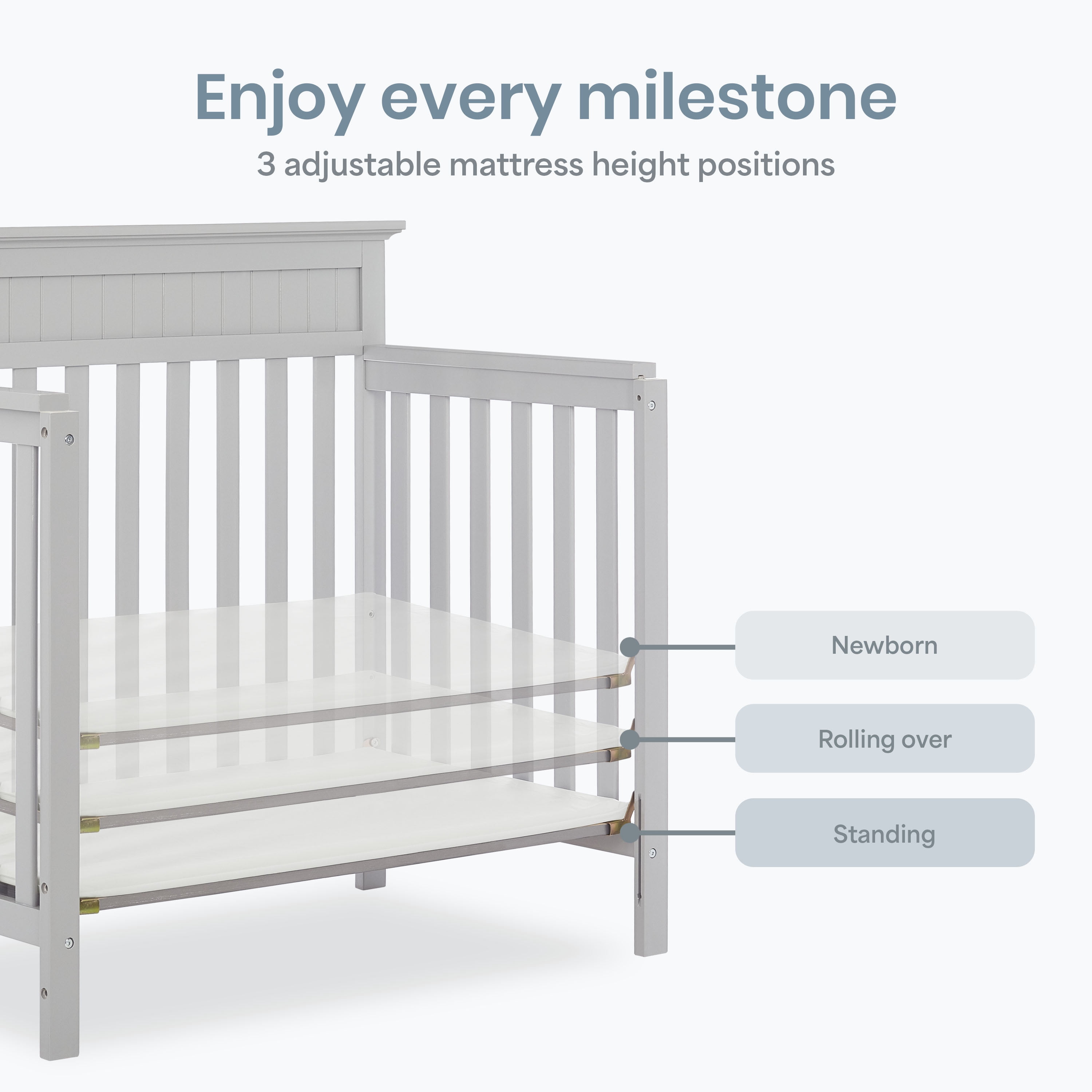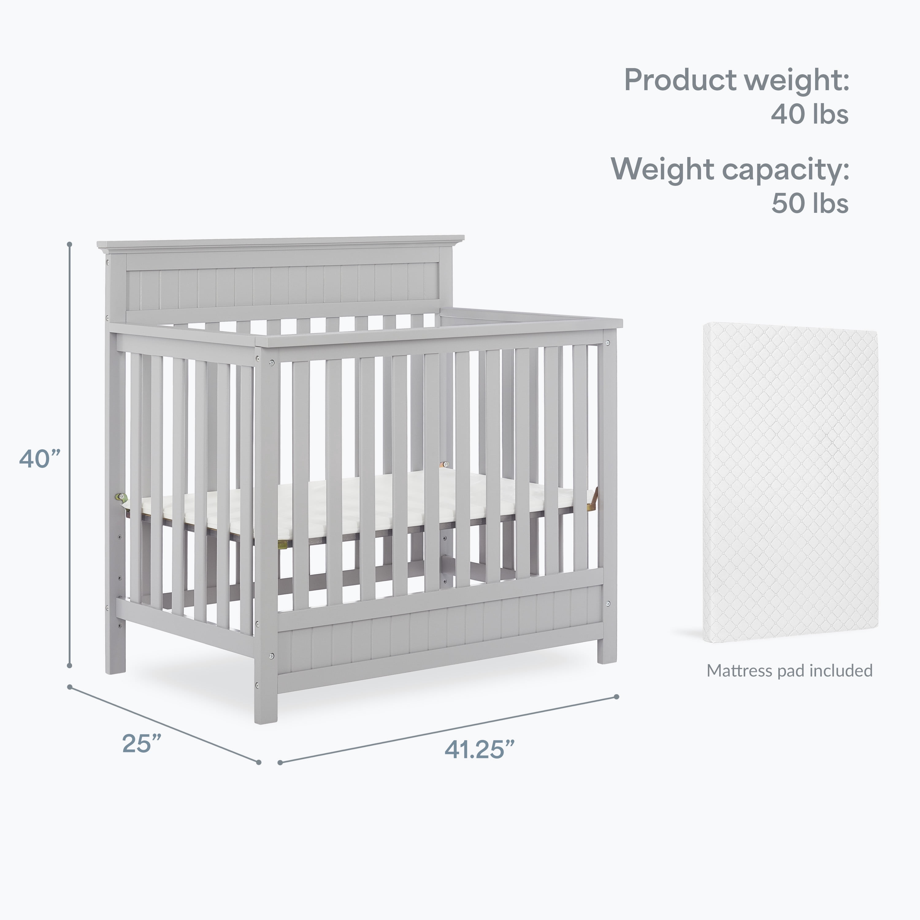 Dream On Me Harbor 4-in-1 Convertible Mini Crib, Pebble Gray: Tested for lead and other toxic elements to meet or exceed government and ASTM safety standards Meet the CPSC and ASTM standard All tools for assembly included Assembled Dimensions: 39Lx28Wx37H Product Weight: 40 lbs. 3-position mattress support system. Solid pine wood finish Weight Capacity: 50 lbs. Non-Full Size Mattress Sold Separately