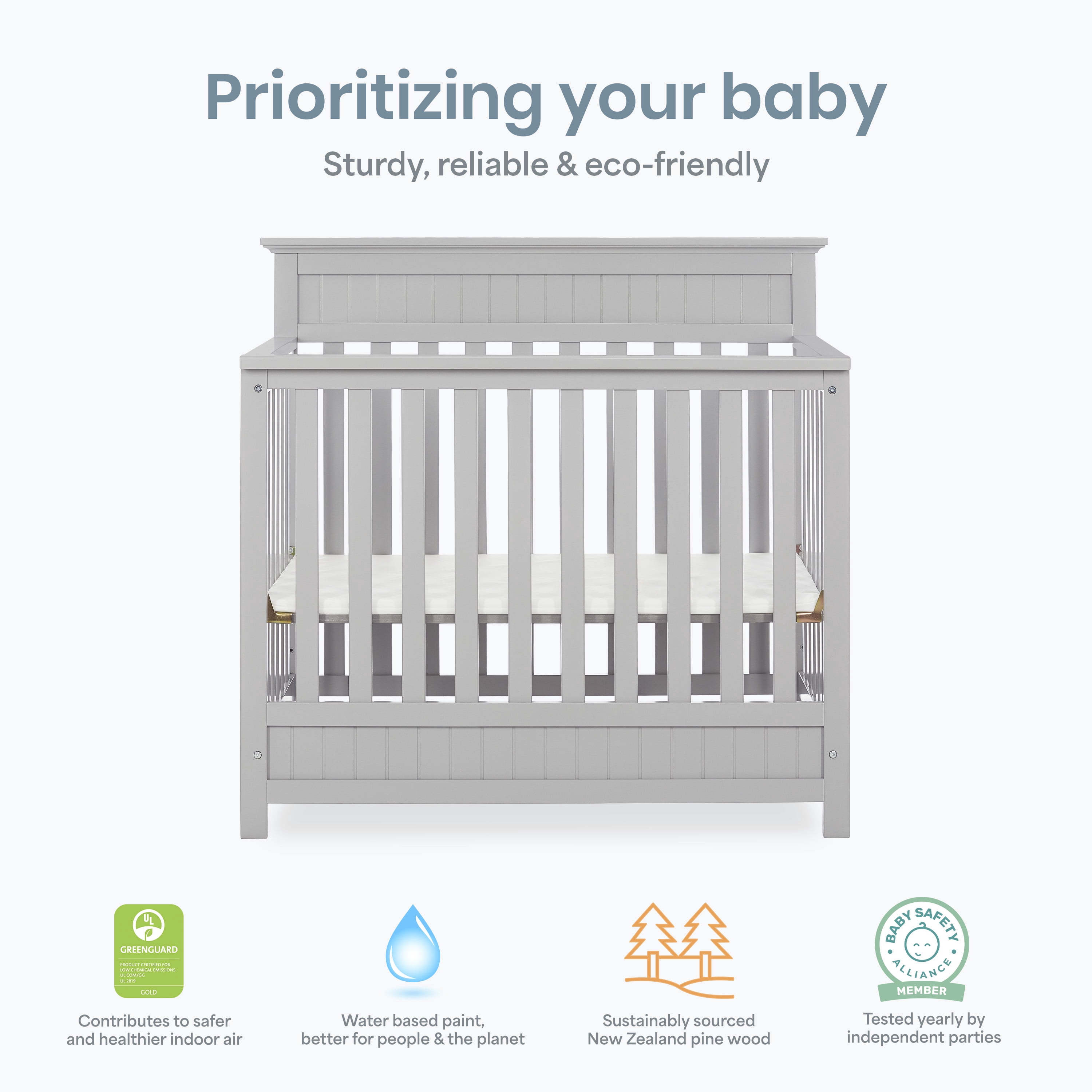 Dream On Me Harbor 4-in-1 Convertible Mini Crib in Pebble Grey, Greenguard Gold Certified