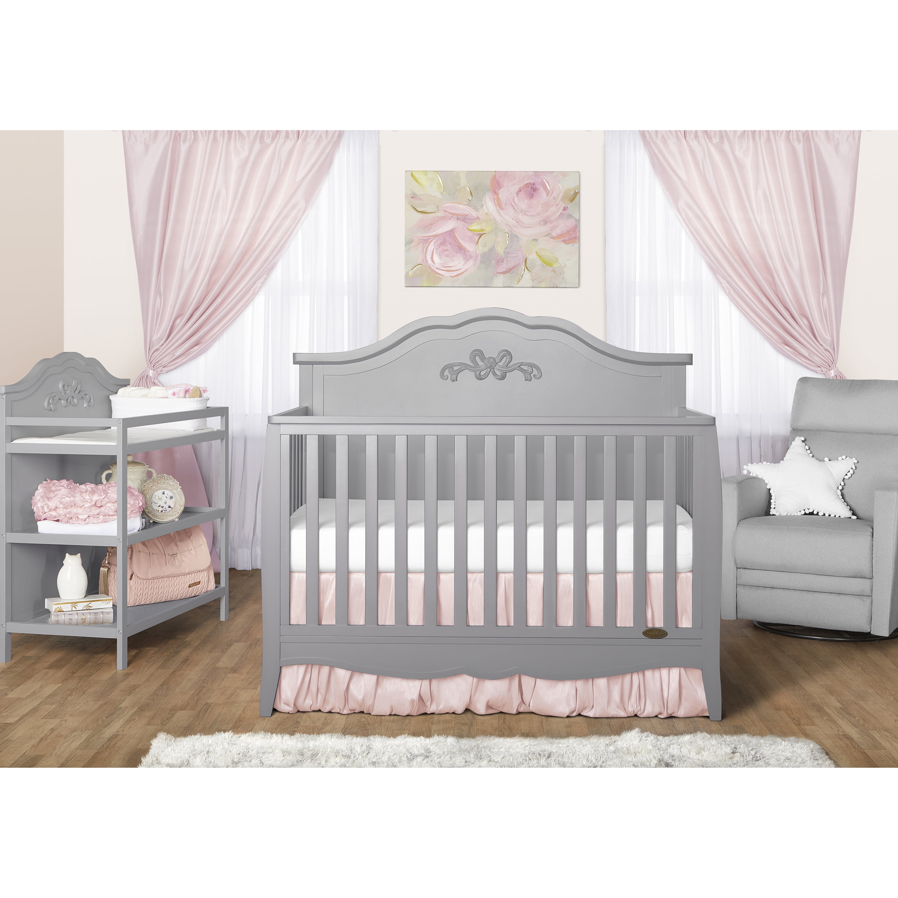 For magical dreams and sweet slumber comes to the ever-so-quaint and charming Dream On Me Jasmine 4-in-1 Convertible Crib. This precious crib grows with your little one as it easily transitions to a daybed, toddler bed, and full-size bed (conversion kit sold separately), making it a life-long investment. Made of solid New Zealand Pinewood, it comes with a metal mattress support for added stability and security. With an easy-to-clean finish and 3 mattress height settings as your baby grows, it’s designed for convenience. In addition, this convertible crib prioritizes safety as it is JPMA and Greenguard Gold certified, meeting/exceeding all ASTM & CPSC safety standards. What’s more, with the Jasmine Convertible Crib, the magic lies in the details. This beautiful crib boasts intricate carving on the headboard for that added touch of whimsy. Combined with 3 evergreen finishes – Blush Pink, White, and Platinum – it’s a must-have for any new nursery! The product specs are, Dimensions: 54” L x 31” H x 50.5” W”, Weight: 60 lbs.