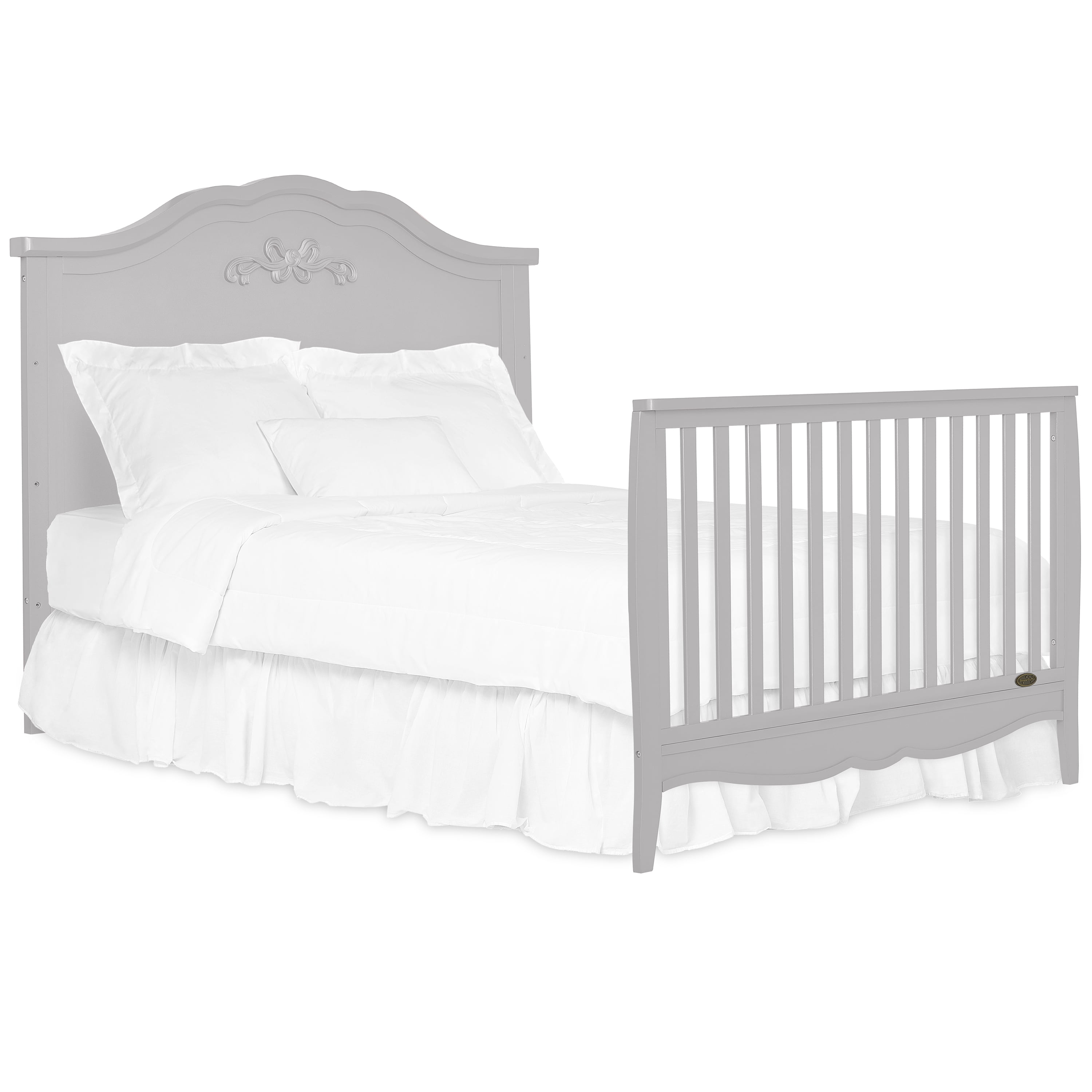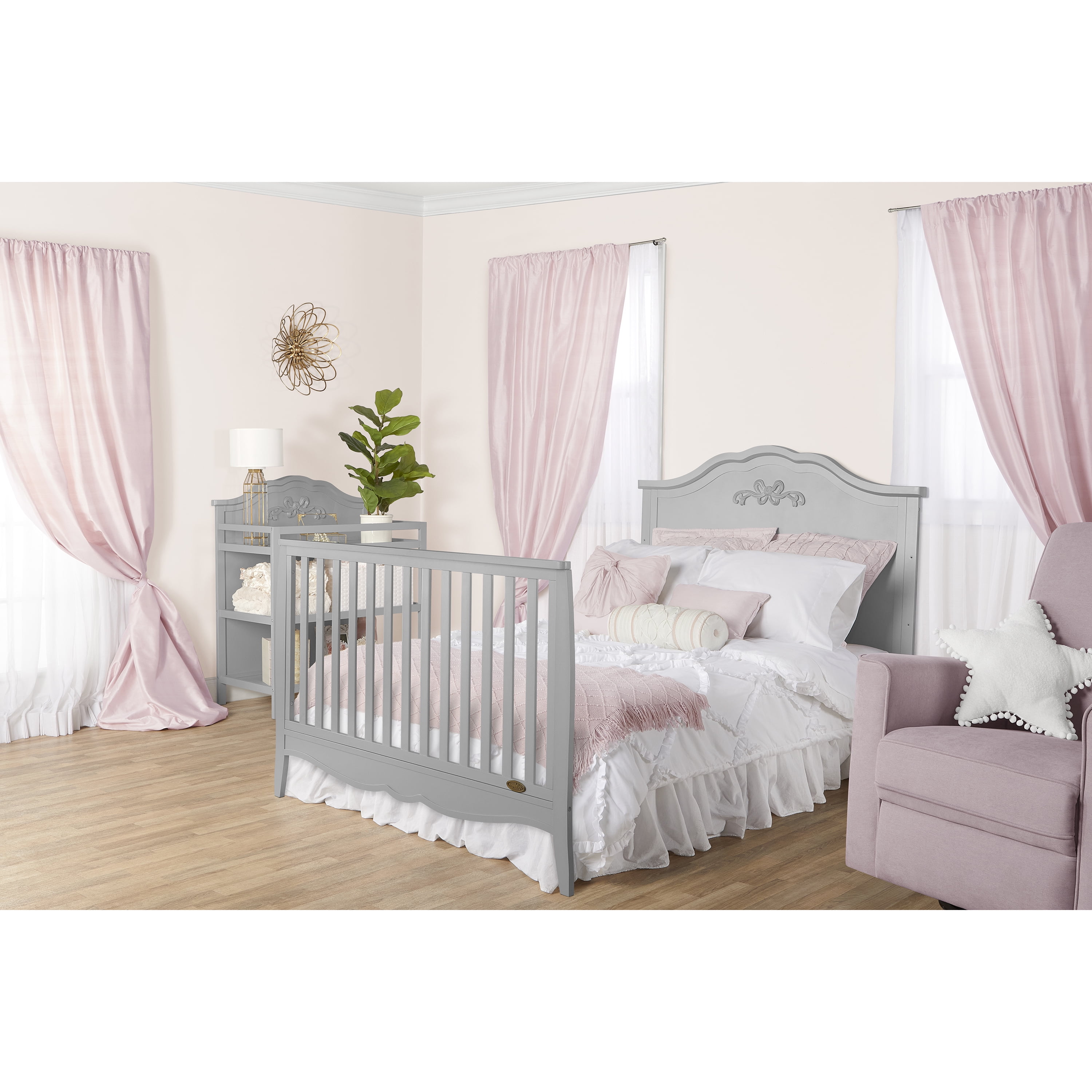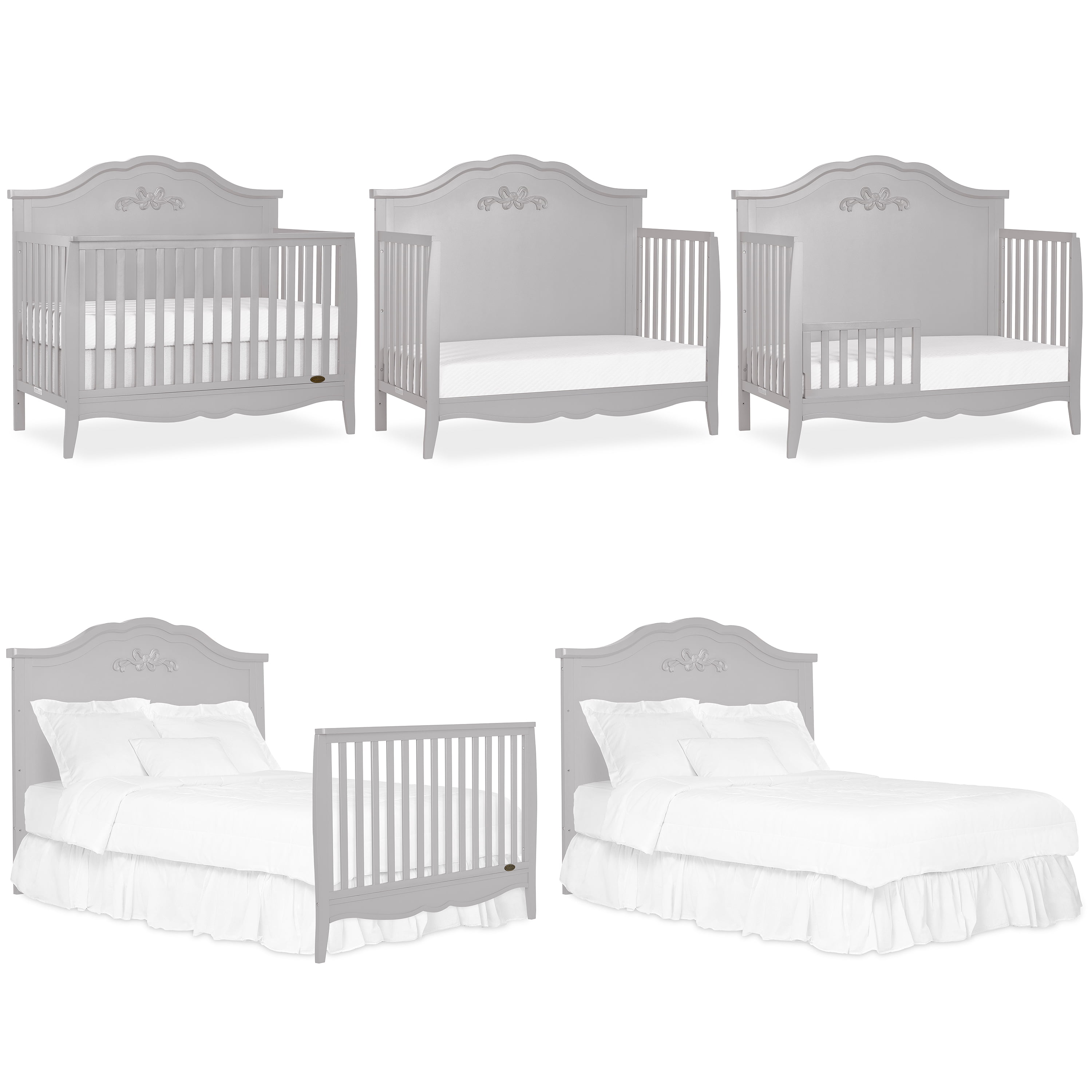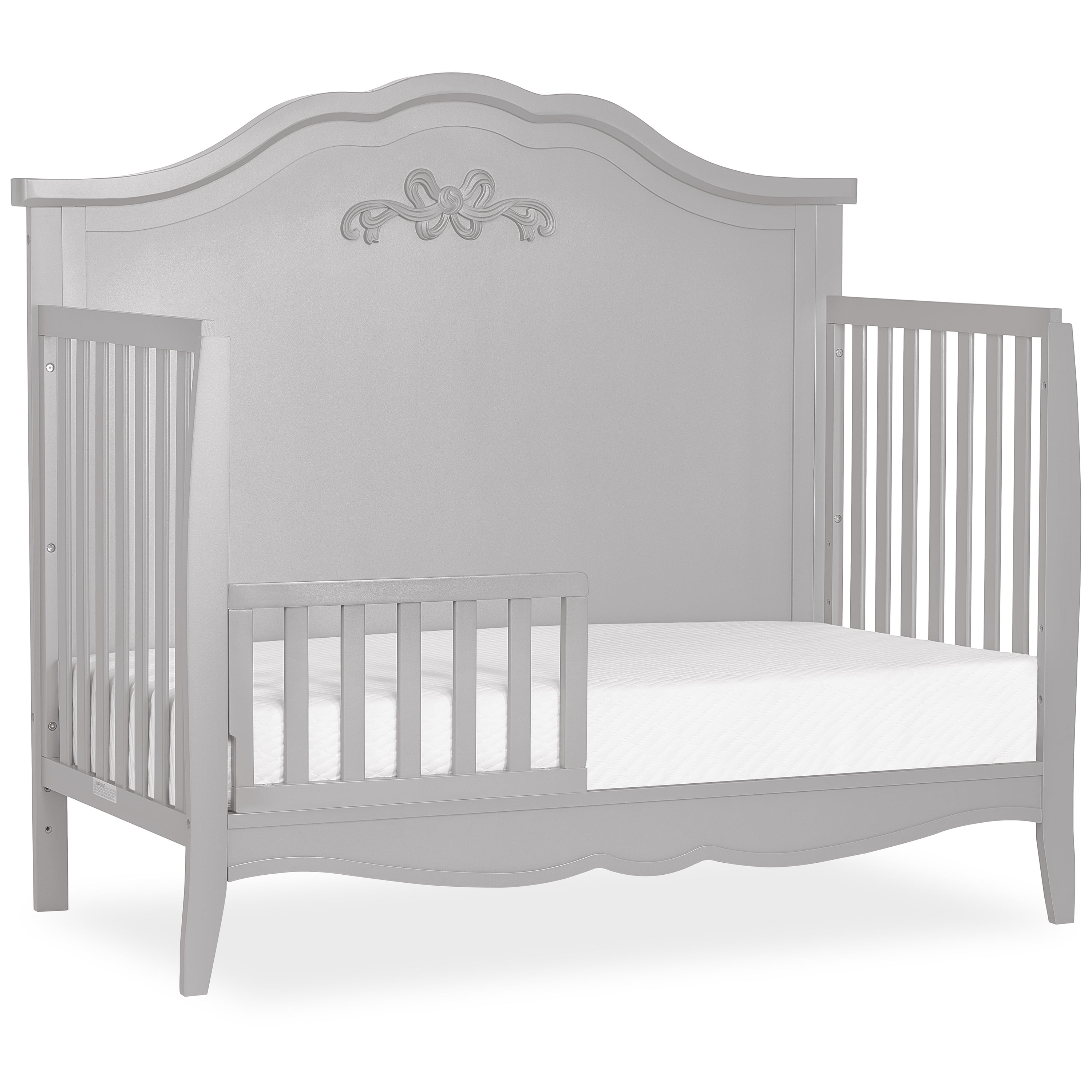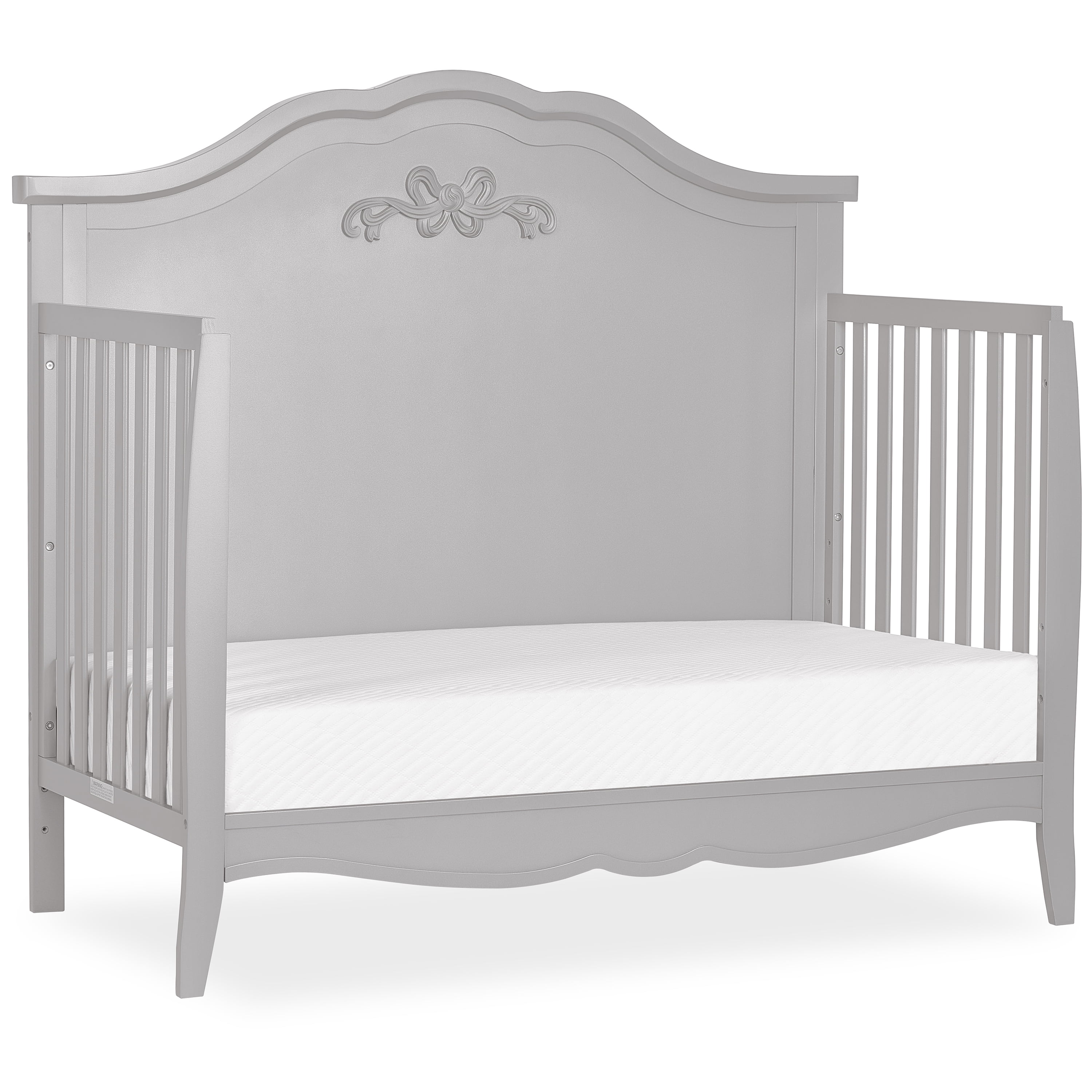 The Jasmine Convertible Crib easily transitions to a daybed, toddler bed, and full-size bed The crib is made of solid New Zealand Pinewood with a metal mattress support for added stability It also comes with an easy-to-clean finish and 3 mattress height settings. The Jasmine Crib is JPMA, and Greenguard Gold certified, meeting/exceeding all ASTM & CPSC safety standards. With intricate, carved headboard detailing, this crib comes in 3 evergreen finishes Dimensions: 54” L x 31” H x 50.5” W”, Weight: 60 lbs